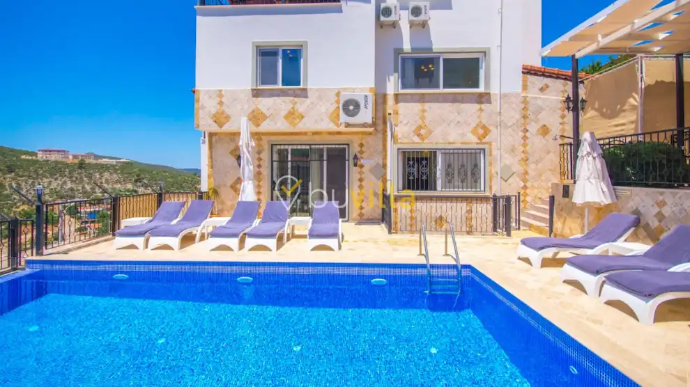 Deniz Manzarali Kiralik Villa Kiralik villa Galeri , Kalkan Akbel mevkiinde 9 yatak odali 18 kisi kapasitesindedir. Kiralik villamiz genis aile ve muhafazakâr ailelerinde tercihleri arasindadir. Deniz manzarasina sahip villamiz da Özel yüzme havuzu bulunup kiralik villa da havuz basinda barbekü yapabilir ve ihtiyaç duyabileceginiz tüm ekipmanlar bulunmaktadir. Kiralik Villa Galeri siz degerli misafirlerini agirlamayi bekliyor.