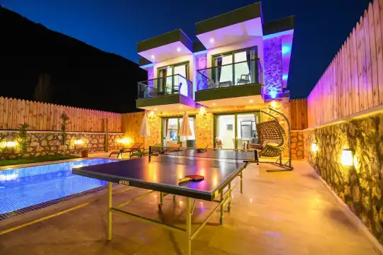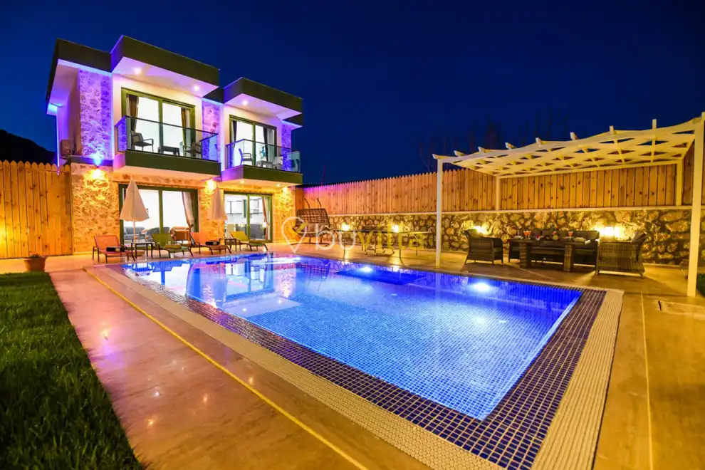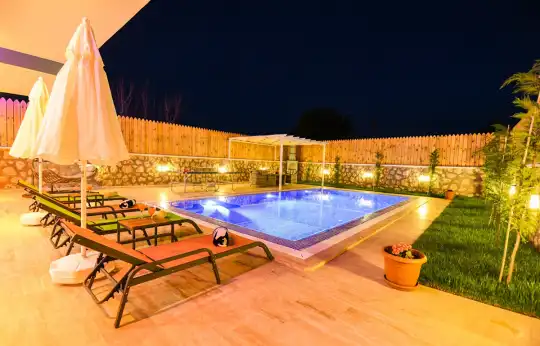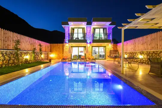 Muhafazakar Villa Kiralik Villa Gamze , Kalkan Bezirgan bölgesinde yer almaktadir. 2 Yatak odali 4 kisiye kadar konaklama imkani sunan villamiz muhafazakar villa seçenekleri arasinda yer almaktadir. Ana yatak odasin jakuzi yer alan villamizin içerisinde sauna da bulunmaktadir. Modern Amerikan mutfaginda ihtiyaç duyabileceginiz tüm ekipmanlar yer almakta olup konfrolu mobilyalarla dizayn edilmis mutfagi hizmetinizdedir.