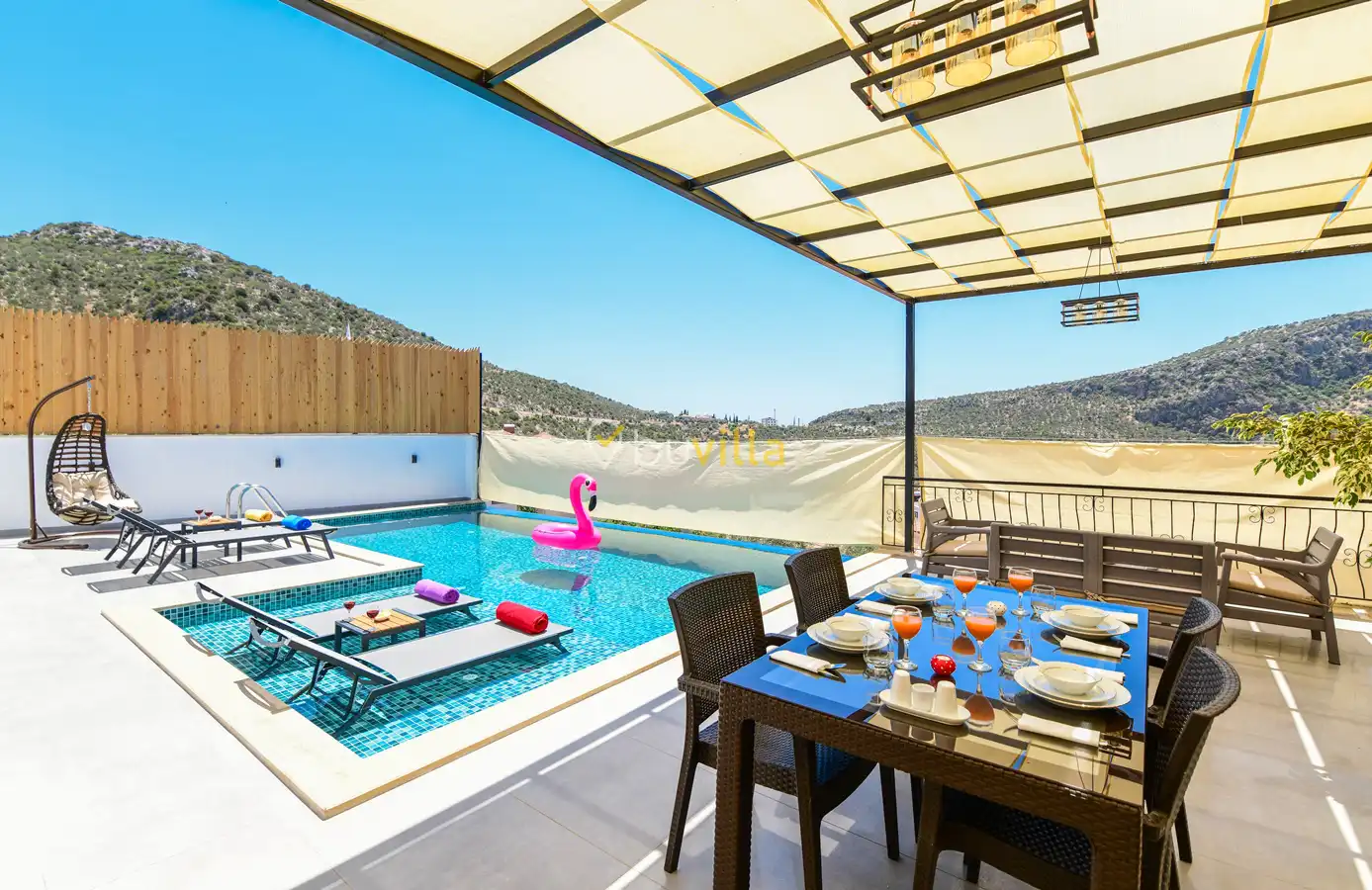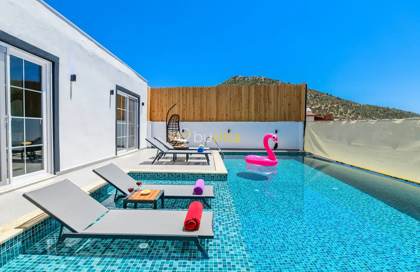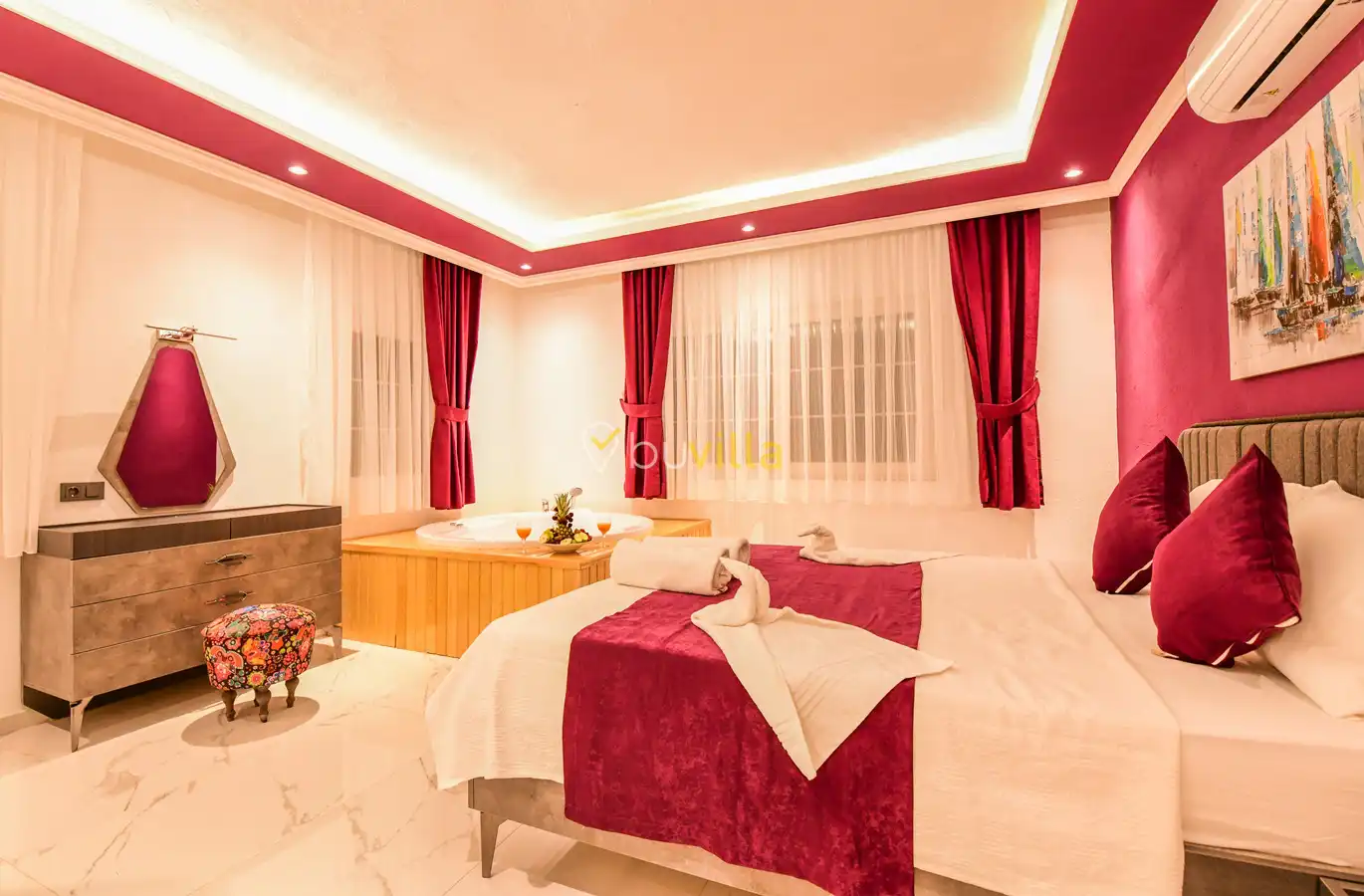 Villa Gıbrıs, Kalkan’ın Ulugöl bölgesinde yer alan, 2 yatak odalı ve 4 kişilik konaklama kapasitesine sahip bir tatil villasıdır. Muazzam konumuyla dikkat çeken villamız, süit yatak odasında bulunan jakuzisiyle tatilinize lüks ve rahatlatıcı bir dokunuş katmaktadır.