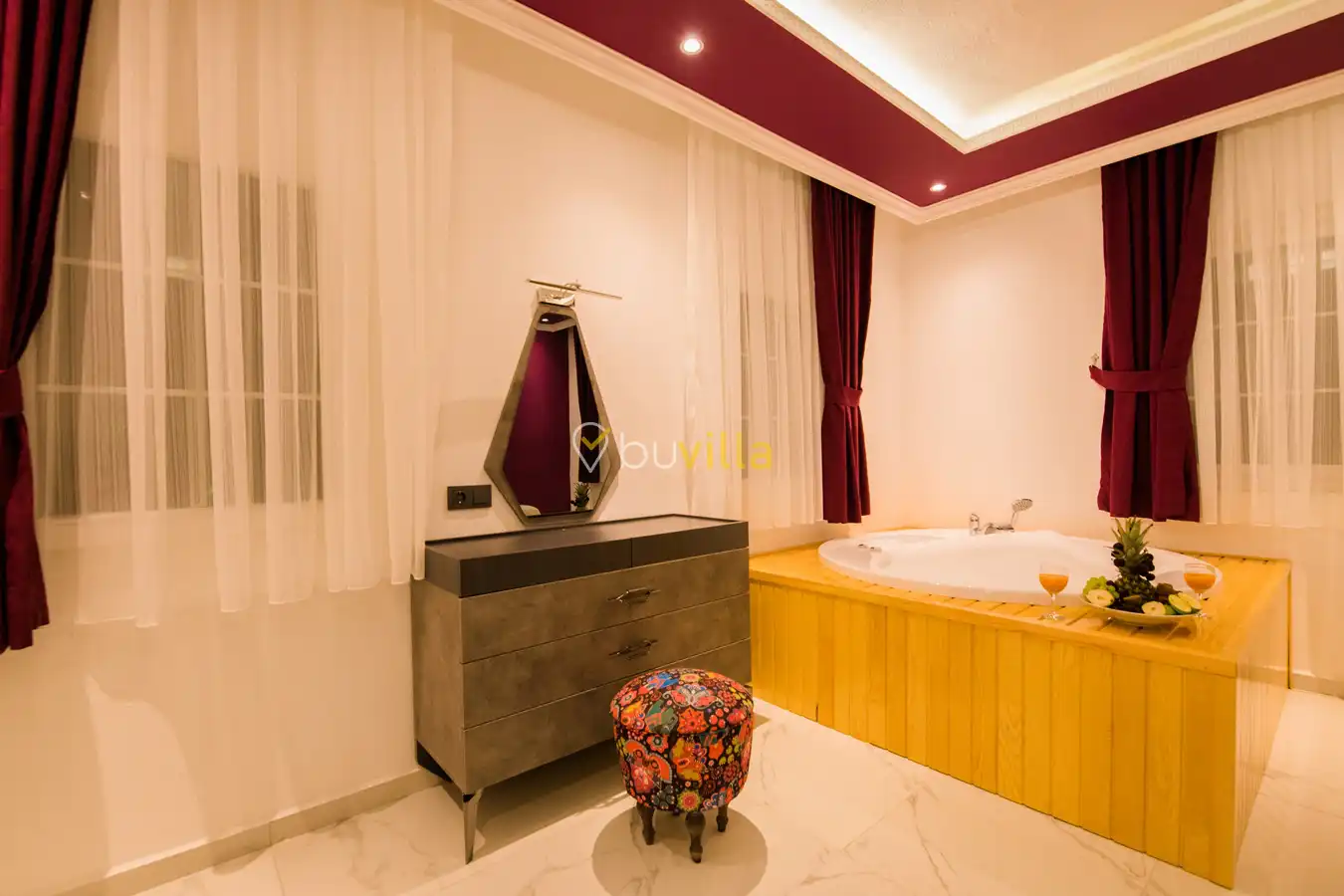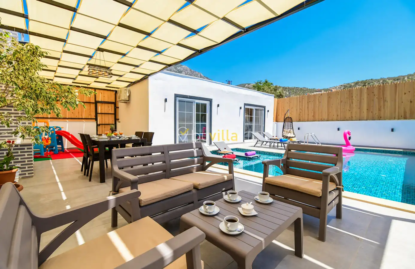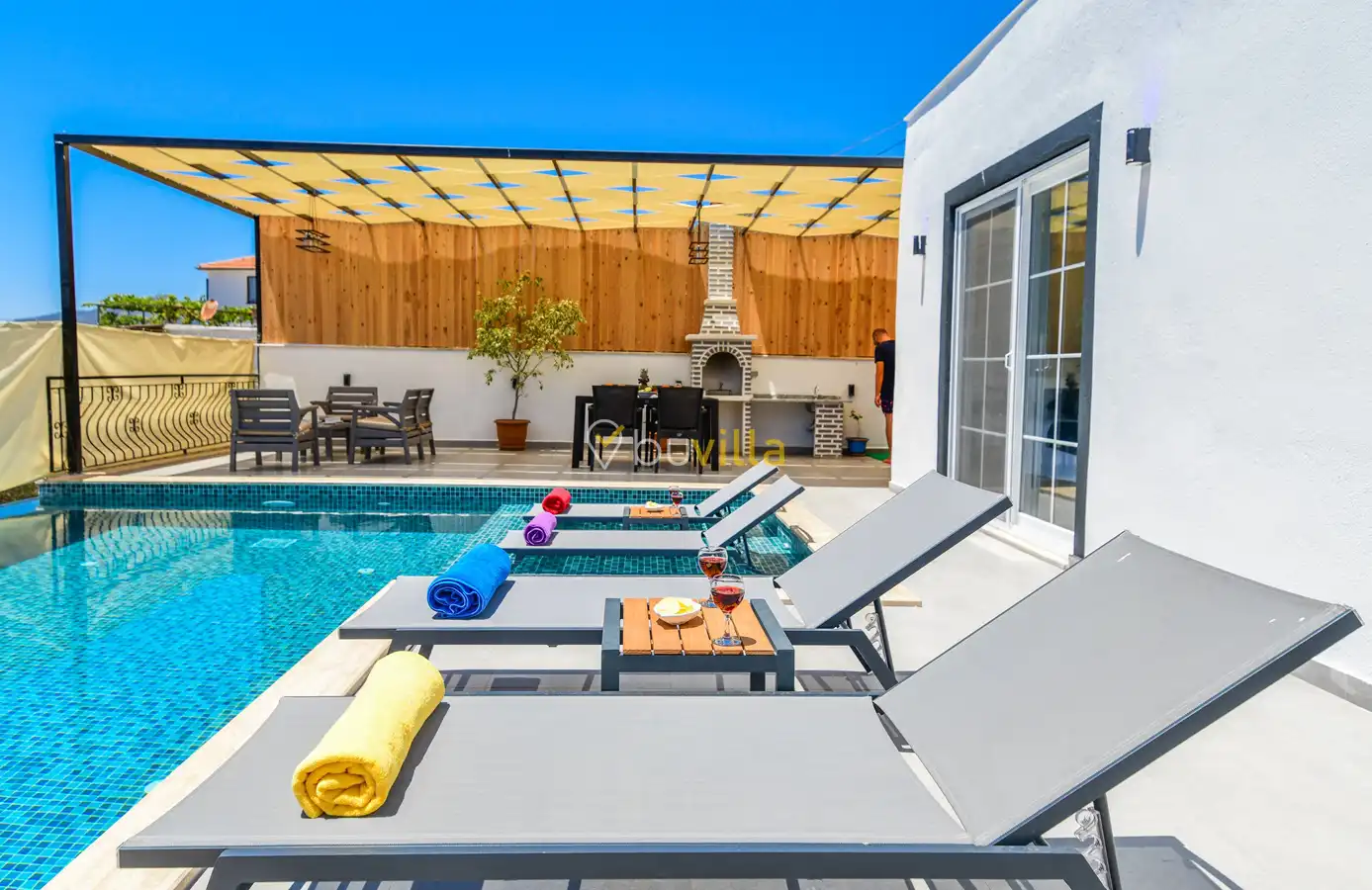 Villa Gıbrıs, Kalkan’ın Ulugöl bölgesinde yer alan, 2 yatak odalı ve 4 kişilik konaklama kapasitesine sahip bir tatil villasıdır. Muazzam konumuyla dikkat çeken villamız, süit yatak odasında bulunan jakuzisiyle tatilinize lüks ve rahatlatıcı bir dokunuş katmaktadır.