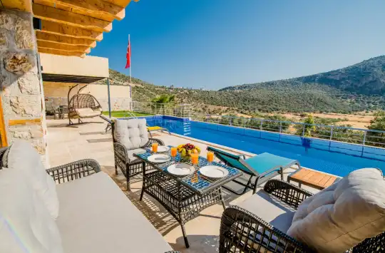 Doga Manzarali Muhafazakar Kiralik Villa Giygili 1 Kalkan Ulugöl mevkiinde yer almakta olup 3 yatak odalı 6 kişi konaklama kapasitesine sahiptir. Sicak bir ortam sunan ahsap ve tas dizayni ayni zamanda yazlari serin kislari ilik olmasi için tasarlanmistir. Muhtesem doga manzasi sevdiklerinizle huzurlu bir tatil yapma imkani sunmakta olan kiralik villamiz balayi çiftleri ve çekirdek aileler için uygun bir seçenektir. Önünde bulunan havuzunda ve bahçesinde keyifli vakit geçireblmeniz için masa tenisi , langirt ve çocuklar için oyun alani bulunmaktadir.Keyifli dakikalar geçirebilieceginiz Villa Giygili 1 huzurlu bir tatil için siz degerli misafirlerini beklemektedir.