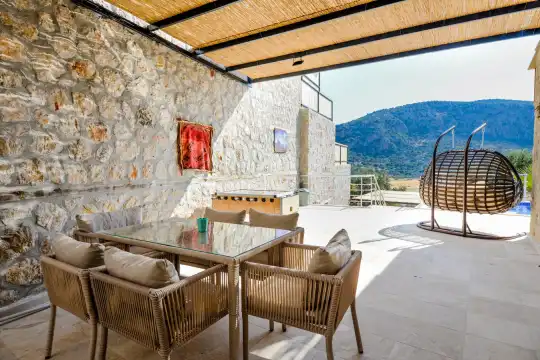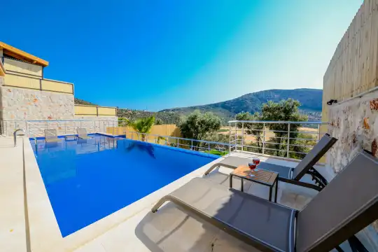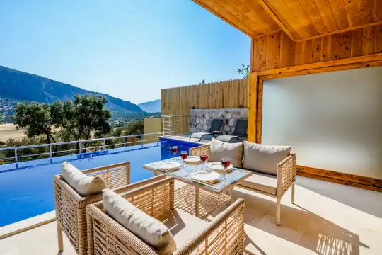 Doğa Manzarali Muhafazakar Kiralik Villa Gıygılı 2 Kalkan Ulugöl mevkiinde yer almakta olup 4 kişi konaklama kapasitesine ve 2 yatak odasina sahiptir. Sıcak bir ortam sunan ahşap ve taş dizaynı ayni zamanda yazlari serin kışlari ılık olmasi için tasarlanmistir. Muhteşem doğa manzasi sevdiklerinizle huzurlu bir tatil yapma imkani sunmakta olan kiralik villamiz balayi çiftleri ve çekirdek aileler için uygun bir seçenektir. Önünde bulunan havuzunda ve bahçesinde keyifli vakit geçirebilmeniz için masa tenisi , langırt ve çocuklar için oyun alani bulunmaktadir.Keyifli dakikalar geçirebilieceginiz Villa Gıygılı 2 huzurlu bir tatil için siz degerli misafirlerini beklemektedir.