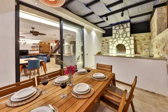 Muhafazakar Villa Villa Glorious, Kalkan Ulugöl mevkiinde yer almaktadir. 2 yatak odali 4 kisiye kadar konaklama hizmeti sunan villamiz balayi çiftleri için ideal bir seçenektir. Çift jakuzisi ve saunasi masa tenisi bulunan villamizin Amerikan mutfaginda ihtiyaç duyabileceginiz tüm mutfak ekipmanlari yer almakta olup konforlu mobilyalarla dizayn edilmis salonu hizmetinizdedir.