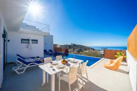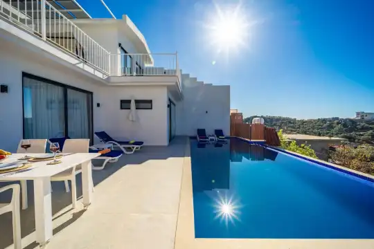 Villa Glorya, Kalkan Kördere mevkiinde 2 yatak odalı 4 kişi konaklama kapasitesine sahiptir. Deniz manzaralı villamızın etrafı korunaklı muhafazakar villa seçenekler arasında yer almaktadır. Kış aylarına uygun kapalı ısıtma havuzu bulunmaktadır. Villa içerisinde ihtiyaç duyabileceğiniz tüm ekipmanlar yer almakta olup balayı ve çekirdek aileler için uygundur.
