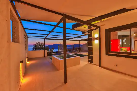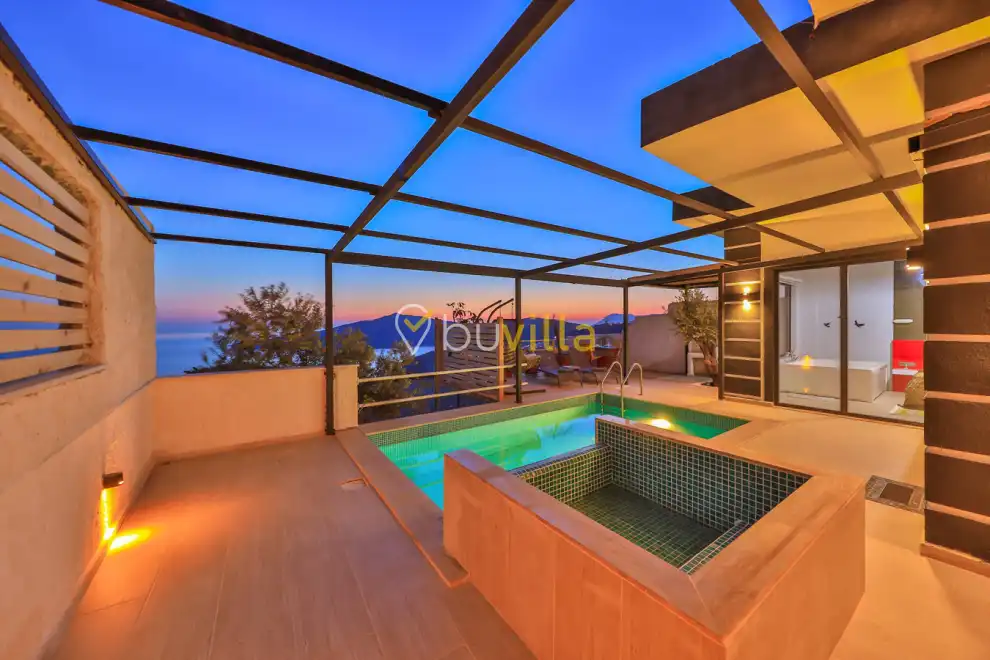 Kalkan Kördere Mevkiinde muhtesem deniz ve adalar manzarasina sahip 2 kisilik bir villadir. Havuz bahçe kati korunakli olup yatak odasinda jakuzisi bulunan villamiz balayi çiftleri için idealdir. Villamizin kis aylari için havuz isitma sistemi bulunmaktadir. Hafizaniza kazinacak bir tatil için siz degerli misaiflerimizi Villa Guido 2 ye bekleriz.