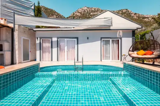 Kalkan Kördere mevkiinde konumlanan doga ve deniz manzarali bir balayi villasidir. Tek yatak odali olup toplamda 2 kisiye kadar konaklama saglamaktadir. Kiralik villamizin tam donanimli Amerikan mutfaginda ihtiyaç duyabileceginiz tüm ekipmanlar mevcut olup konforlu mobilyalarla dizayn edilmis salonu hizmetinizdedir. Havuz ve bahçe kati korunakli olan Villa Guido 6 balayi çiftleri için ideal bir seçenektir.