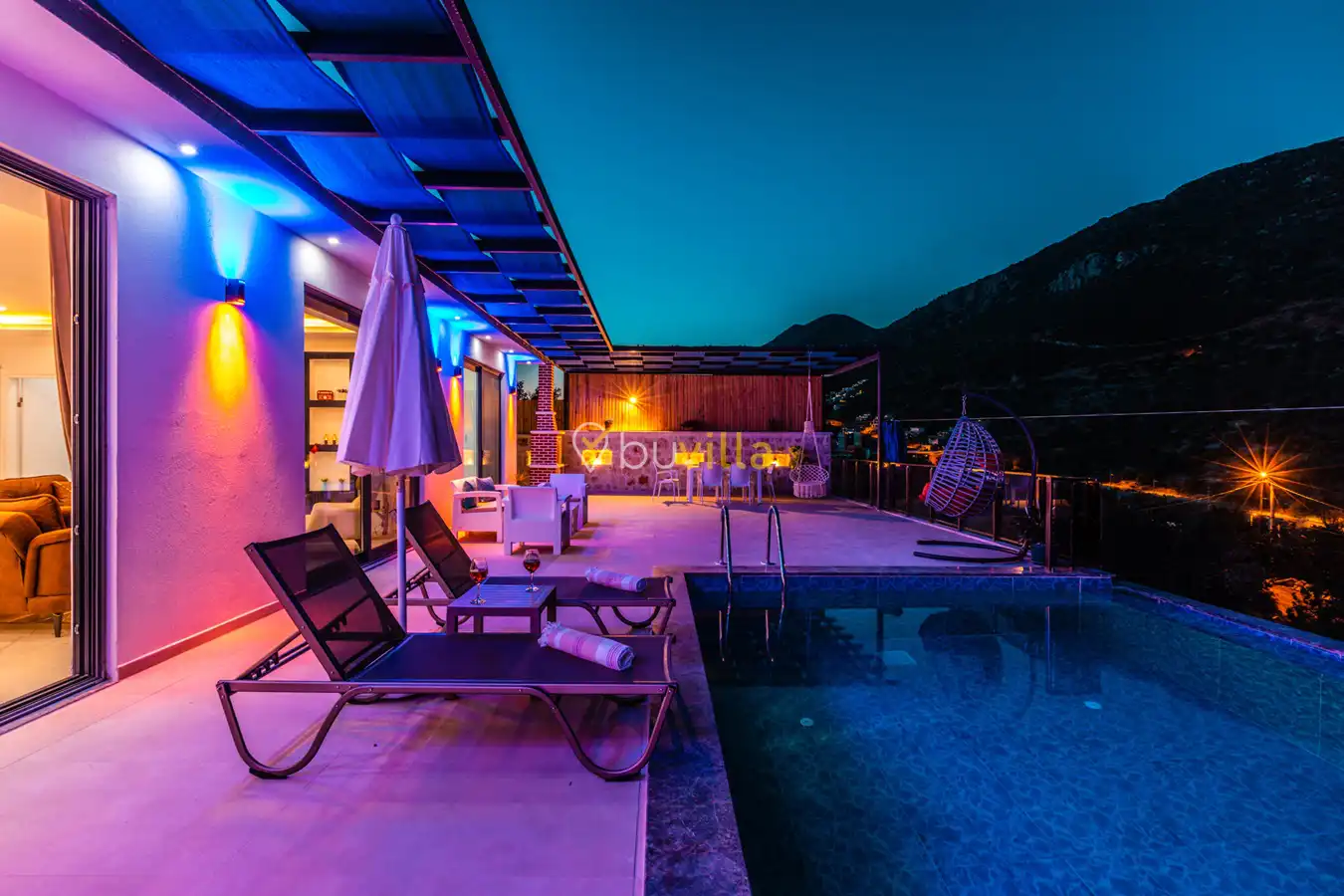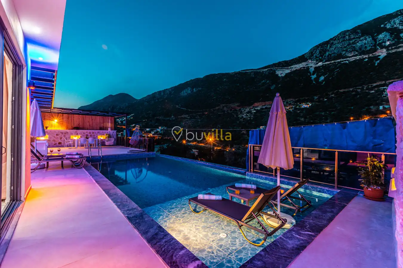 Villa Gülfidan, Kalkan Sarnıçbaşı mevkiinde yer alan özel bir villadır. Tam korunaklı havuzu, geniş ve ferah havuz terasıyla, yemyeşil bir bahçeye sahip olan villa, doğa ile iç içe bir ortam sunar. Sakin bir atmosfer arayanlar için ideal bir seçenek olup, özellikle çekirdek aileler ve balayı çiftleri için uygundur. Ayrıca villada eğlence imkanları da bulunarak misafirlerine keyifli bir tatil deneyimi sunmaktadır.