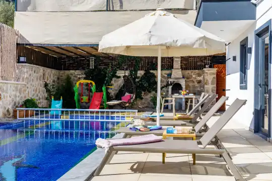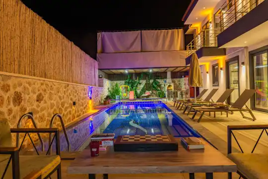 Villa Hanedan Uno, Kalkan Patara mevkiinde yer alan, havuzu tam korunaklı bir tatil villasıdır. Balayı çiftleri ve çocuklu aileler için ideal bir seçenek sunan villamız, keyifli ve huzurlu bir tatil geçirmek isteyen misafirlerine özel bir deneyim vaat etmektedir. Villamızda çocuk oyun parkı, salıncak ve langırt gibi eğlence alanları bulunmaktadır, böylece ailenizle unutulmaz anılar biriktirebilirsiniz.