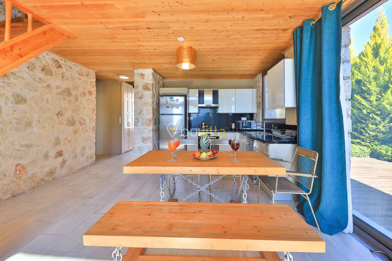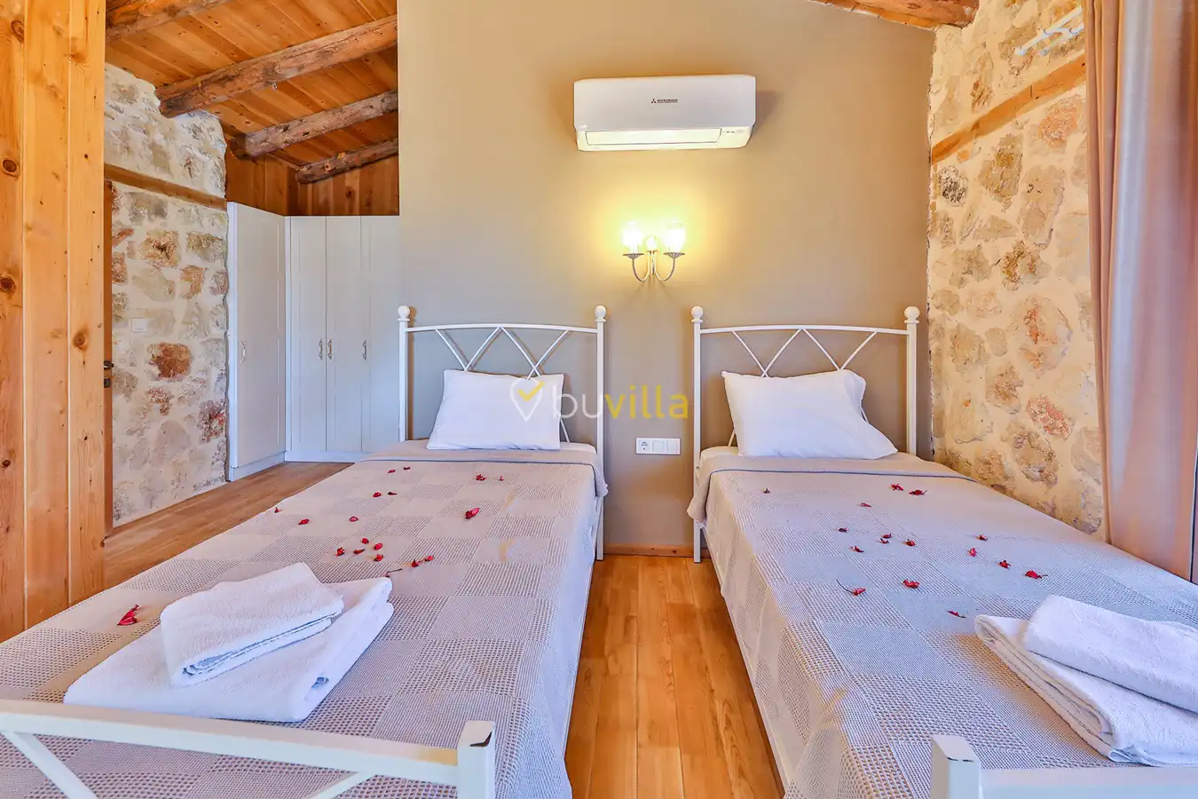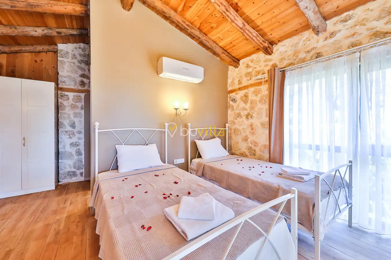 Özgün taş mimarisiyle inşa edilen villamız, 3 yatak odası ve 6 kişilik konaklama kapasitesiyle aileler ve arkadaş grupları için konforlu bir konaklama imkânı sunmaktadır. Doğal ağaçlarla çevrili yapısı sayesinde daha izole ve sakin bir atmosfer sunan Villa Hestia, huzurlu bir tatil arayan misafirler için ideal bir seçenektir.
