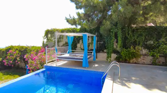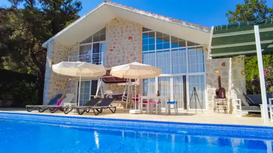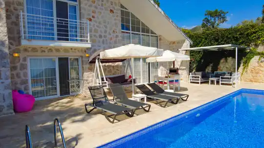 Kalkan Islamlar mevkiinde 2 yatak odali 4 kisi kapasitelidir. Doga içerisindeki villamiz muhtesem doga ve deniz manzarasina sahiptir. Kiralik villamizin etrafi korunakli olup muhafazakâr villa seçeneklerimiz arasindadir. Ihtiyaç duyabileceginiz tüm ekipmanlar bulunan villamizin genis havuz terasi bulunmaktadir. Keyifli tatil firsati sunan kiralik villamiz misafirleriniz agirlamayi beklemektedir. (Villamiz da 3*3 ebatlarinda çocuk havuzu bulunmaktadir.)