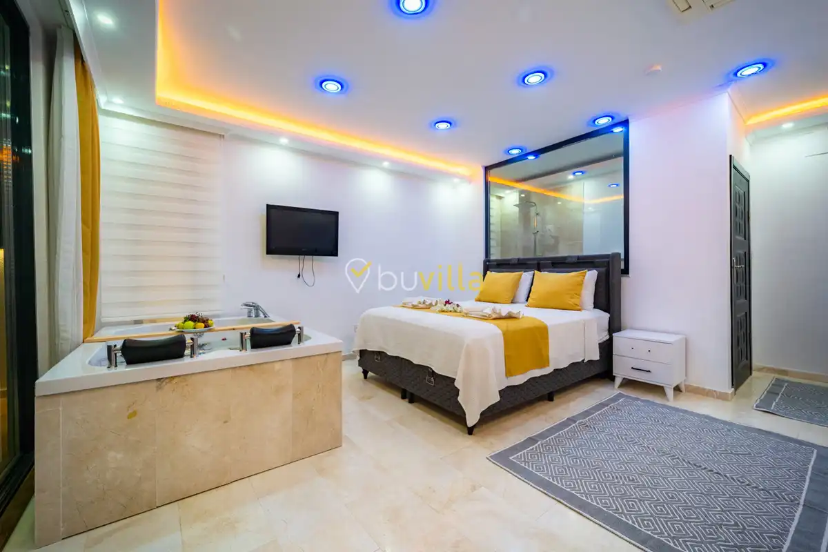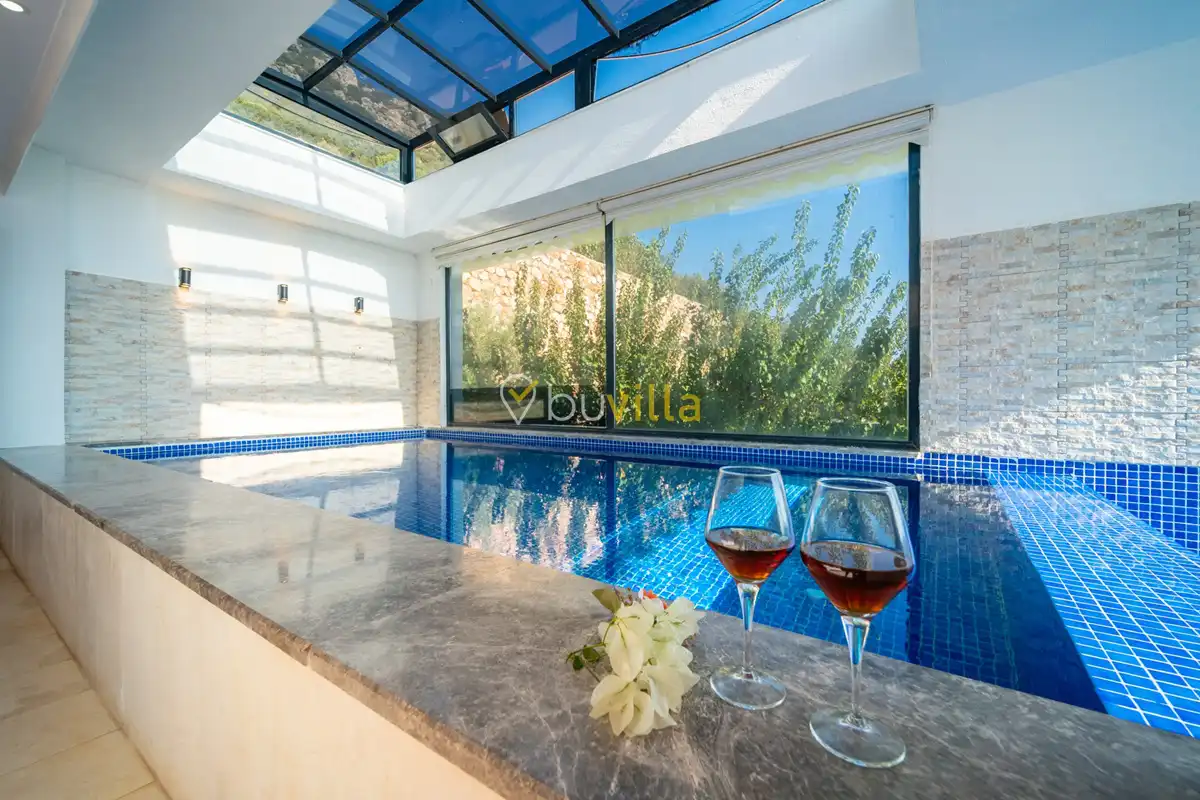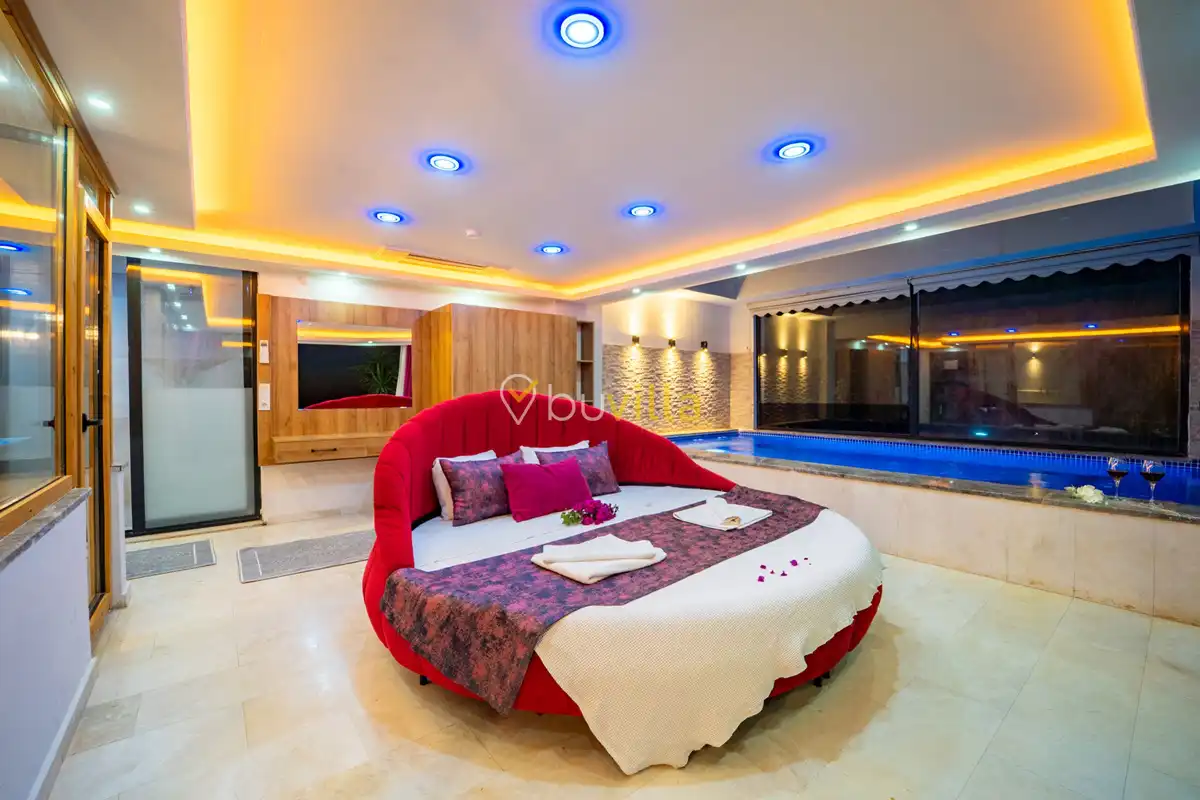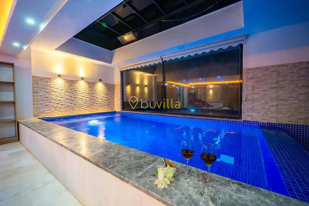 Not: En:2,90 Boy:5,10 Derinlik:1,10 Ebatlarinda olan kapali havuz ısıtması talep halinde gecelik ekstra 1000 TL karşılığı aktif hale getirilir