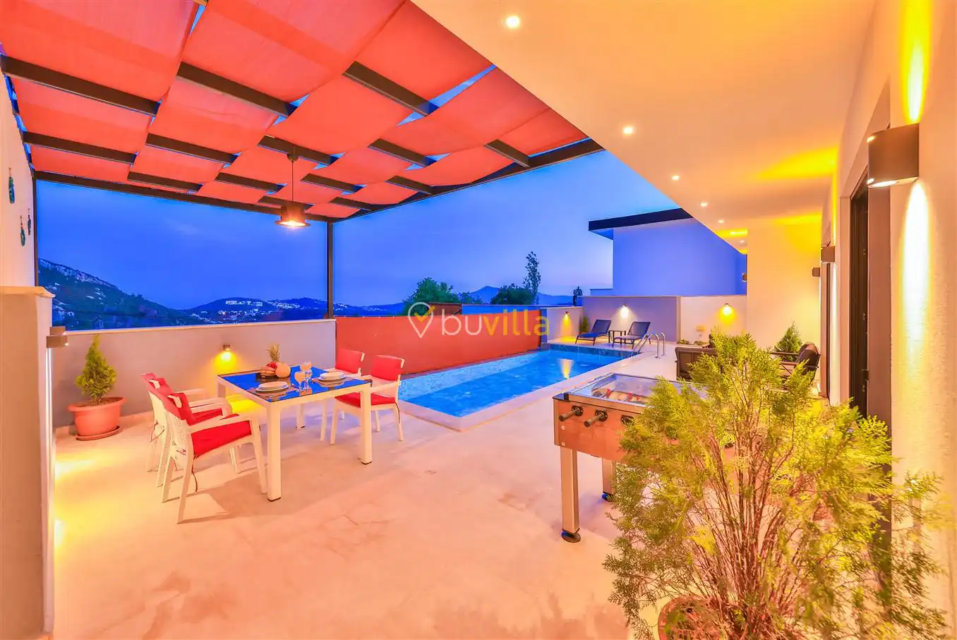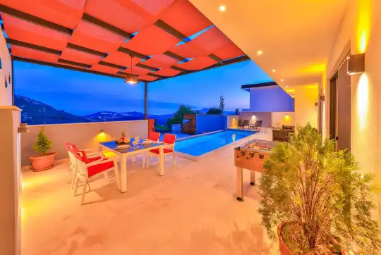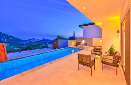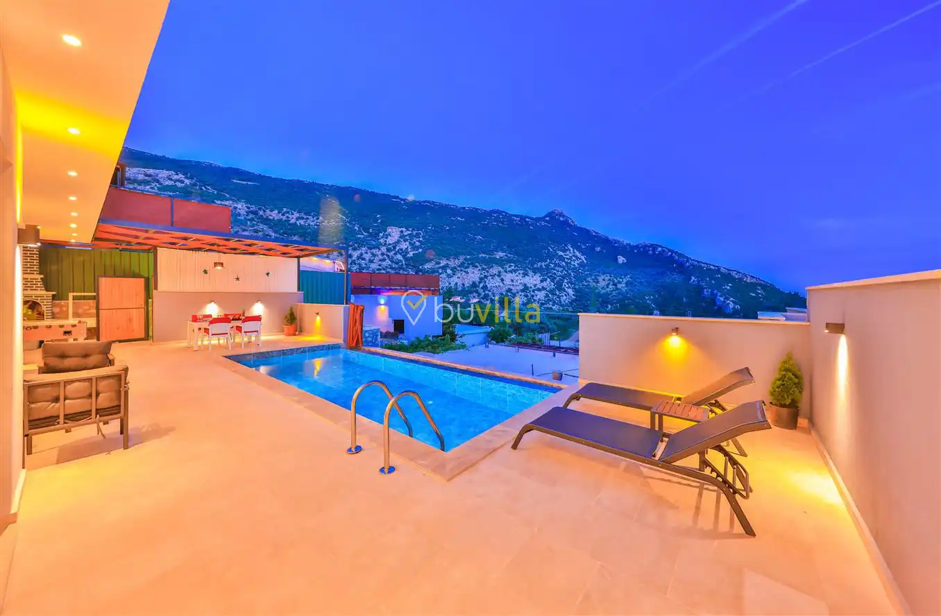 Antalya’nın gözde tatil beldelerinden Kalkan İslamlar bölgesinde yer alan villamız, 2 kişilik konaklama kapasitesine sahip özel bir balayı villasıdır.Villamızın içerisinde bulunan jakuzi, tatilinize konfor ve keyif katarken; langırt ise eğlenceli vakit geçirmenize olanak sağlar. Doğa ile iç içe, sakin bir konumda yer alan villa; romantik ve huzurlu bir tatil arayan balayı çiftleri için ideal bir konaklama seçeneği sunmaktadır.