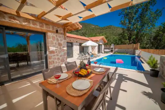 Doğa ile iç içe konumlanan villamızın özel yüzme havuzu, dış etkenlerden uzak bir kullanım sunacak şekilde planlanmıştır. Bu sayede misafirler tatilleri boyunca daha sakin ve keyifli bir tatil deneyimi yaşayabilirler.