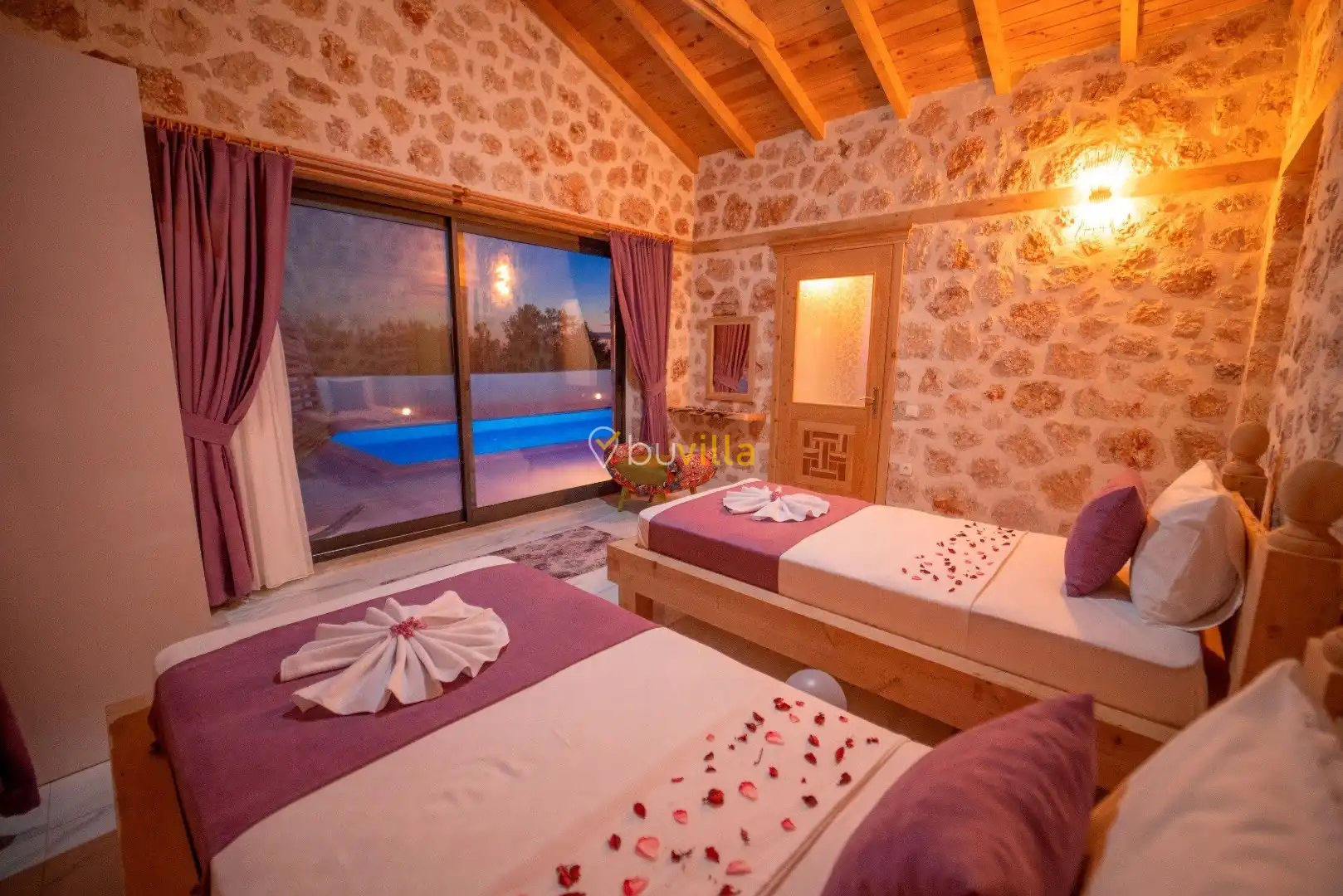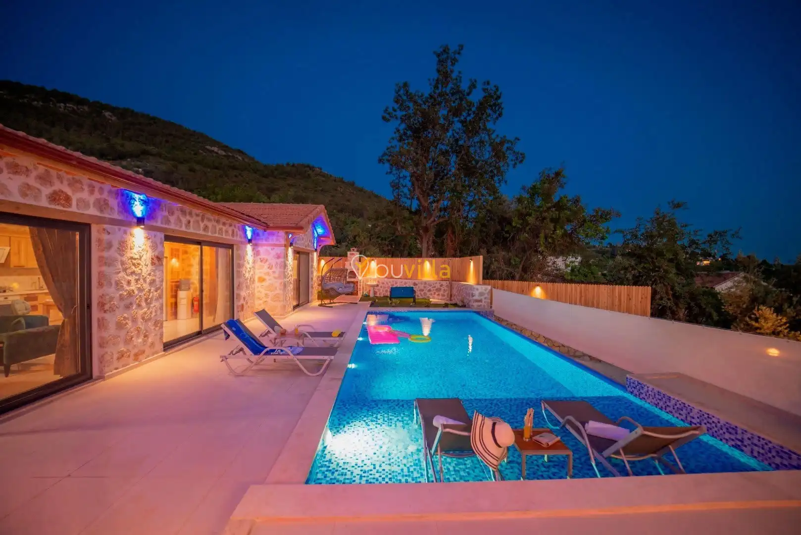 Kalkan Üzümlü bölgesinde konumlanan Villa İnci Üzümlü, doğa içerisinde huzurlu bir tatil arayan misafirler için tasarlanmış konforlu bir tatil villasıdır. 2 yatak odasına sahip olan villamız, 4 kişi konaklama kapasitesiyle çekirdek aileler ve balayı çiftleri için ideal bir konaklama imkânı sunmaktadır.