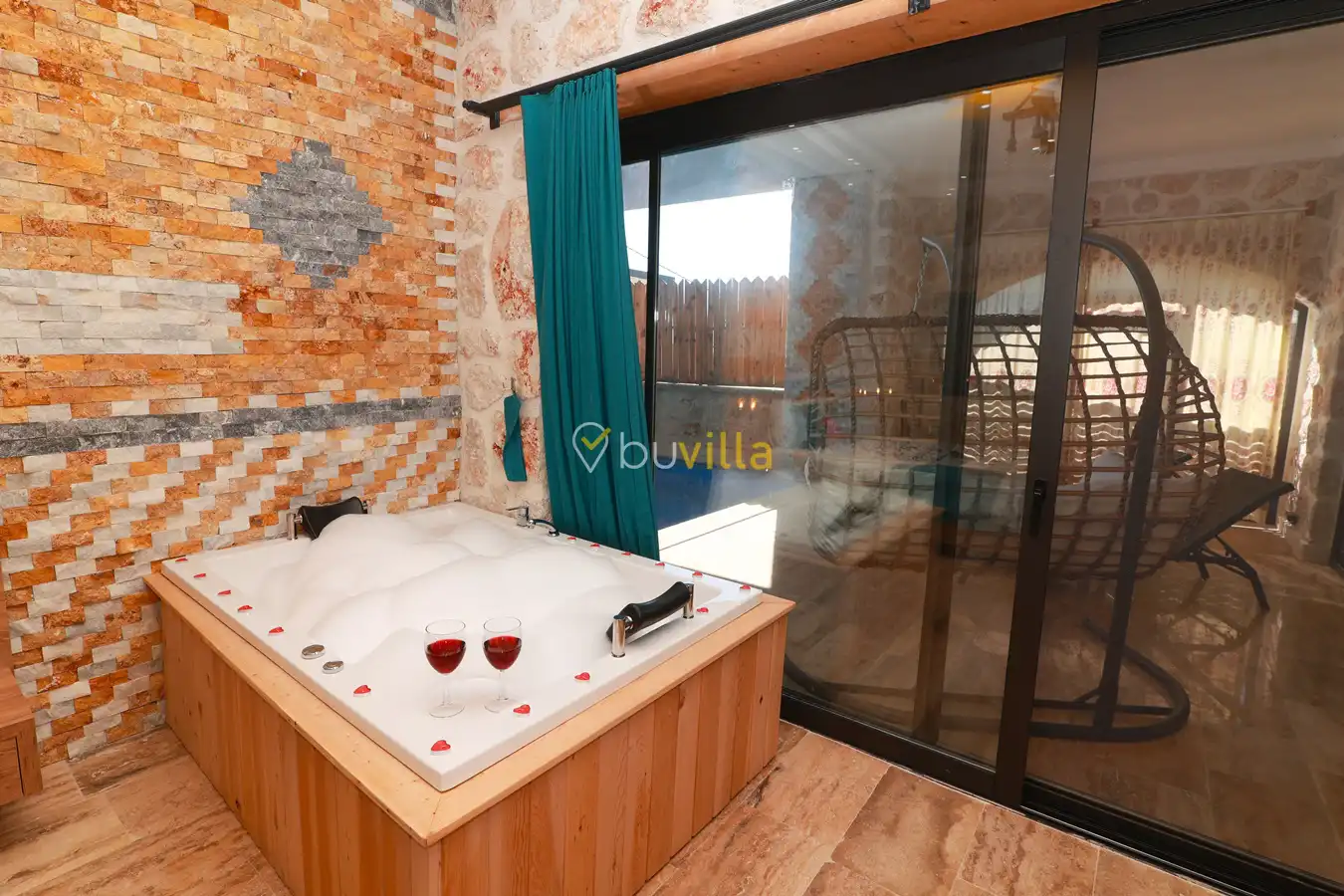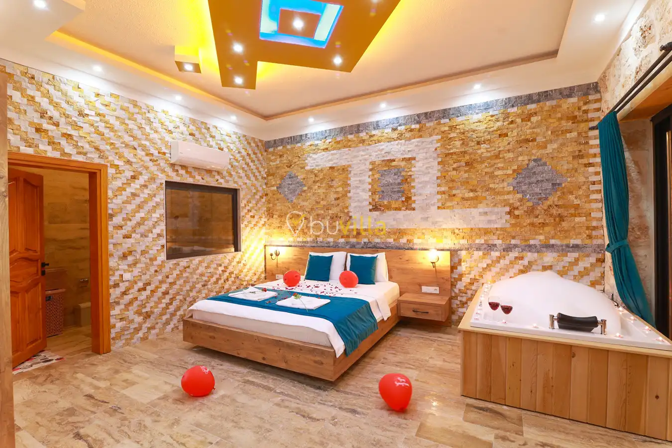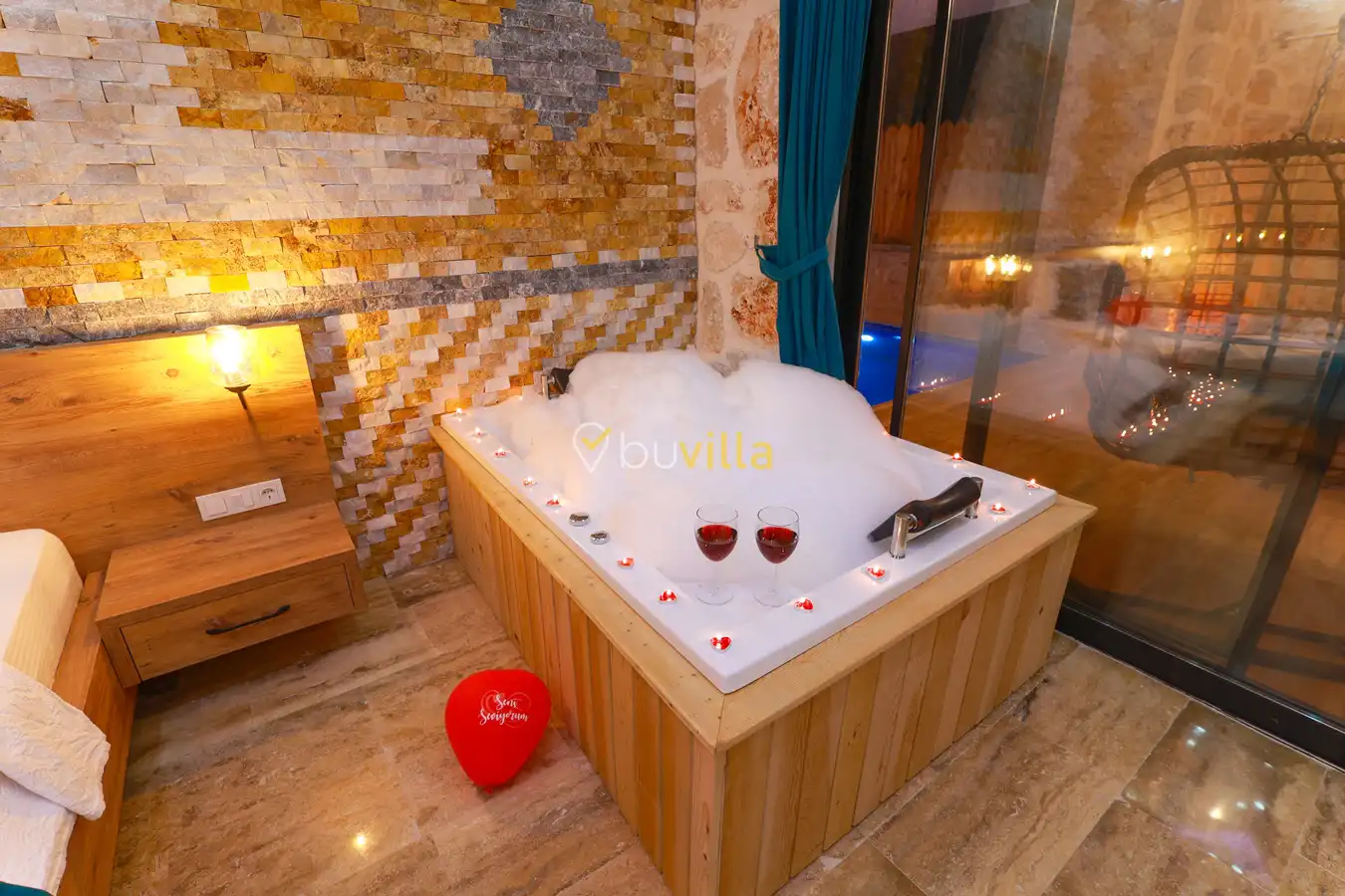 Muhafazakâr villa kategorisinde yer alan villamız, 1 yatak odası ve 2 kişilik konaklama kapasitesine sahiptir. Özel yüzme havuzu ve bahçe alanı dışarıdan görünmeyecek şekilde düzenlenmiş olup, mahremiyete önem veren misafirler için konforlu ve sakin bir tatil ortamı sunar.