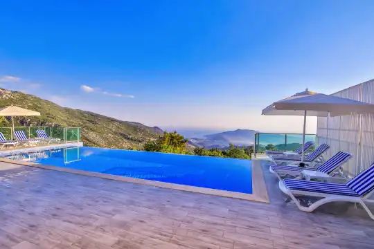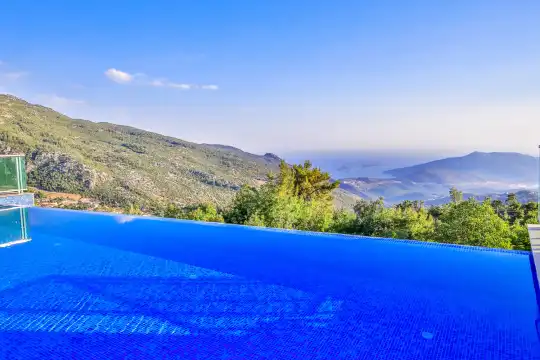 Kalkan Islamlar mevkiinde 4 yatak odali 8 kisi kapasitesine sahiptir. Kiralik villamizin muhtesem doga ve deniz manzarasi bulunmaktadir. Ihtiyaç duyabileceginiz tüm ekipmanlari bulunan kiralik villamiz lüks dizayni ile göz doldurmaktadir. Kis aylarina uygun olan kiralik villamizin kapali isitma havuzu bulunmaktadir. Disaridan havuzu ve bahçe terasi görünmeyecek sekilde tasarlanmis olan kiralik villayi genis aile ve arkadas gruplari da tercih edebilirler. Keyifli tatil firsati sunan kiralik villamiz misafirlerini agirlamayi beklemektedir.