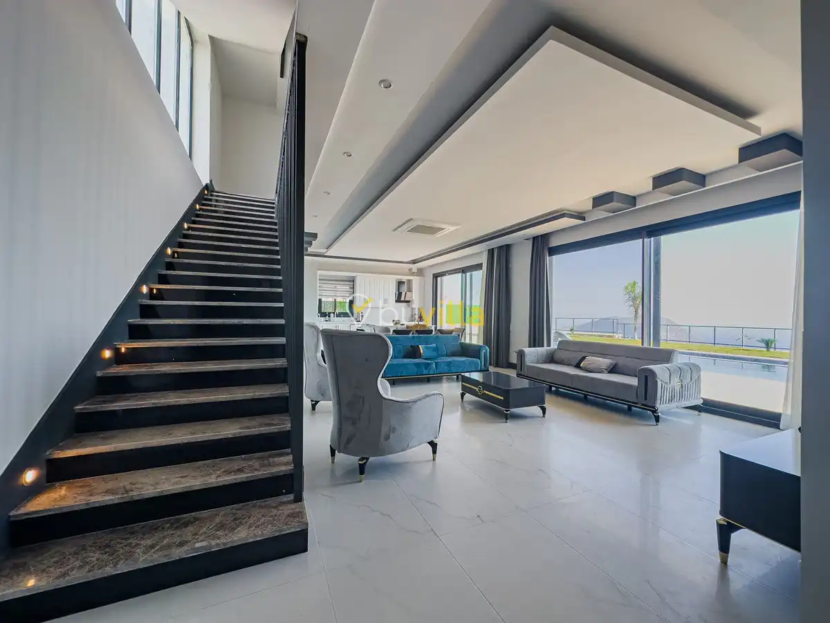Villamız, Kalkan merkeze sadece 2 km, denize ise 4 km mesafede yer almakta olup, modern mimarinin en güzel örneklerinden birini sergilemektedir. Teras katında yer alan geniş oturma alanı ve eşsiz deniz manzarası, keyif dolu anlar yaşamanız için tasarlanmıştır. Ayrıca teras katındaki suit aile yatak odasında bulunan jakuzi, sauna ve hamam, tatilinizi daha da rahatlatıcı ve özel bir hale getirecek detaylardır.