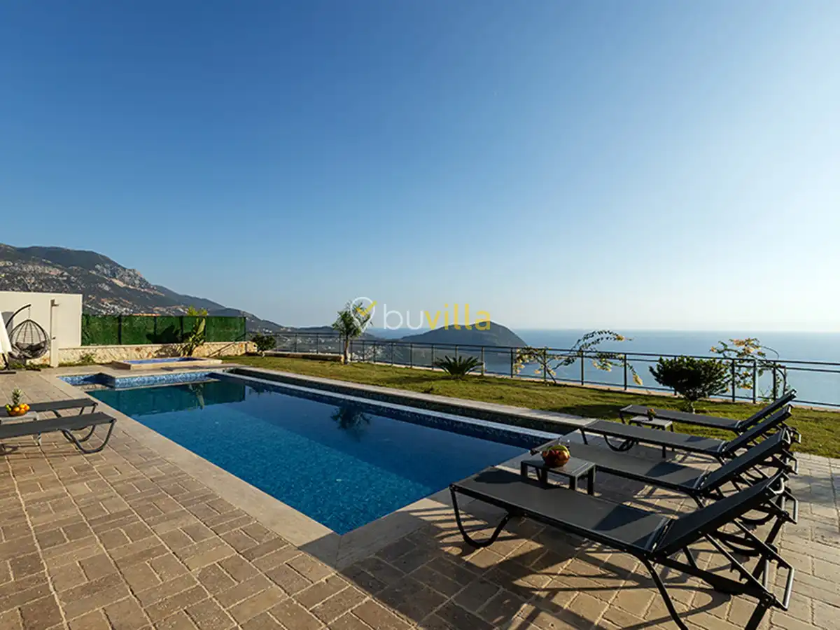 Kaş-Kalkan bölgesinin eşsiz güzelliklerine hâkim bir tepe üzerinde konumlanan bu lüks villamız, hem merkezi konumu hem de büyüleyici deniz ve doğa manzarasıyla unutulmaz bir tatil deneyimi sunmak için siz değerli misafirlerimizi bekliyor. Gözlerden uzak, huzurlu bir ortamda konforlu bir tatil geçirebileceğiniz villamız, ferah yaşam alanları, tamamı suit 4 yatak odası, özel yüzme havuzu, çocuk havuzu, güvenlik kamera sistemi, geniş özel bahçe ve otopark gibi pek çok ayrıcalıklı özellik sunmaktadır.