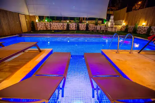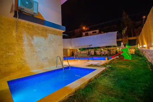 Muhafazakar Villa Kiralik Villa Karl , Kalkan Patara mevkiinde konumlanan muhafazakar bir villadir. Villamiz 3 yatak odali olan villamizda toplamda 6 kisi konaklayabilmektedir. Kiralik yazligimizin tam donanimli Amerikan mutfaginda ihtiyaç duyabileceginiz tüm ekipmanlar mevcut olup mobilyalarla dizayn edilmis salonu hizmetinizdedir. Villamizin havuz ve bahçe kati korunakli olup muhafazakar aileler için oldukça ideal bir seçenektir. Çocuk Havuzu Ölçüleri Genislik 2 m - Uzunluk 3 m - Derinlik 1,10 m