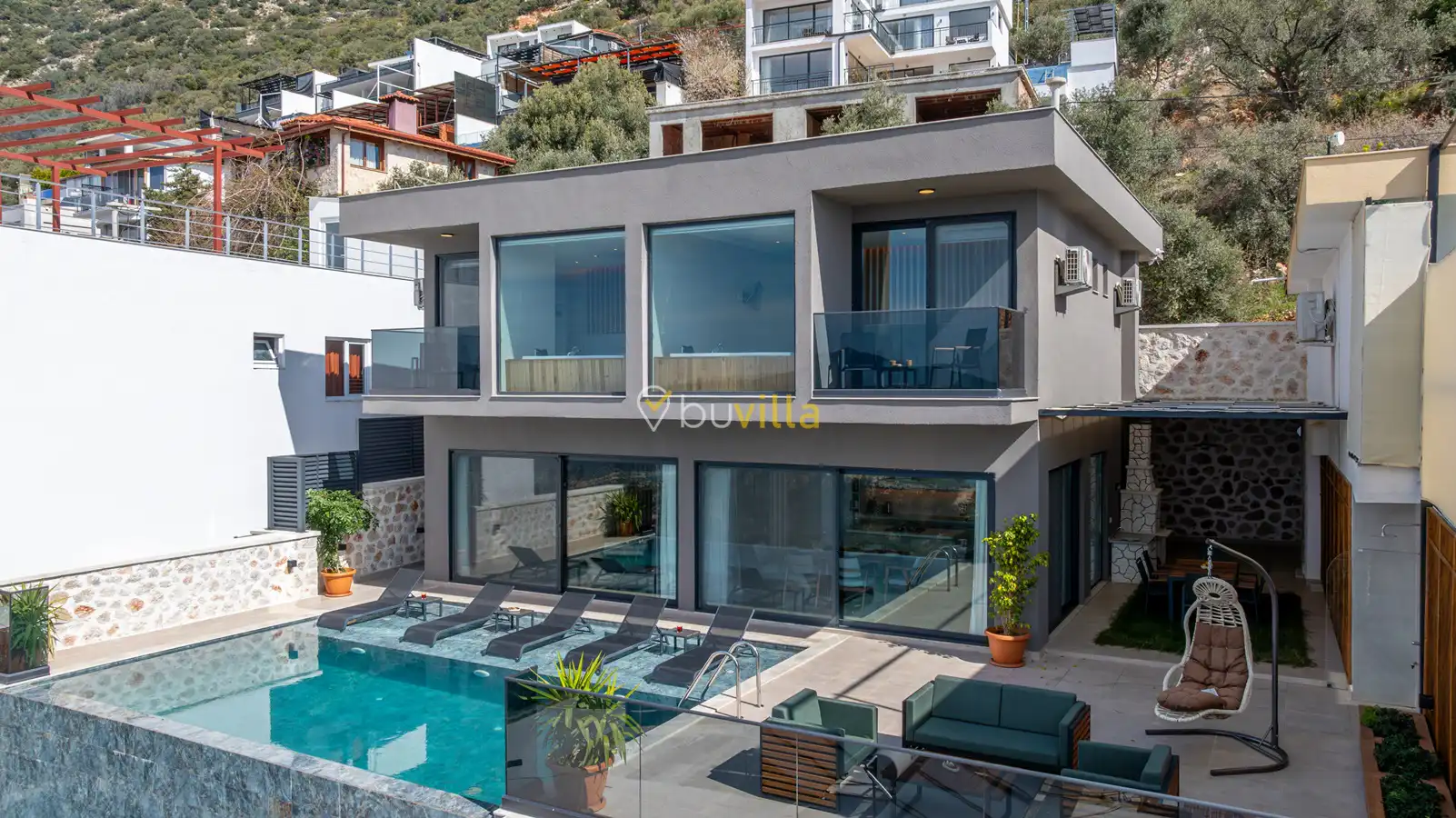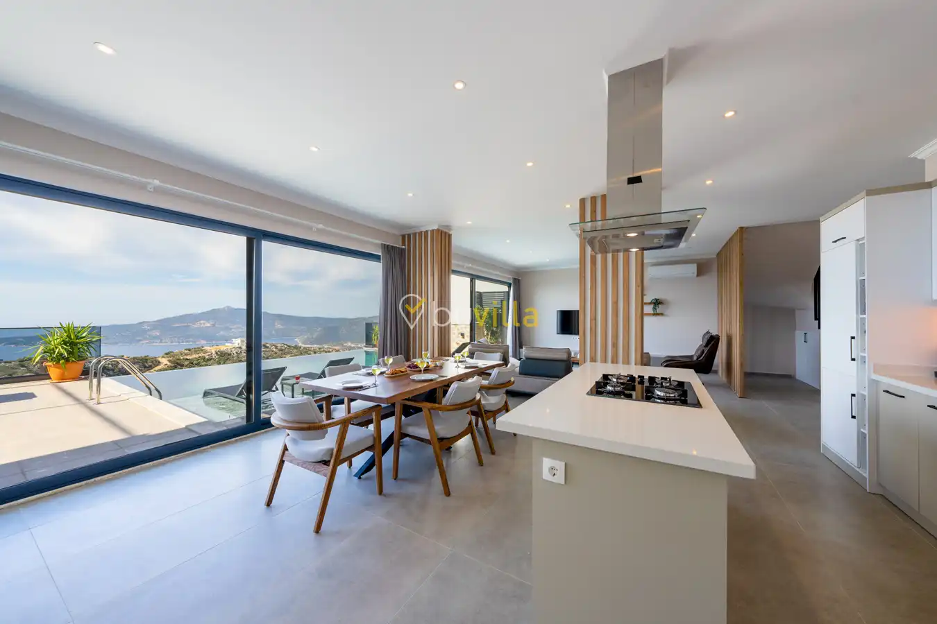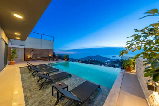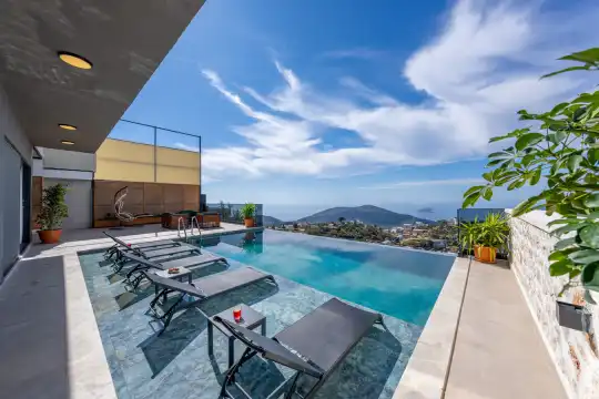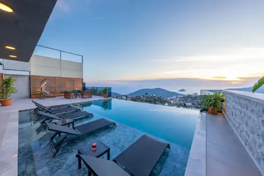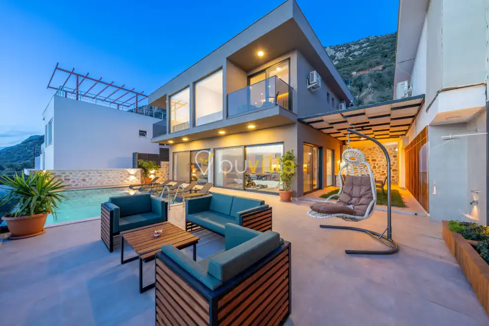 Kalkan Kördere mevkiinde deniz manzarali bir villadir. Kiralik villamiz 2 yatak odali 5 kisiye kadar konaklama yapilabilir. Tam donanimli mutfagin da ihtiyaç duyabileceginiz tüp ekipmanlar mevcut olup, konforlu salonu hizmetinizdedir.