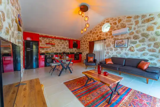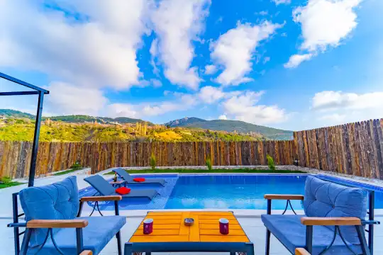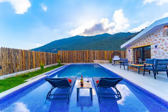 Doga Manzarali Muhafazakar Villa Kekikli 4 , Kalkan Saribelen mevkiinde konulandirilmis 2 kisilik bir villadir. Havuz bahçe kati korunakli olan villamizin yatak odasinda jakuzisi bulunmaktadir ve balayi çiftleri için idealdir.Kalkan merkeze 11 km uzaklikta olan villamizda tüm ekipmanlar sizler için düsünülerek hazirlanmistir.Unutulmaz bir tatil için Villa Kekikli 4 siz degerli misafirlerini agirlamayi bekliyor.