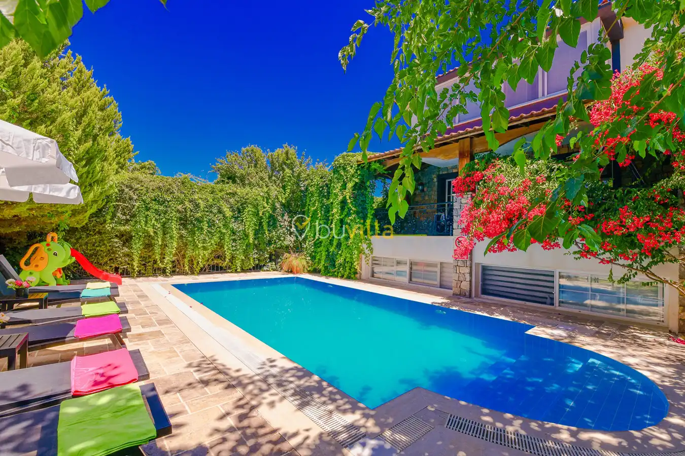 Not: Villamızın havuzu ısıtmalı olup talep halinde haftalık ekstra 17.500 TL den aktif edilmektedir.