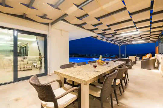 Deniz Manzarali Lüks Villa Kiralik Villa King , Kalkan Kördere mevkiinde konumlanan 6 yatak odali 12 kisi kapasiteli kalabalik aile villasidir. Villamizin tam donanimli Amerikan mutfaginda gerekli tüm ekipmanlar mevcut olup, lüks salonu hizmetinizdedir. Havuz bahçe kati oldukça genis olan deniz manzarali villamiz kalabalik aileler ve arkadas gruplari için oldukça ideal bir seçenek olup siz degerli misafirlerini ağırlamayi beklemektedir.