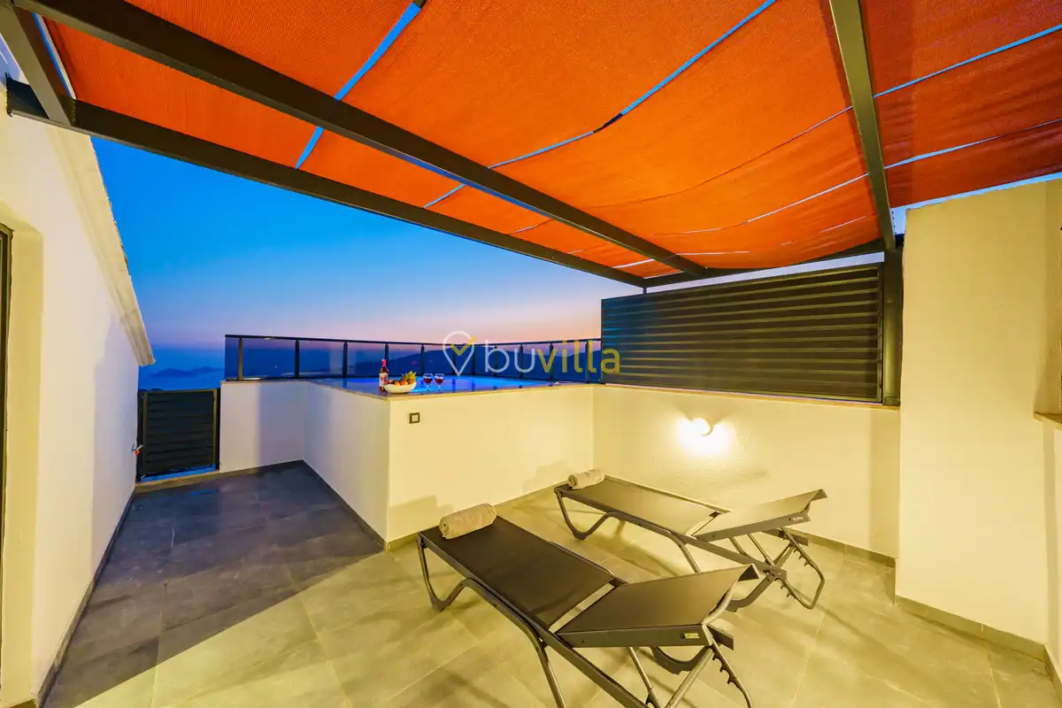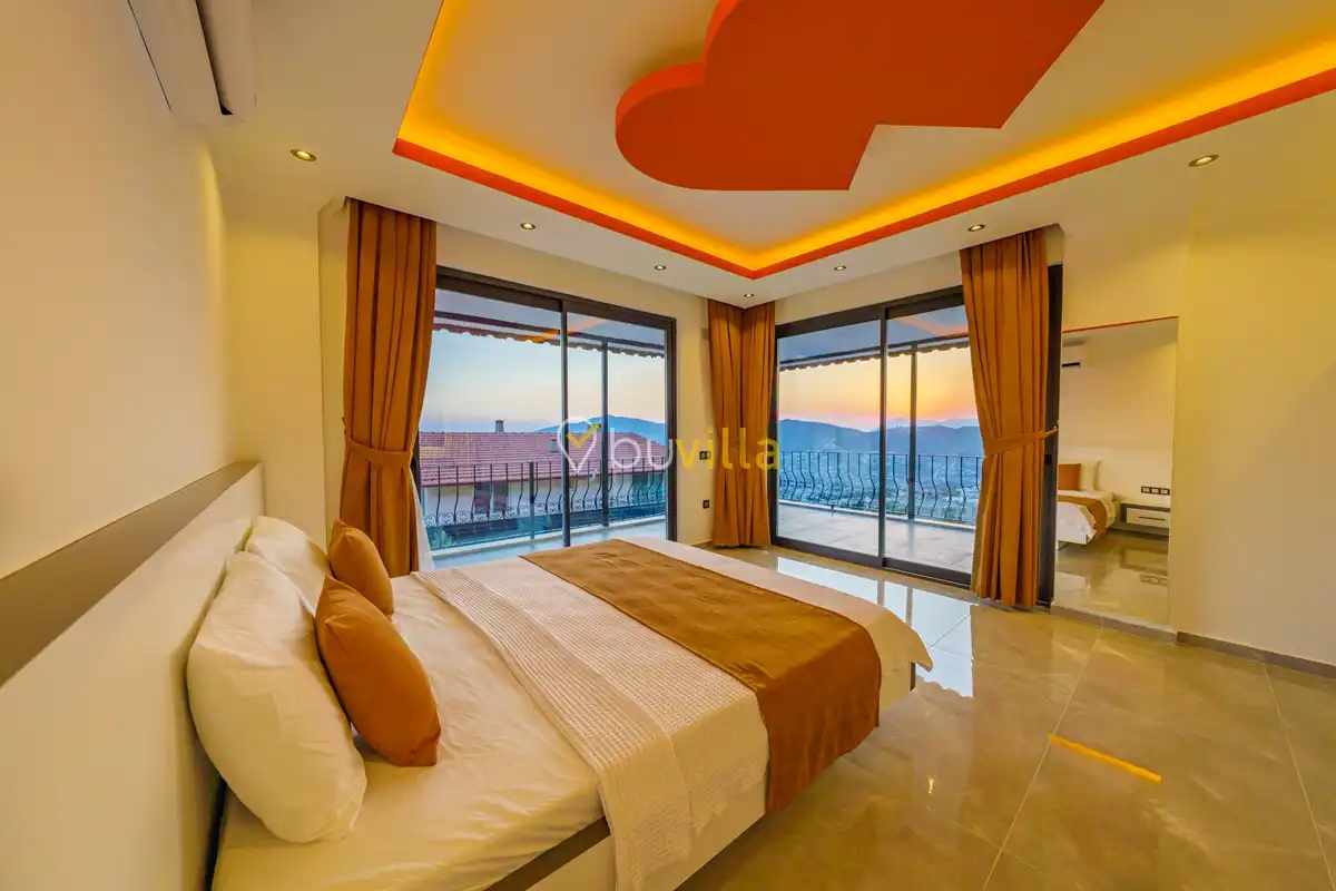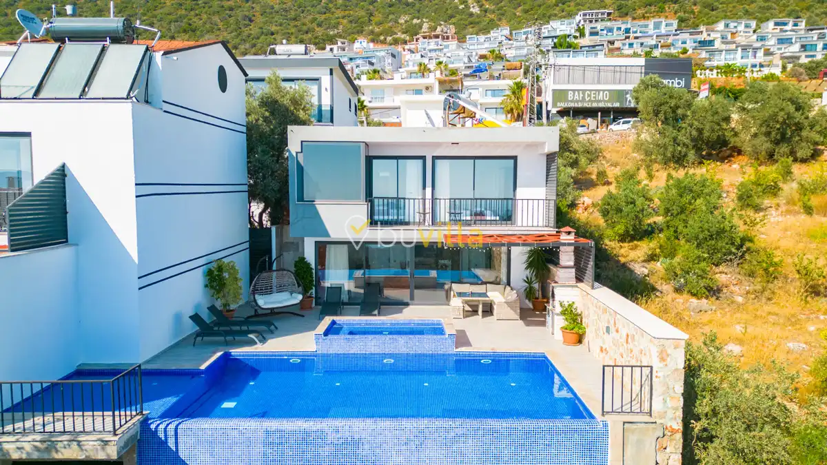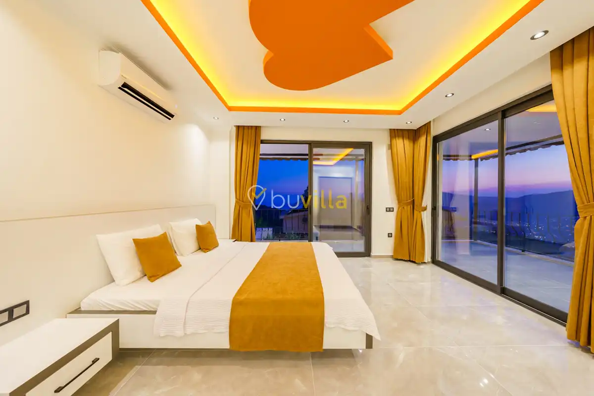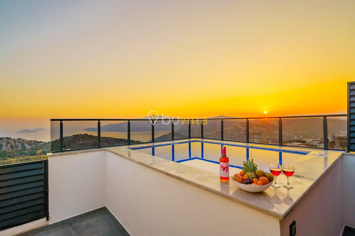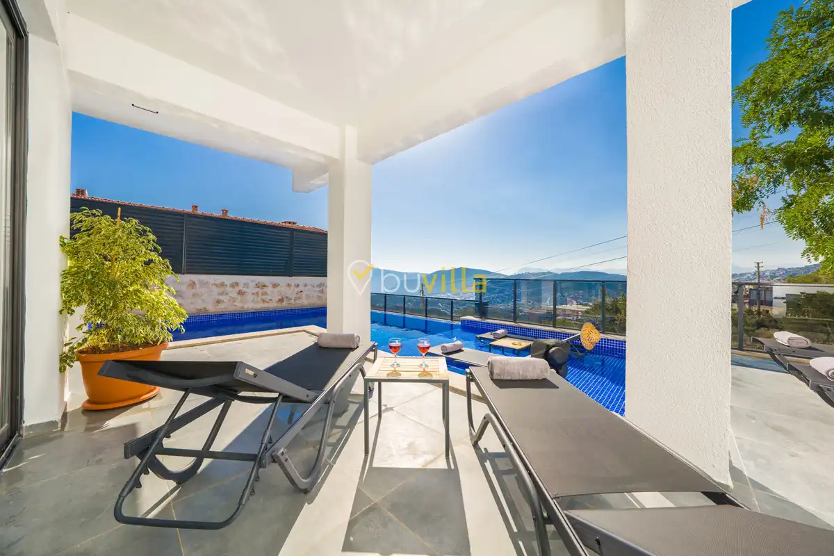 Kalkan Kördere bölgesinde 4 suit yatak odası ile 8 kişiye kadar konaklama kapasitesi sunmaktadır. Konaklama düzeni 2 adet double yatak ve 4 adet single yatak şeklindedir. Tüm yatak odalarında özel banyo ve WC bulunmakta olup, misafirlerimize konforlu ve rahat bir konaklama imkânı sağlamaktadır. Villamız yarı korunaklı yapıya sahiptir; bazı alanlar çevredeki villaların üst katlarından kısmen görülebilmektedir. Özel yüzme havuzunun bulunduğu alanda, jakuzili çocuk havuzu olarak da kullanılabilen ek bir havuz yer almaktadır. Ayrıca villamızın çatı katında, serinlemek amacıyla tasarlanmış küçük boyutlu bir yüzme havuzu da mevcuttur.