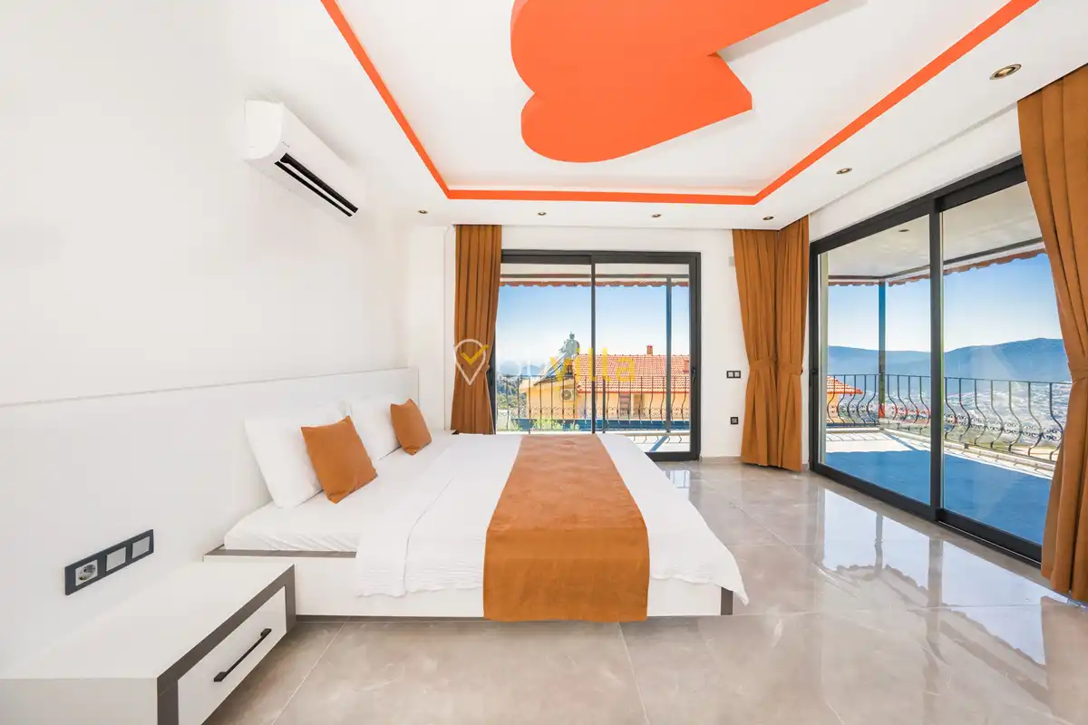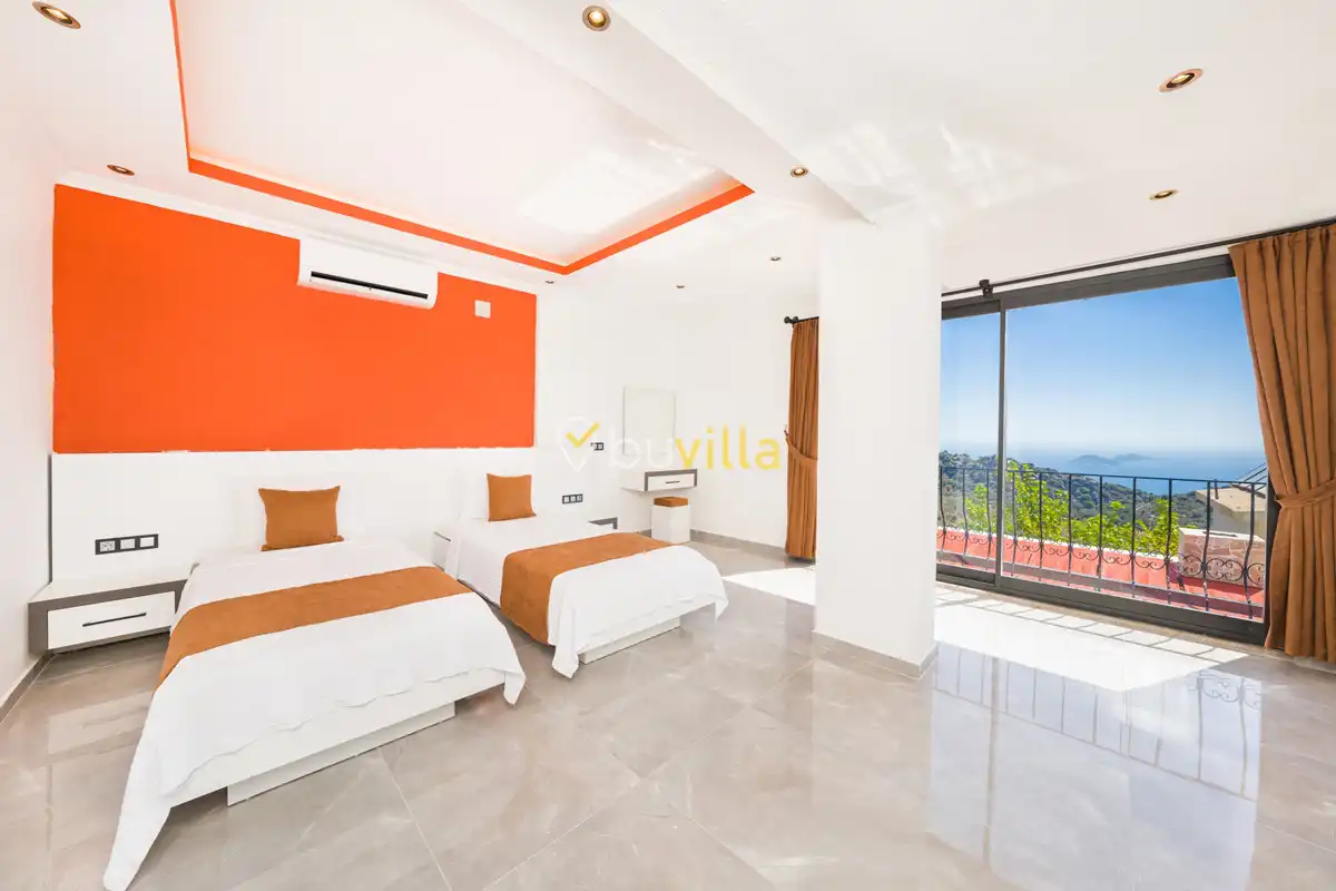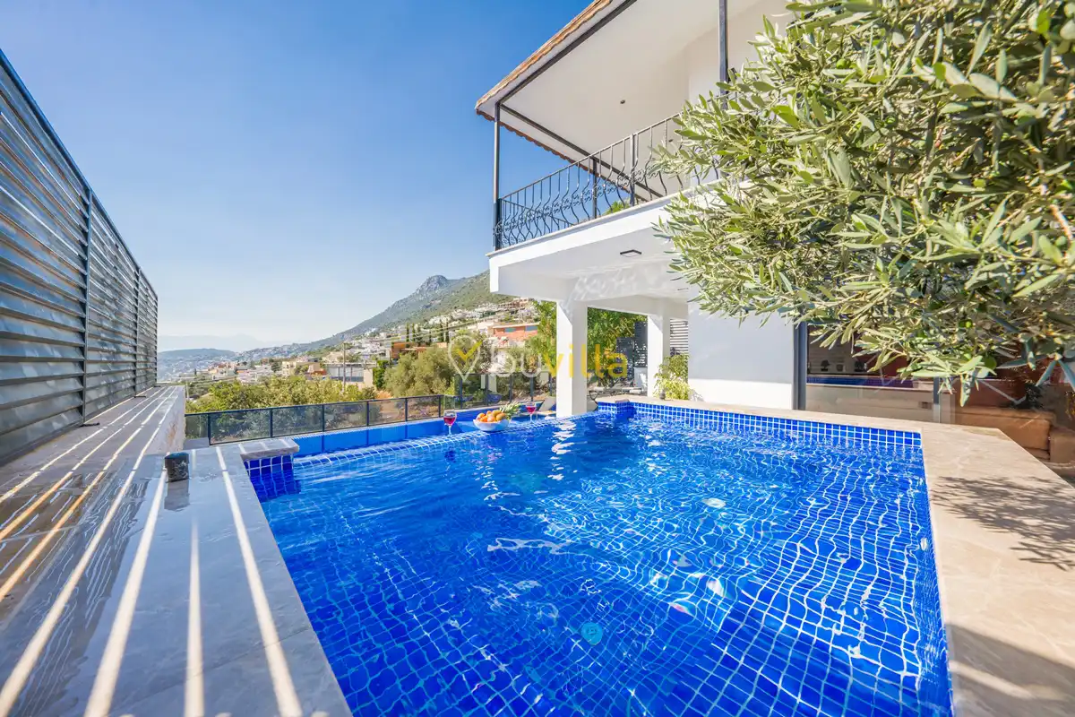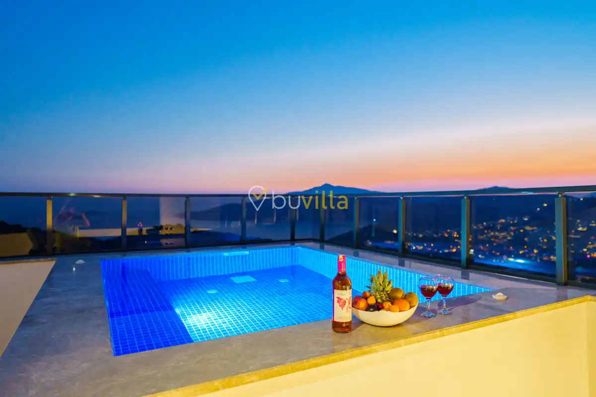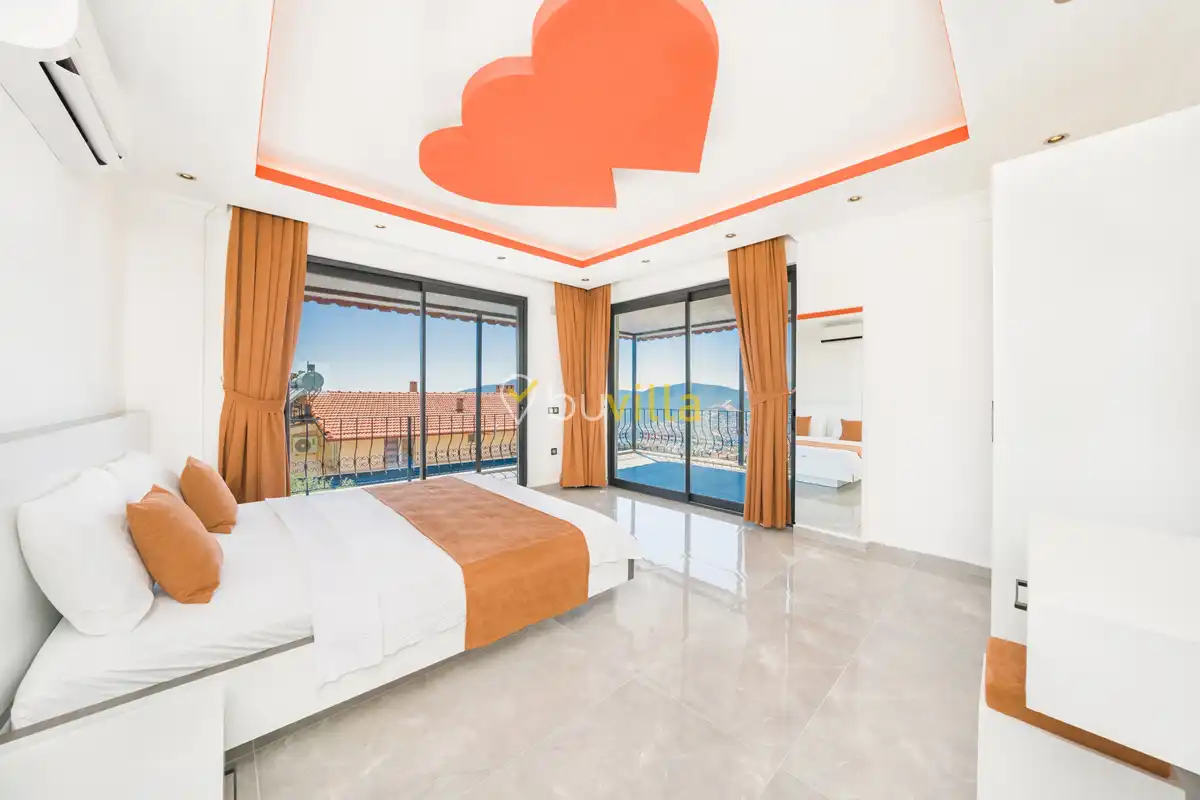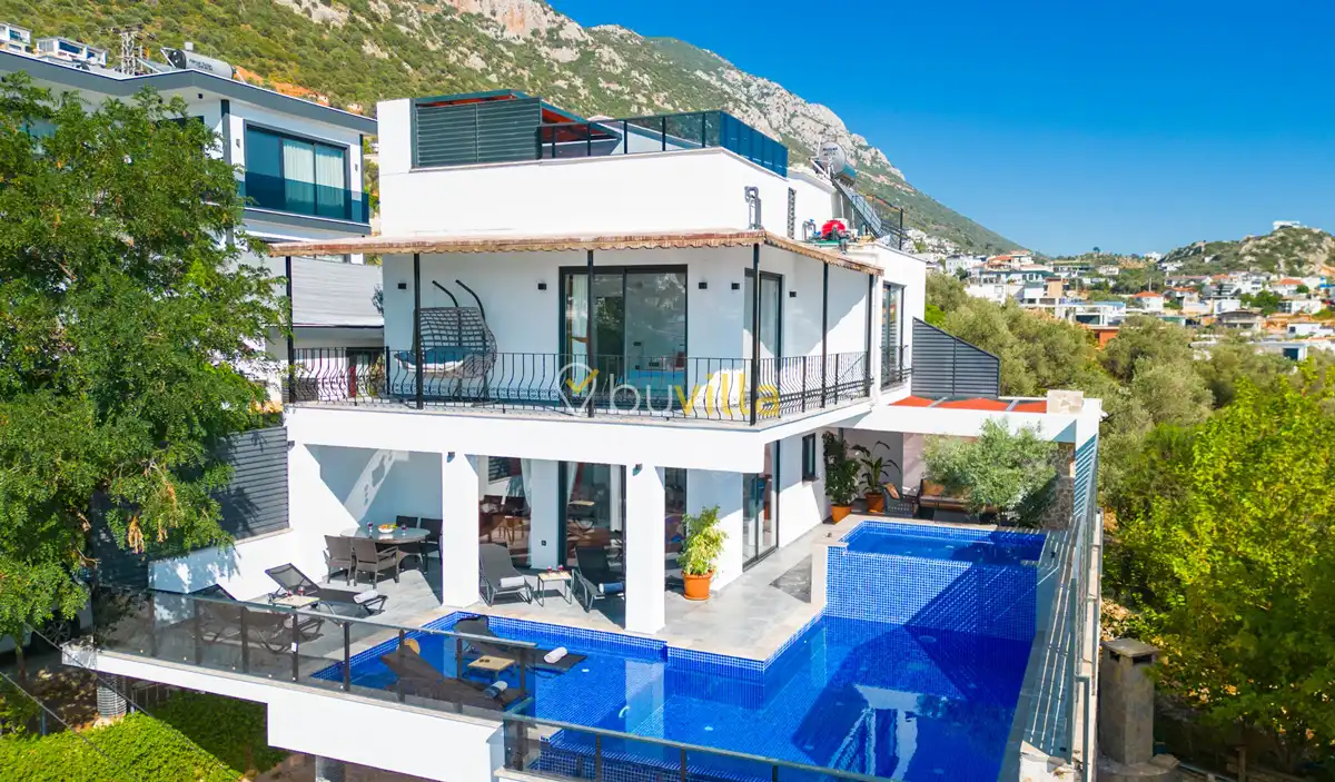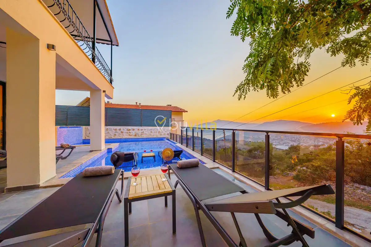 Kalkan Kördere bölgesinde 4 suit yatak odası ile 8 kişiye kadar konaklama kapasitesi sunmaktadır. Konaklama düzeni 2 adet double yatak ve 4 adet single yatak şeklindedir. Tüm yatak odalarında özel banyo ve WC bulunmakta olup, misafirlerimize konforlu ve rahat bir konaklama imkânı sağlamaktadır. Villamız yarı korunaklı yapıya sahiptir; bazı alanlar çevredeki villaların üst katlarından kısmen görülebilmektedir. Özel yüzme havuzunun bulunduğu alanda, jakuzili çocuk havuzu olarak da kullanılabilen ek bir havuz yer almaktadır. Ayrıca villamızın çatı katında, serinlemek amacıyla tasarlanmış küçük boyutlu bir yüzme havuzu da mevcuttur.