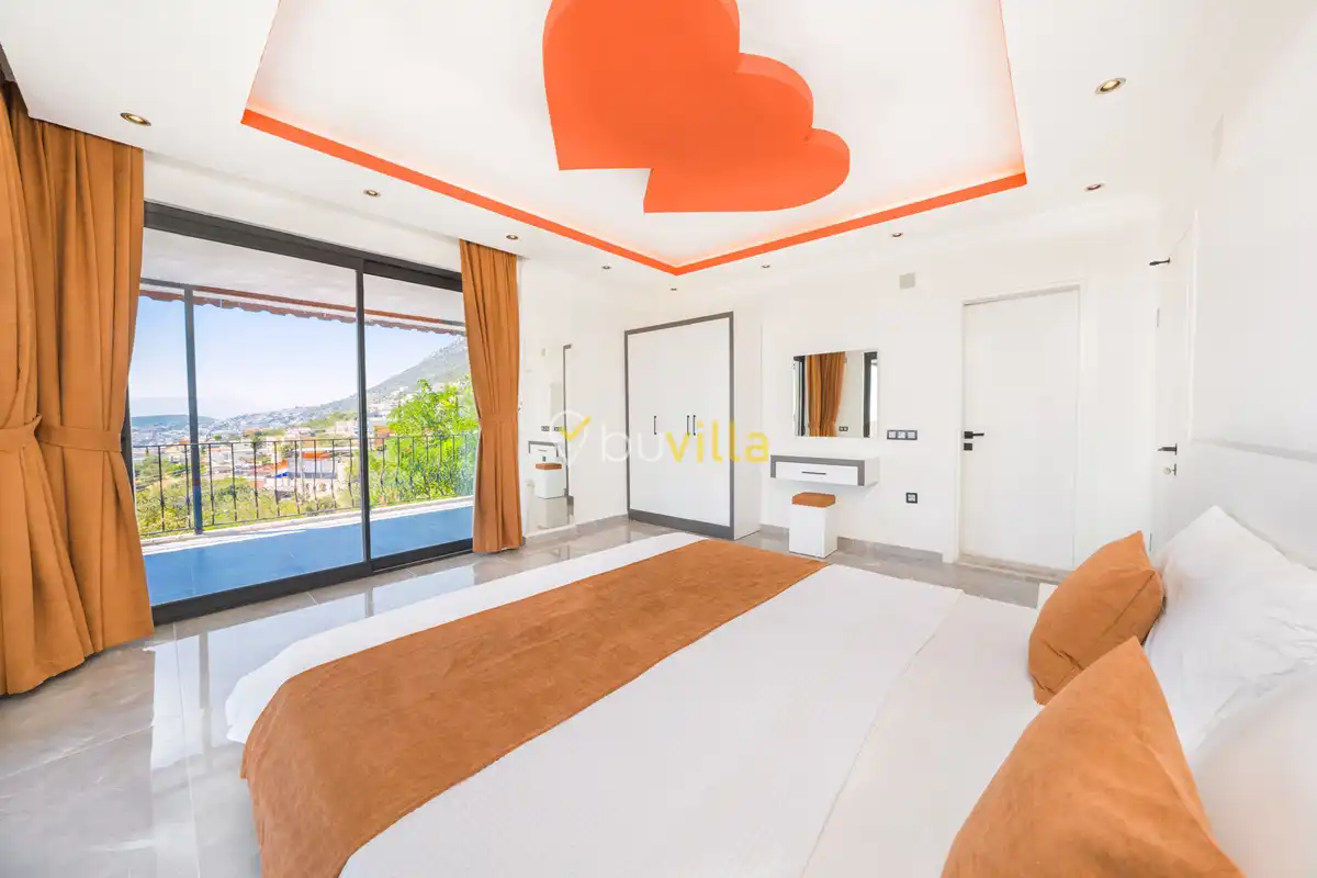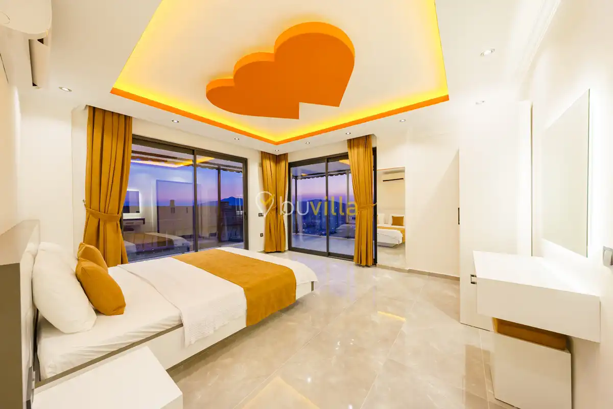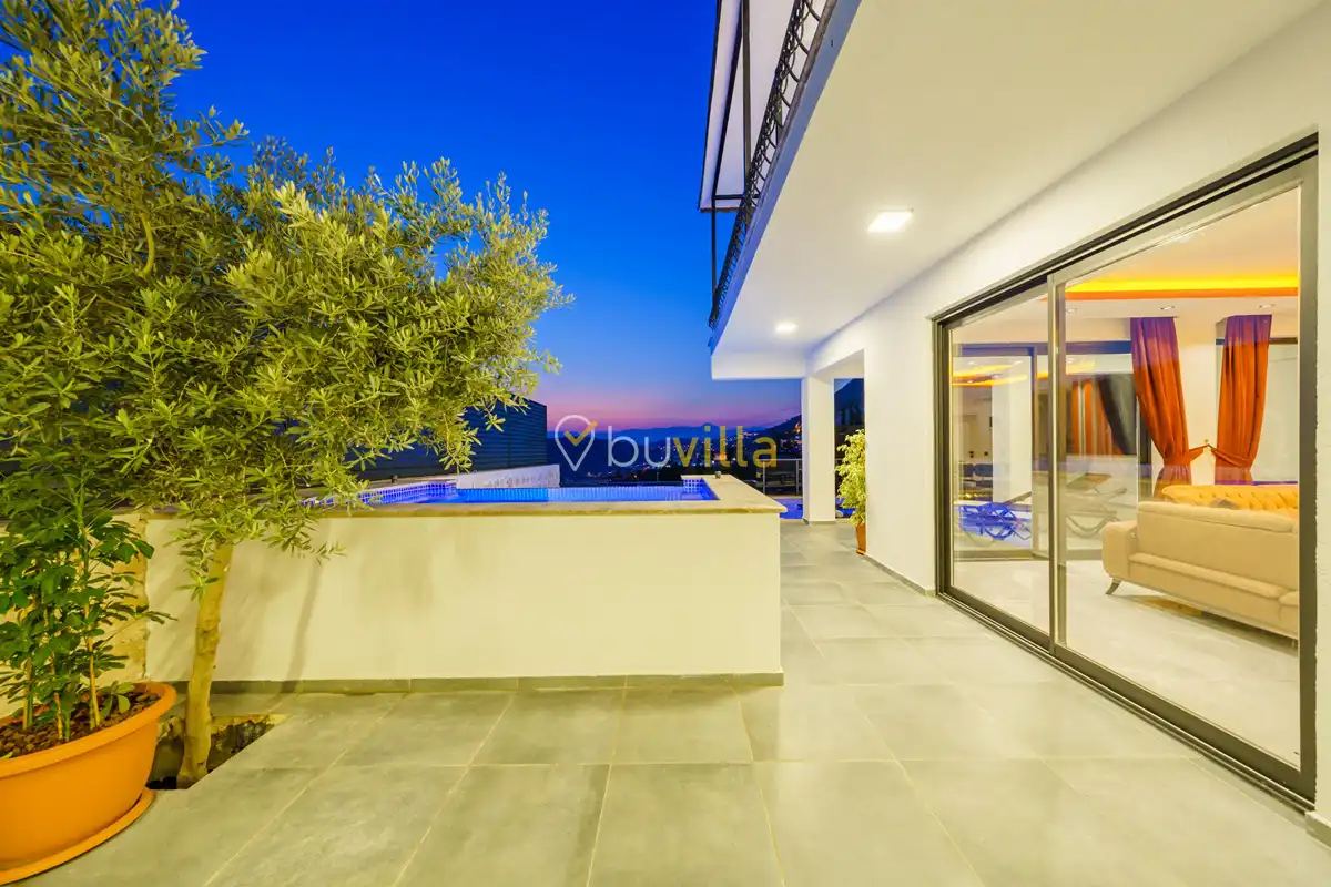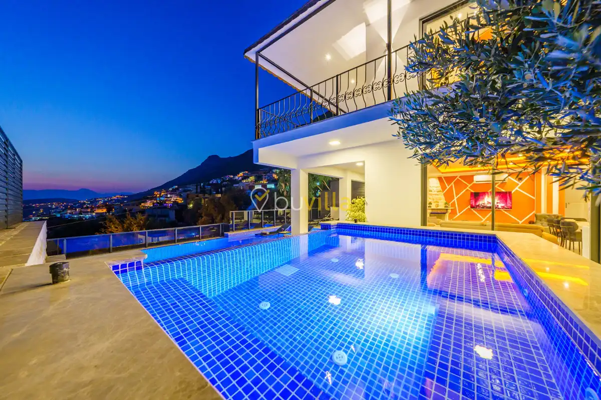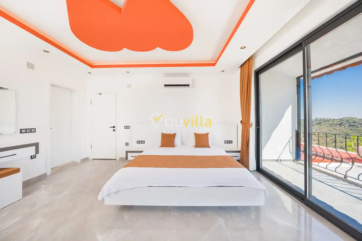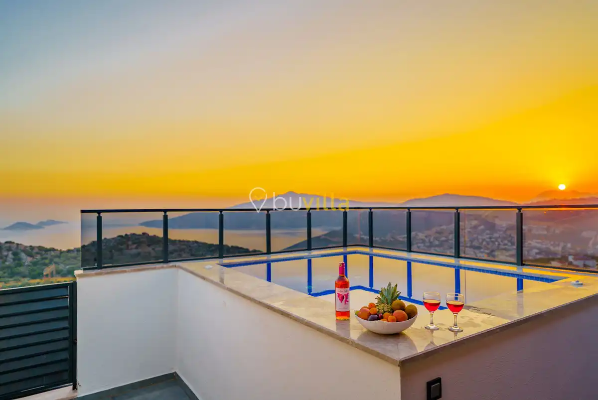 Kalkan Kördere bölgesinde 4 suit yatak odası ile 8 kişiye kadar konaklama kapasitesi sunmaktadır. Konaklama düzeni 2 adet double yatak ve 4 adet single yatak şeklindedir. Tüm yatak odalarında özel banyo ve WC bulunmakta olup, misafirlerimize konforlu ve rahat bir konaklama imkânı sağlamaktadır. Villamız yarı korunaklı yapıya sahiptir; bazı alanlar çevredeki villaların üst katlarından kısmen görülebilmektedir. Özel yüzme havuzunun bulunduğu alanda, jakuzili çocuk havuzu olarak da kullanılabilen ek bir havuz yer almaktadır. Ayrıca villamızın çatı katında, serinlemek amacıyla tasarlanmış küçük boyutlu bir yüzme havuzu da mevcuttur.