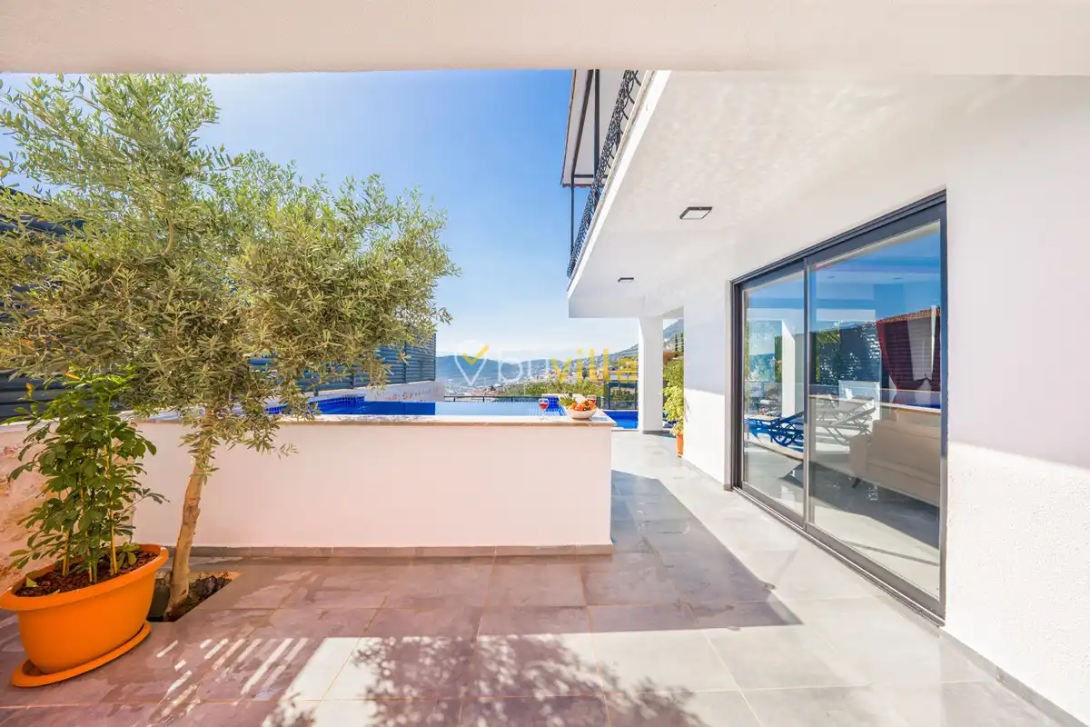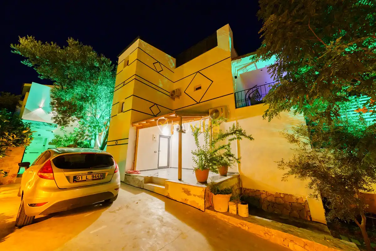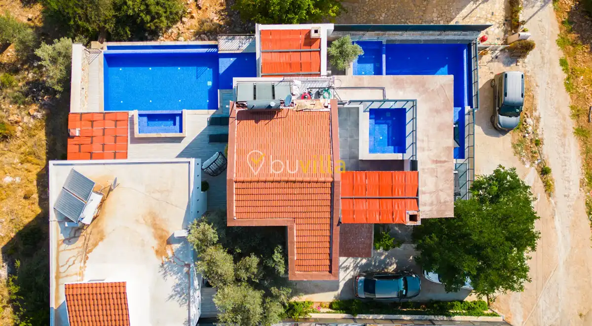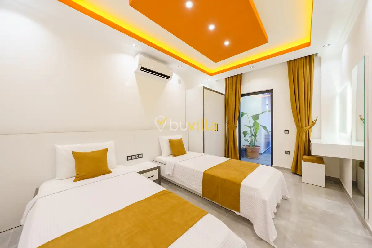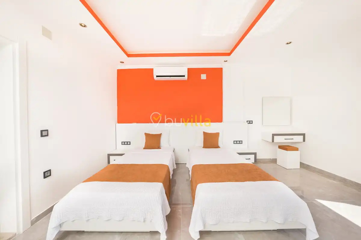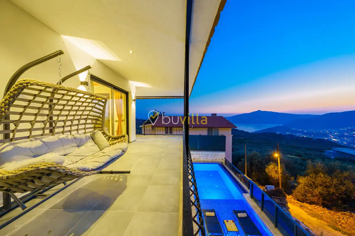 Kalkan Kördere bölgesinde 4 suit yatak odası ile 8 kişiye kadar konaklama kapasitesi sunmaktadır. Konaklama düzeni 2 adet double yatak ve 4 adet single yatak şeklindedir. Tüm yatak odalarında özel banyo ve WC bulunmakta olup, misafirlerimize konforlu ve rahat bir konaklama imkânı sağlamaktadır. Villamız yarı korunaklı yapıya sahiptir; bazı alanlar çevredeki villaların üst katlarından kısmen görülebilmektedir. Özel yüzme havuzunun bulunduğu alanda, jakuzili çocuk havuzu olarak da kullanılabilen ek bir havuz yer almaktadır. Ayrıca villamızın çatı katında, serinlemek amacıyla tasarlanmış küçük boyutlu bir yüzme havuzu da mevcuttur.