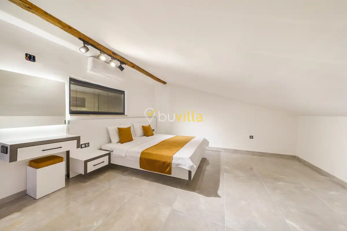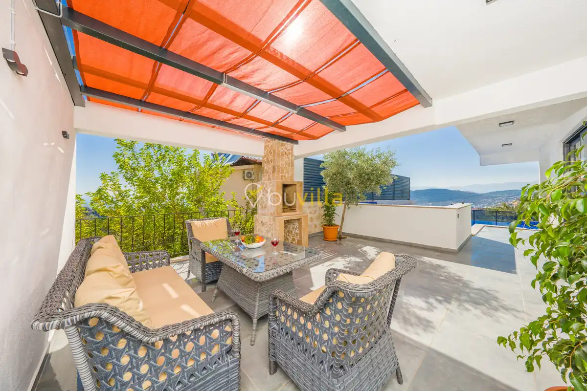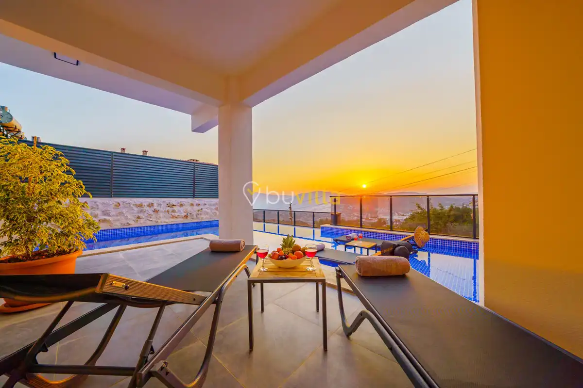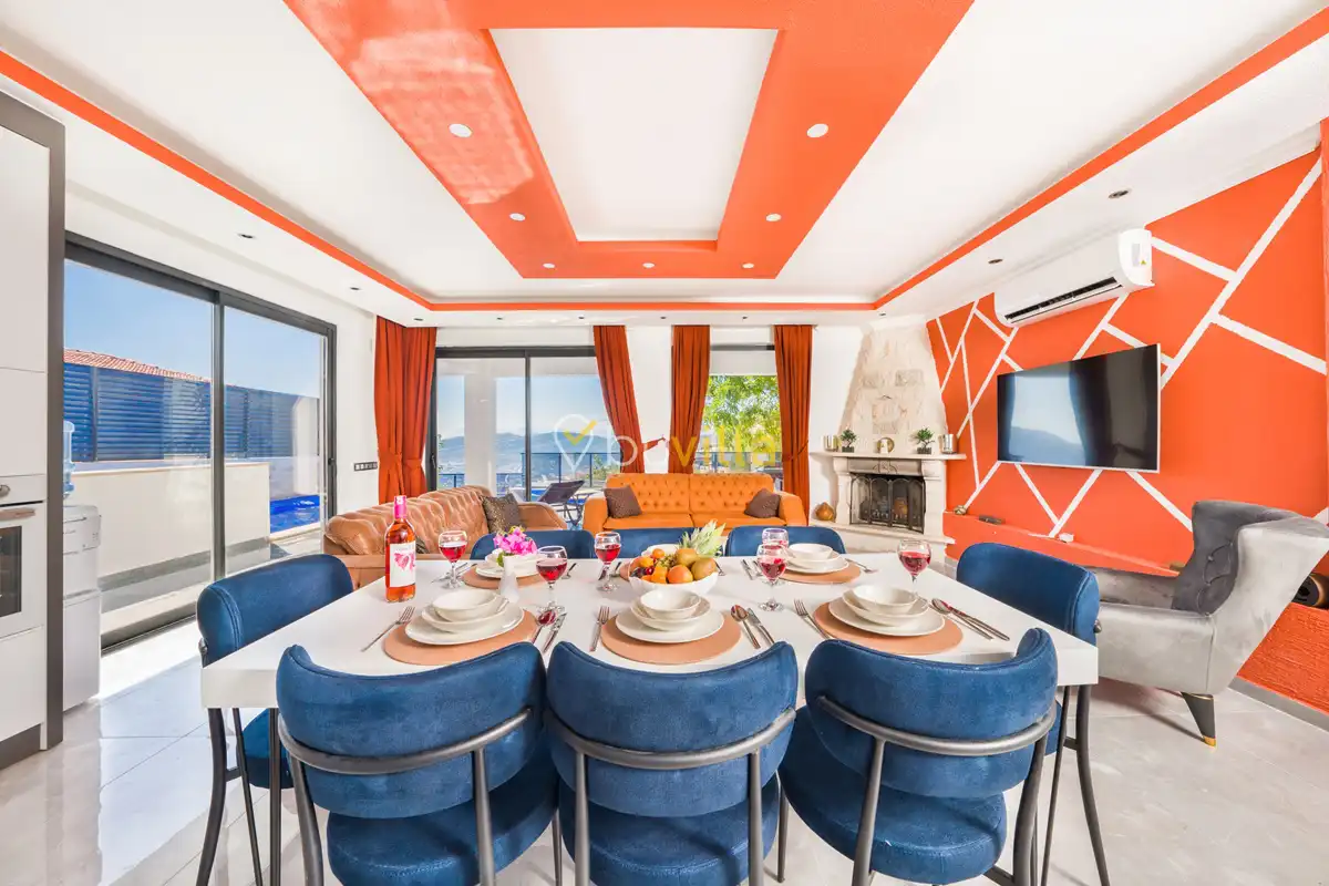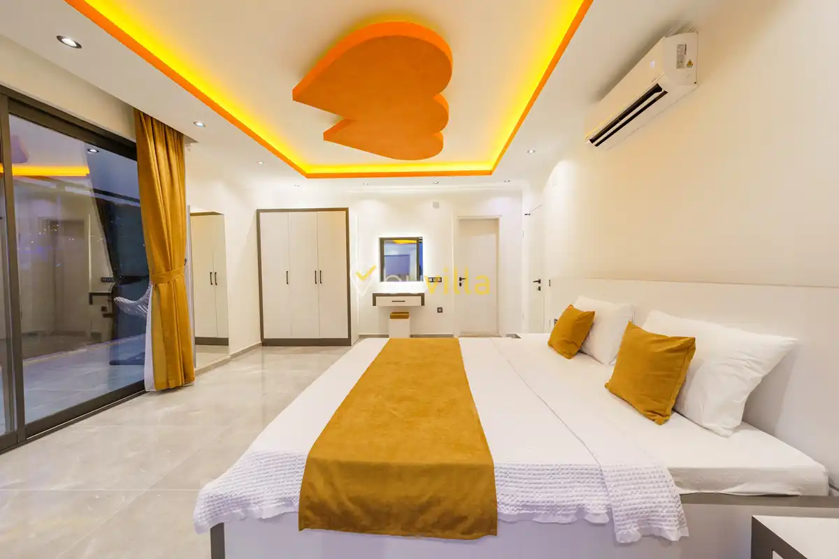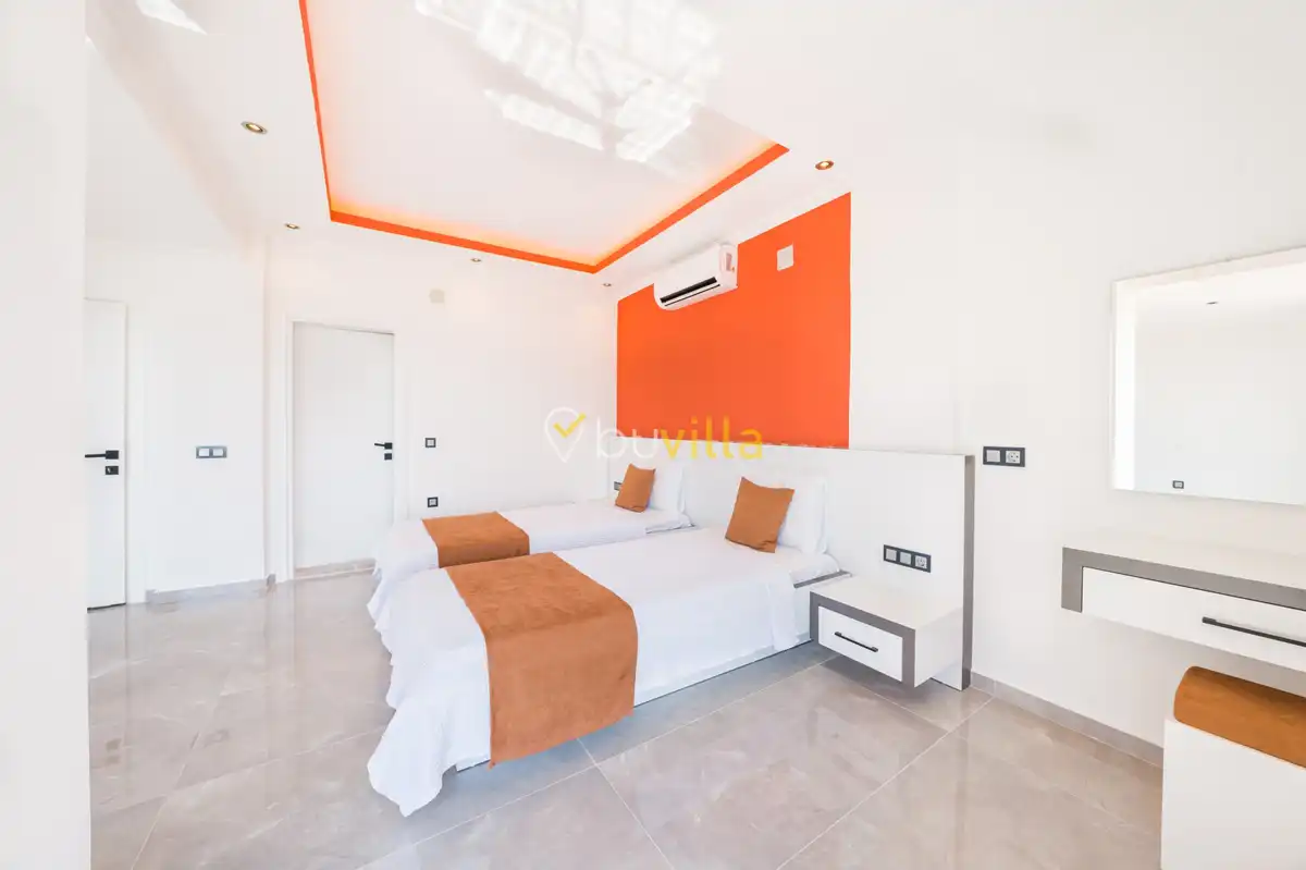 Kalkan Kördere bölgesinde 4 suit yatak odası ile 8 kişiye kadar konaklama kapasitesi sunmaktadır. Konaklama düzeni 2 adet double yatak ve 4 adet single yatak şeklindedir. Tüm yatak odalarında özel banyo ve WC bulunmakta olup, misafirlerimize konforlu ve rahat bir konaklama imkânı sağlamaktadır. Villamız yarı korunaklı yapıya sahiptir; bazı alanlar çevredeki villaların üst katlarından kısmen görülebilmektedir. Özel yüzme havuzunun bulunduğu alanda, jakuzili çocuk havuzu olarak da kullanılabilen ek bir havuz yer almaktadır. Ayrıca villamızın çatı katında, serinlemek amacıyla tasarlanmış küçük boyutlu bir yüzme havuzu da mevcuttur.