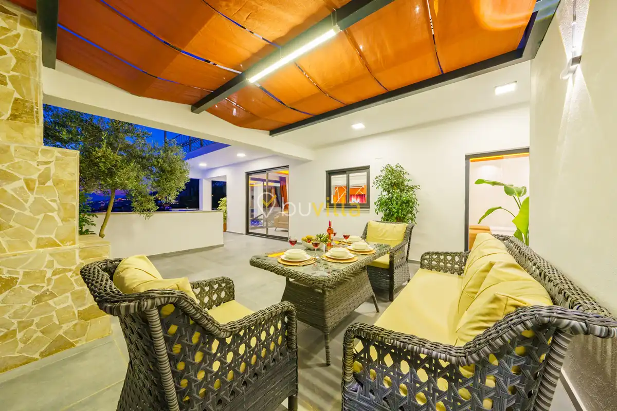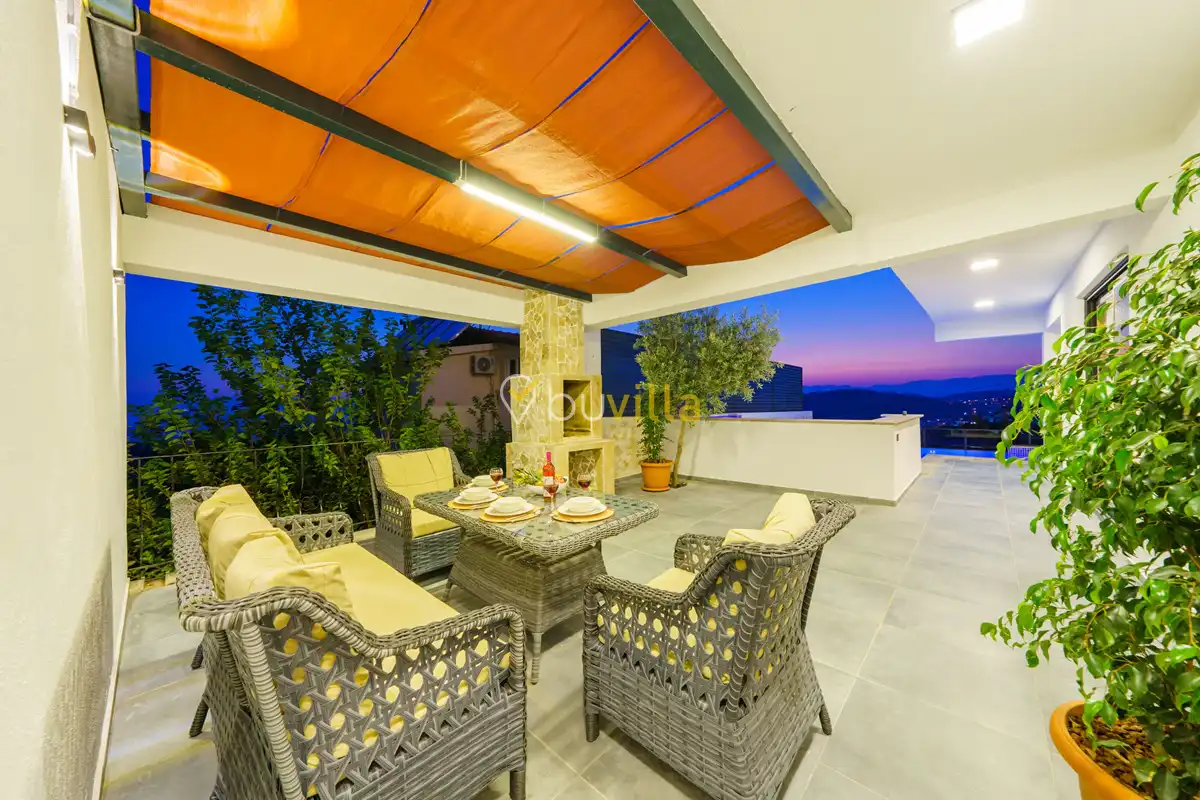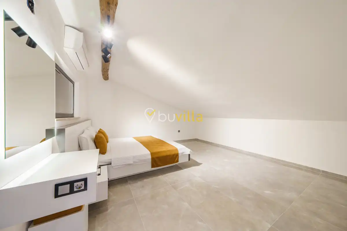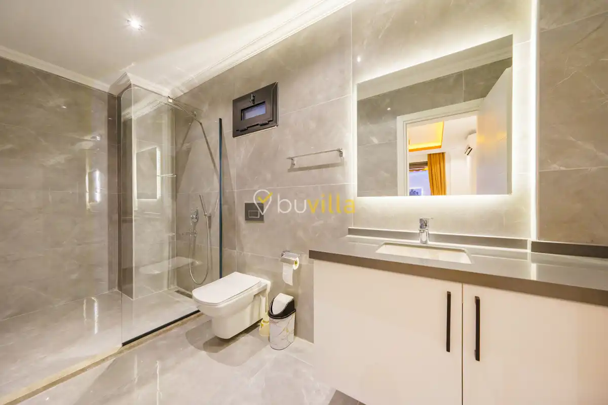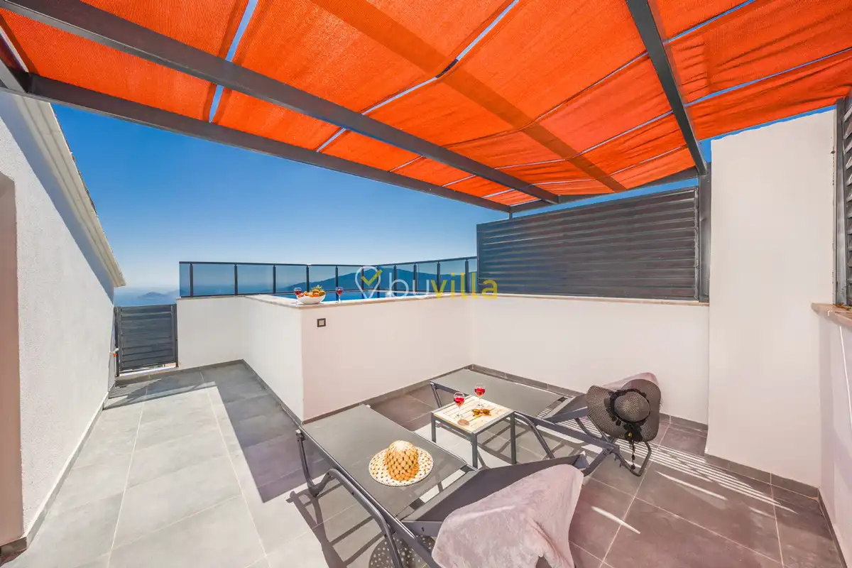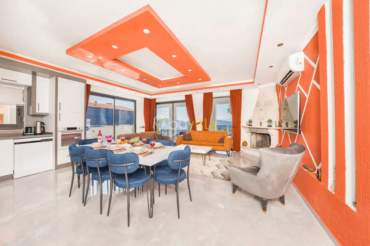 Kalkan Kördere bölgesinde 4 suit yatak odası ile 8 kişiye kadar konaklama kapasitesi sunmaktadır. Konaklama düzeni 2 adet double yatak ve 4 adet single yatak şeklindedir. Tüm yatak odalarında özel banyo ve WC bulunmakta olup, misafirlerimize konforlu ve rahat bir konaklama imkânı sağlamaktadır. Villamız yarı korunaklı yapıya sahiptir; bazı alanlar çevredeki villaların üst katlarından kısmen görülebilmektedir. Özel yüzme havuzunun bulunduğu alanda, jakuzili çocuk havuzu olarak da kullanılabilen ek bir havuz yer almaktadır. Ayrıca villamızın çatı katında, serinlemek amacıyla tasarlanmış küçük boyutlu bir yüzme havuzu da mevcuttur.