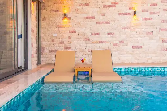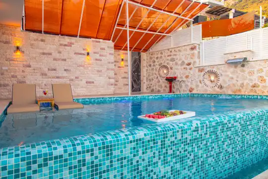 Kalkan Akbel mevkiinde bulunan 2 yatak odali 4 kisi kapasitesindedir. Kiralik villa büyüleyici deniz ve doga manzarasina sahip olan odalariyla aksamlari sevdiklerinizle birlikte unutulmaz anlar yasayabilirsiniz. Muhafazakâr kiralik villanin havuzu korunakli olup disaridan görünmemektedir. Çekirdek aileler ve balayi çiftleri için kusursuz ve unutulmaz bir tatil geçirmeniz için kiralik Villa Köln sizleri agirlamayi beklemektedir
