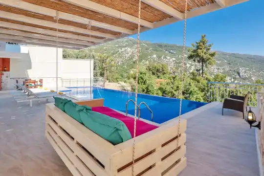 Muhafazakâr Villa Kiralık Villa Kösem Kalkan İslamlar bölgesinde 3 yatak odali 6 kişi kapasitesindedir.Geniş bahçe alanına sahip olan villamiz doğa içerisin de gözlerden uzak sizlere muhteşem tatil firsatı sunmaktadır. Etrafı korunaklı olan villamız muhafazakar tatil yapmak isteyen misafirlerimiz için uygun bir seçenektir. Kiralik villamızda ihtiyaç duyabileceğniz tüm ekipmanlar bulunmakta olup aile ve arkadaş grubunuz ile keyifli tatil firsatını yakalayabilirsiniz. Not : Çocuk Havuzu Derinlik : 30 cm Uzunluk : 2 m Genislik : 2 m