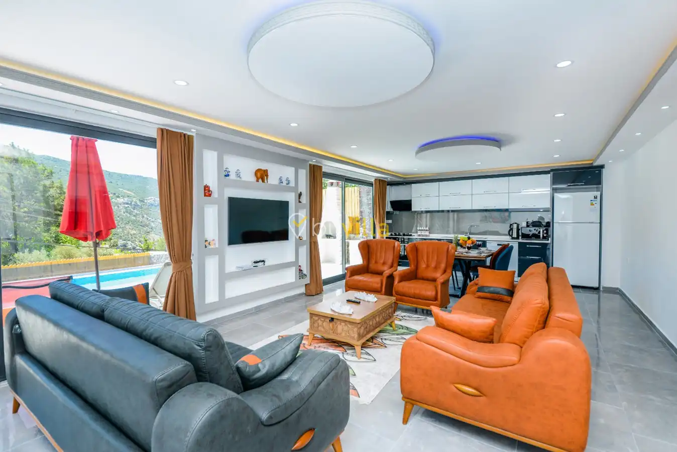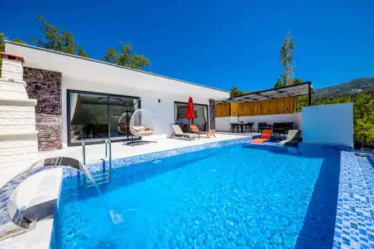 Villa Kumru, Antalya’nın Kalkan ilçesine bağlı İslamlar bölgesinde yer alan, doğa ile iç içe, muhafazakar aileler ve balayı çiftleri için uygun bir tatil villasıdır. Toplamda 2 yatak odasına sahip olup, 4 kişiye kadar konaklama imkanı sunmaktadır. Modern ve konforlu bir iç tasarıma sahip olan villa, özel havuzu ve jakuzisi ile dikkat çekmektedir. Villa, Kalkan merkeze yaklaşık 9 km, en yakın markete 2 km ve plaja 10 km mesafededir. Doğa ile iç içe, sakin ve huzurlu bir tatil geçirmek isteyen misafirler için ideal bir seçenektir. Ayrıca, havuz ısıtma sistemi mevcuttur ve talep edilmesi durumunda ek bir ücret karşılığında kullanılabilir.