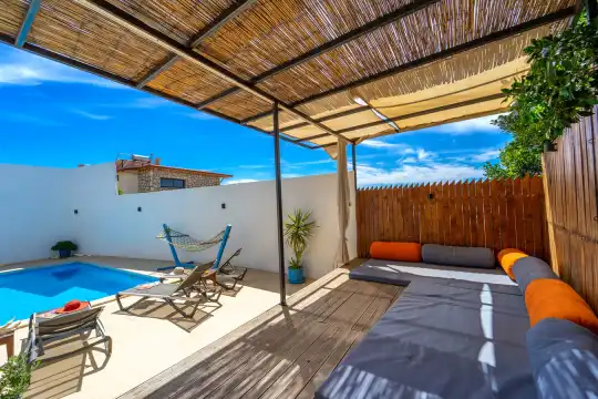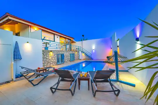 Muhafazakâr Kiralik Villa Kiralik Villa Kutay Patara , Kalkan Patara mevkiinde 2 yatak odali 4 kisi kapasitesindedir. Kiralik villamiz muhafazakâr ailelerin ve balayi çiftelerimizin tercihleri arasindadir. Havuzu korunakli olup, Sauna , Hamam ve kapali havuzu bulunmaktadir . Her kösesinde birbirinden güzel doga manzaralarinin tadini çikaracaginiz çok huzurlu bir atmosfer barindirmaktadir. Kiralik Villa Kutay Patara siz degerli misafirlerini agirlamayi beklemektedir. Not: Kapali havuz isitmasi talep edildigi taktirde günlük ekstra 1000 TL karsiligi aktif hale getirilmektedir.