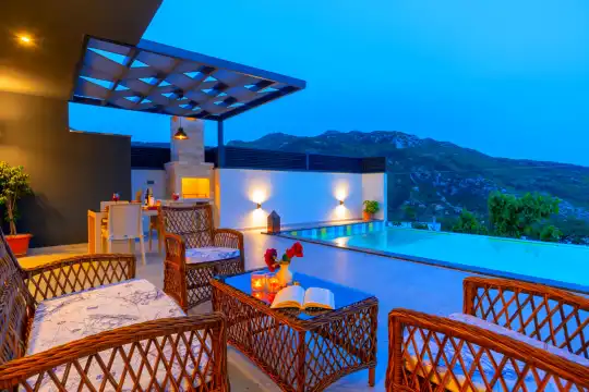Muhafazakâr Lüks Villa Kiralik Villa Kuzey , Kalkan Islamlar mevkiinde 2 yatak odali 4 kisi kapasitesindedir. Doga ile iç içe olan villamiz, yesillikler içerisinde sizlere muhtesem tatil firsati sunmaktadir. Etrafi korunakli hale getirilen villamiz muhafazakâr aile ve balayi çiftlerine uygun dizayn edilmistir. Oyun odasi ve genis bahçe terasinda keyifli vakit geçirebileceginiz villamizda çocuk havuzu bulunmaktadir. Ihtiyaç duyabileceginiz tüm detaylar düsünülmüs olan villamiz unutulmaz bir tatil için misafirlerini agirlamayi beklemektedir.
