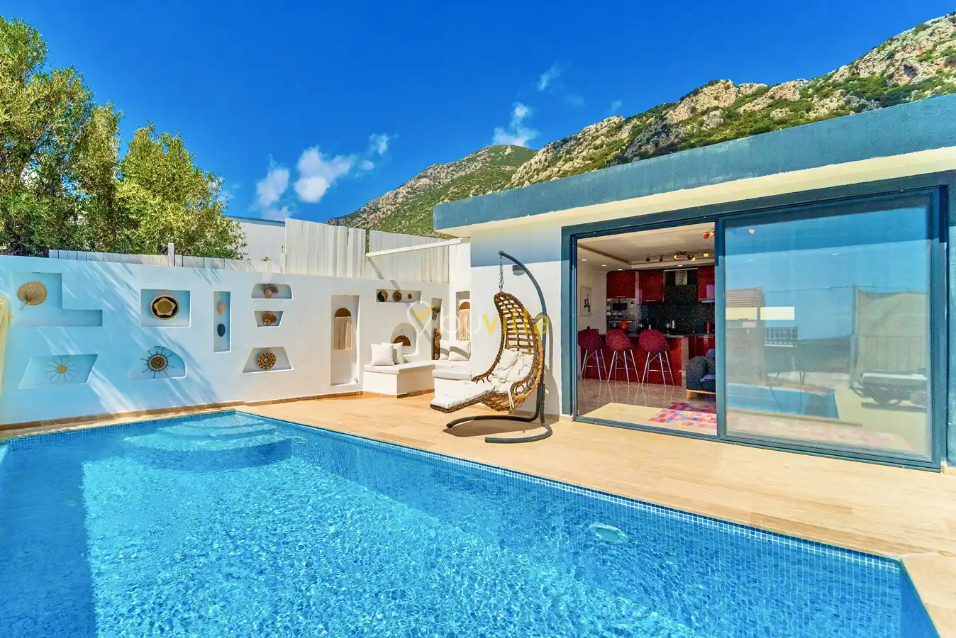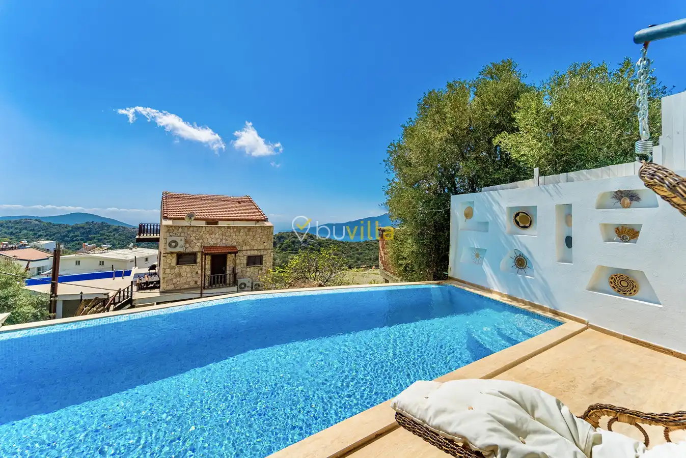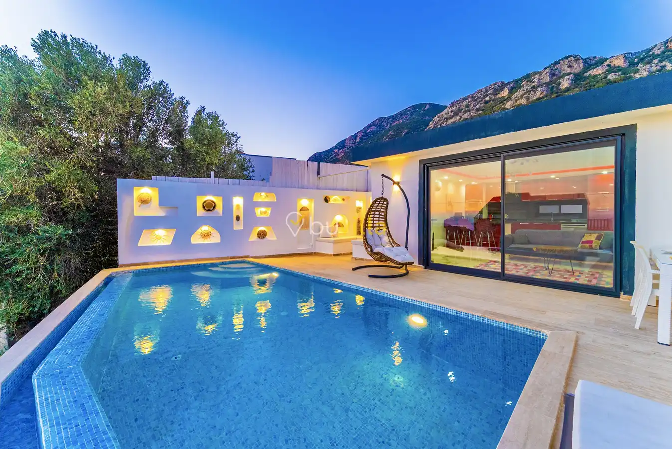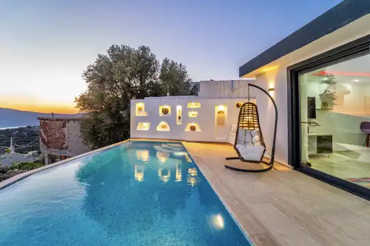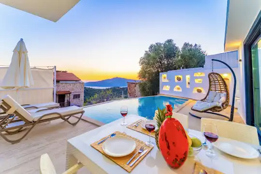 Muhafazakar Villa Kiralik Villa Ladybird , Kalkan Kördere mevkiinde yer almaktadir. 2 kisilik balayi villamiz deniz manzarali olup muhafazakar villa seçenekleri arasinda yer almaktadir. Özel dizayn edilmis villamiz balayi çiftleri için ideal seçenektir. Amerikan mutfaginda ihtiyaç duyabileceginiz tüm ekipmanlar yer almakta olup konforlu mobilyalarla dizayn edilmis salonu hizmetinizdedir.
