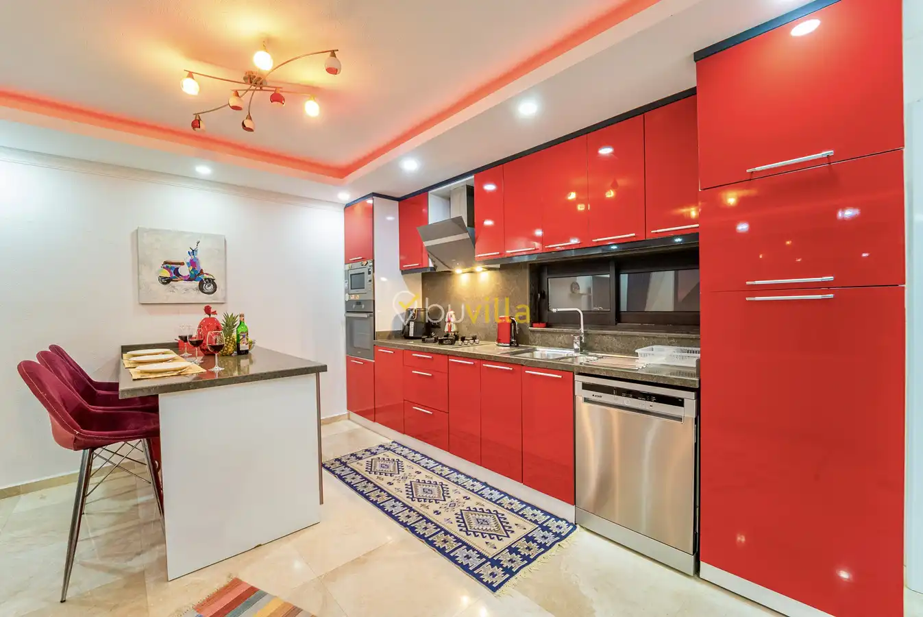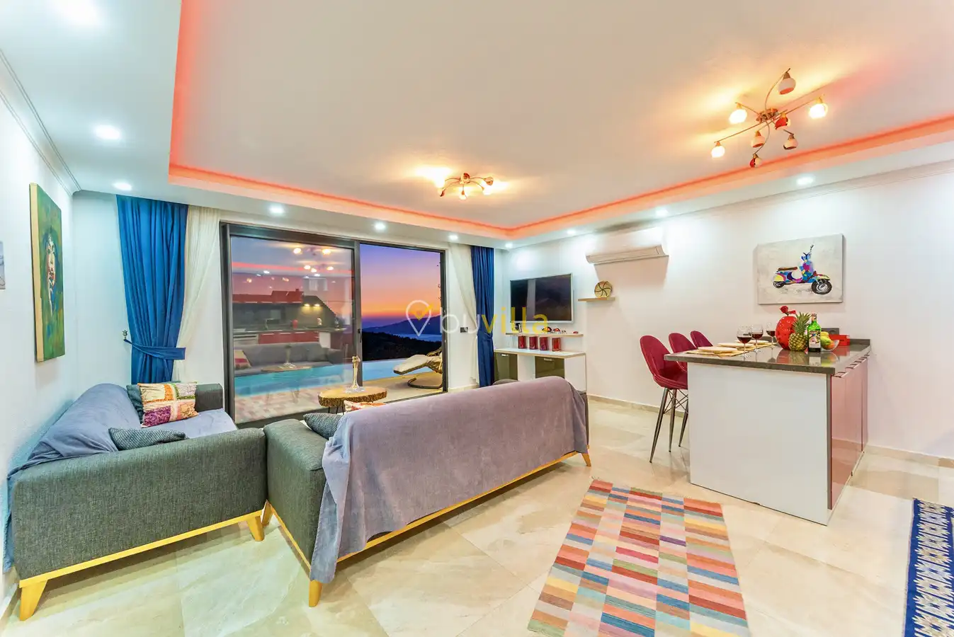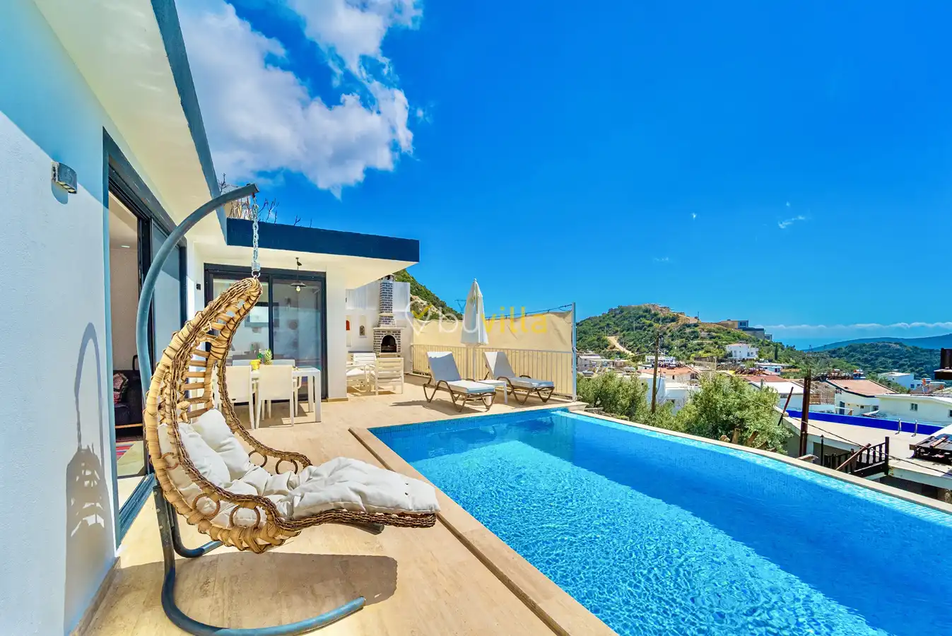 Muhafazakar Villa Kiralik Villa Ladybird , Kalkan Kördere mevkiinde yer almaktadir. 2 kisilik balayi villamiz deniz manzarali olup muhafazakar villa seçenekleri arasinda yer almaktadir. Özel dizayn edilmis villamiz balayi çiftleri için ideal seçenektir. Amerikan mutfaginda ihtiyaç duyabileceginiz tüm ekipmanlar yer almakta olup konforlu mobilyalarla dizayn edilmis salonu hizmetinizdedir.