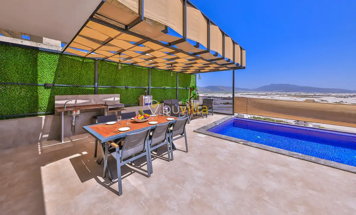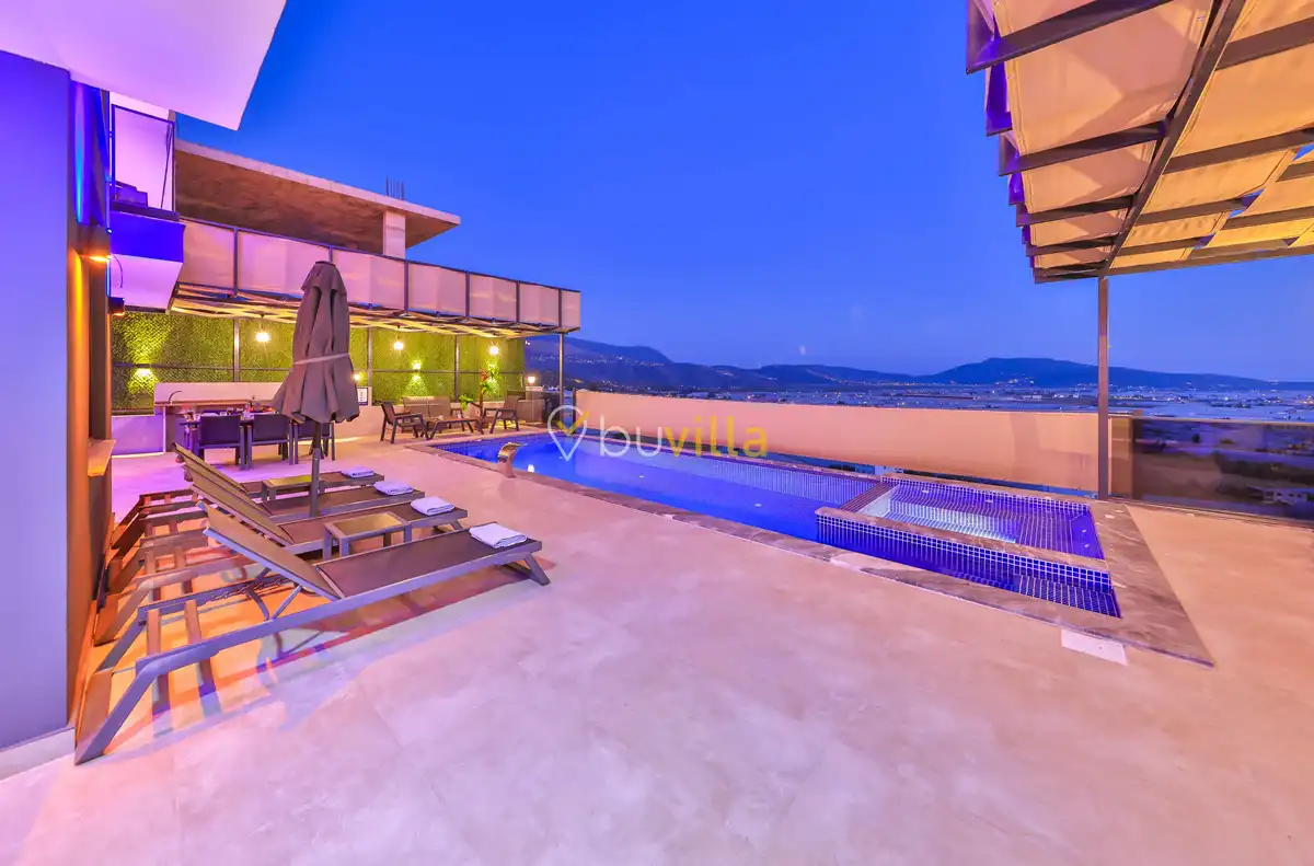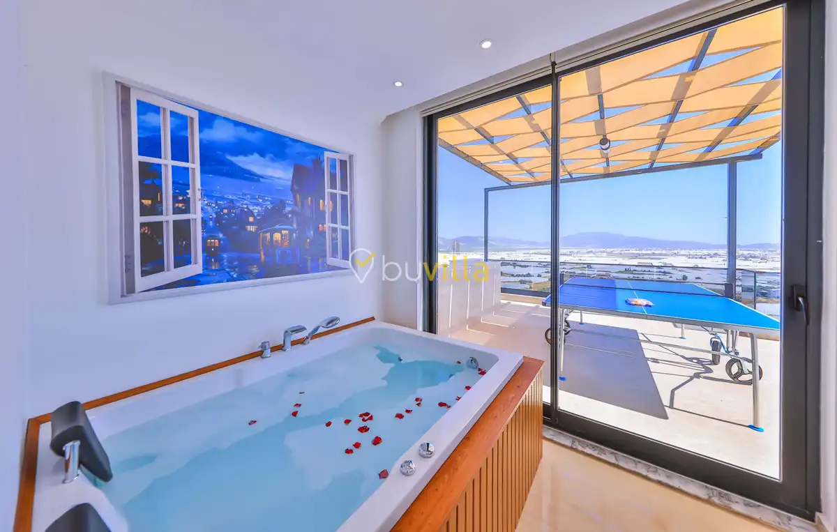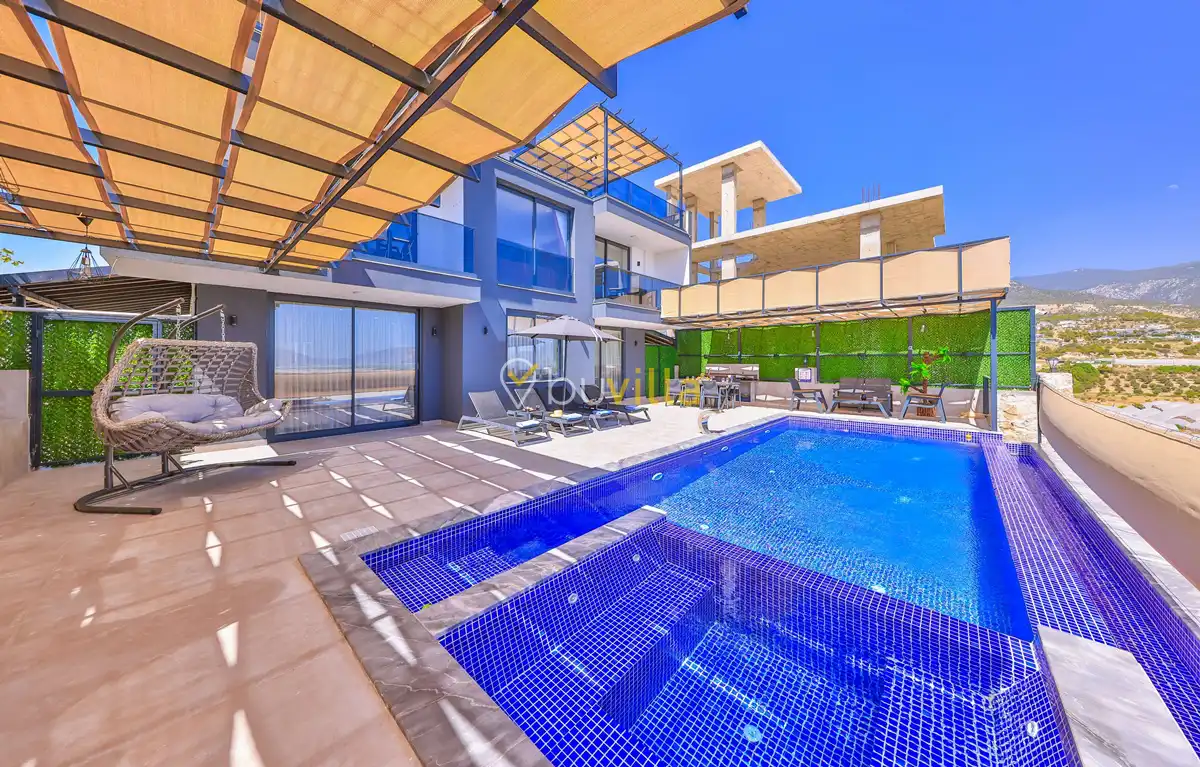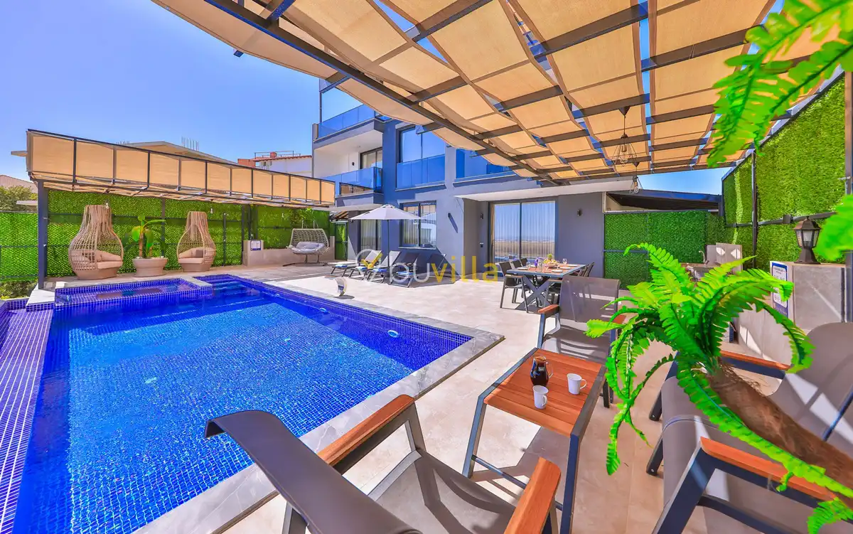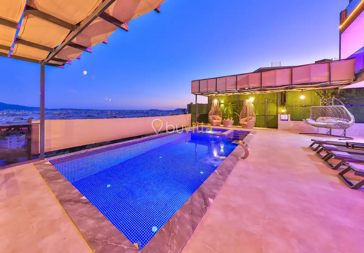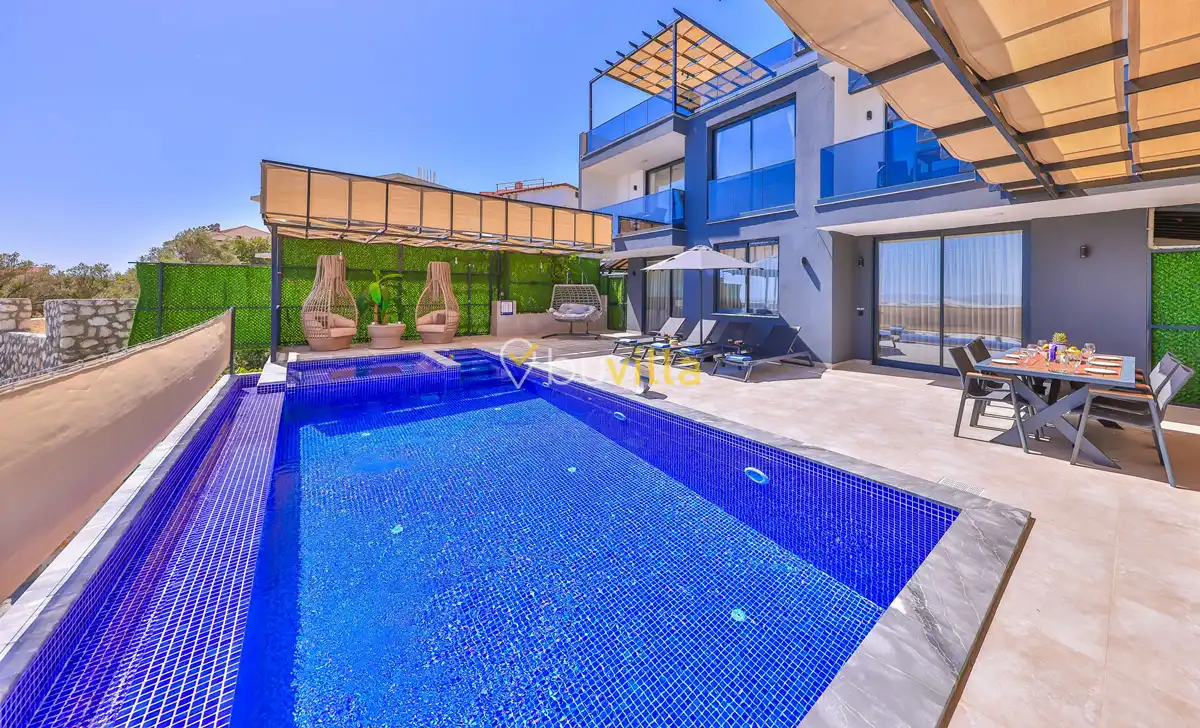 Modern dizayn edilmiş 3 yatak odasına ve 5 banyoya sahip olan triplex villamız, geniş ailelere uygun şekilde her ince ayrıntısı düşünülerek tasarlanmıştır. Villamızın 3. katında sauna ve jakuzi bulunmaktadır. Korunaklı havuz alanı ve geniş bahçe terasında akşamları keyifli vakit geçirebilmeniz için langırt ve masa tenisi yer almaktadır.