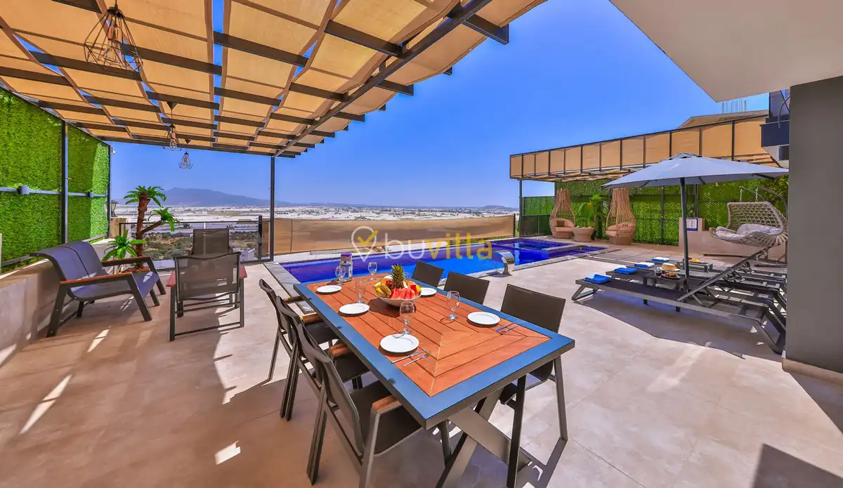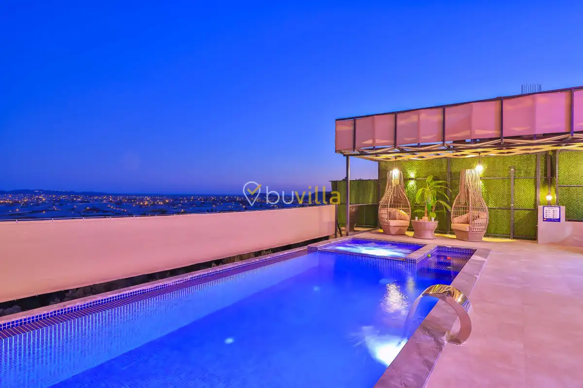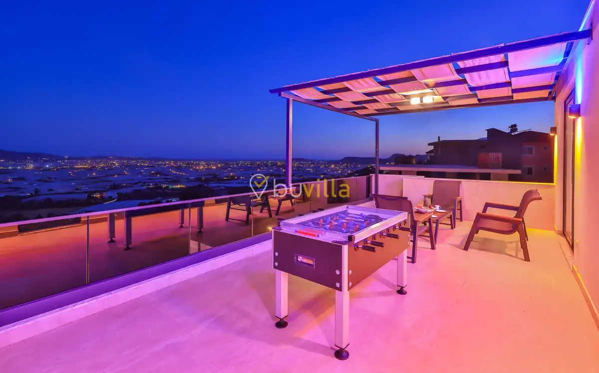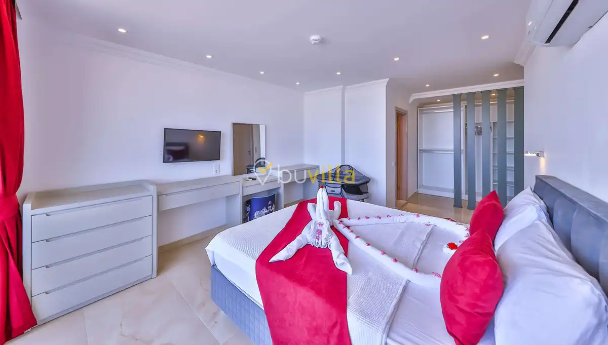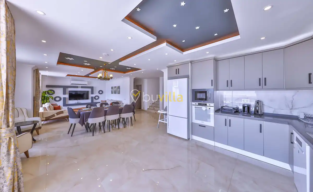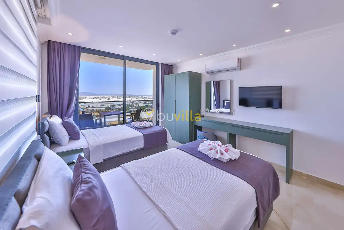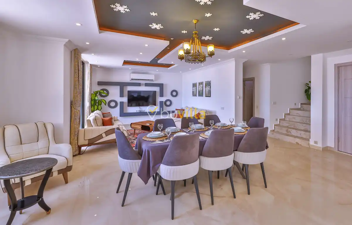 Modern dizayn edilmiş 3 yatak odasına ve 5 banyoya sahip olan triplex villamız, geniş ailelere uygun şekilde her ince ayrıntısı düşünülerek tasarlanmıştır. Villamızın 3. katında sauna ve jakuzi bulunmaktadır. Korunaklı havuz alanı ve geniş bahçe terasında akşamları keyifli vakit geçirebilmeniz için langırt ve masa tenisi yer almaktadır.