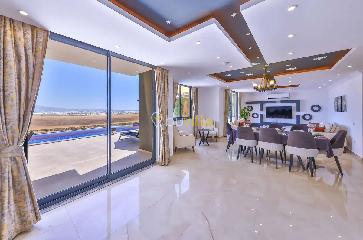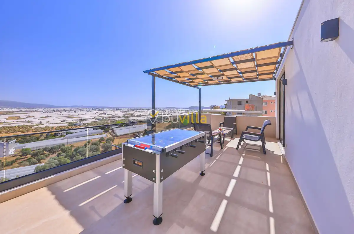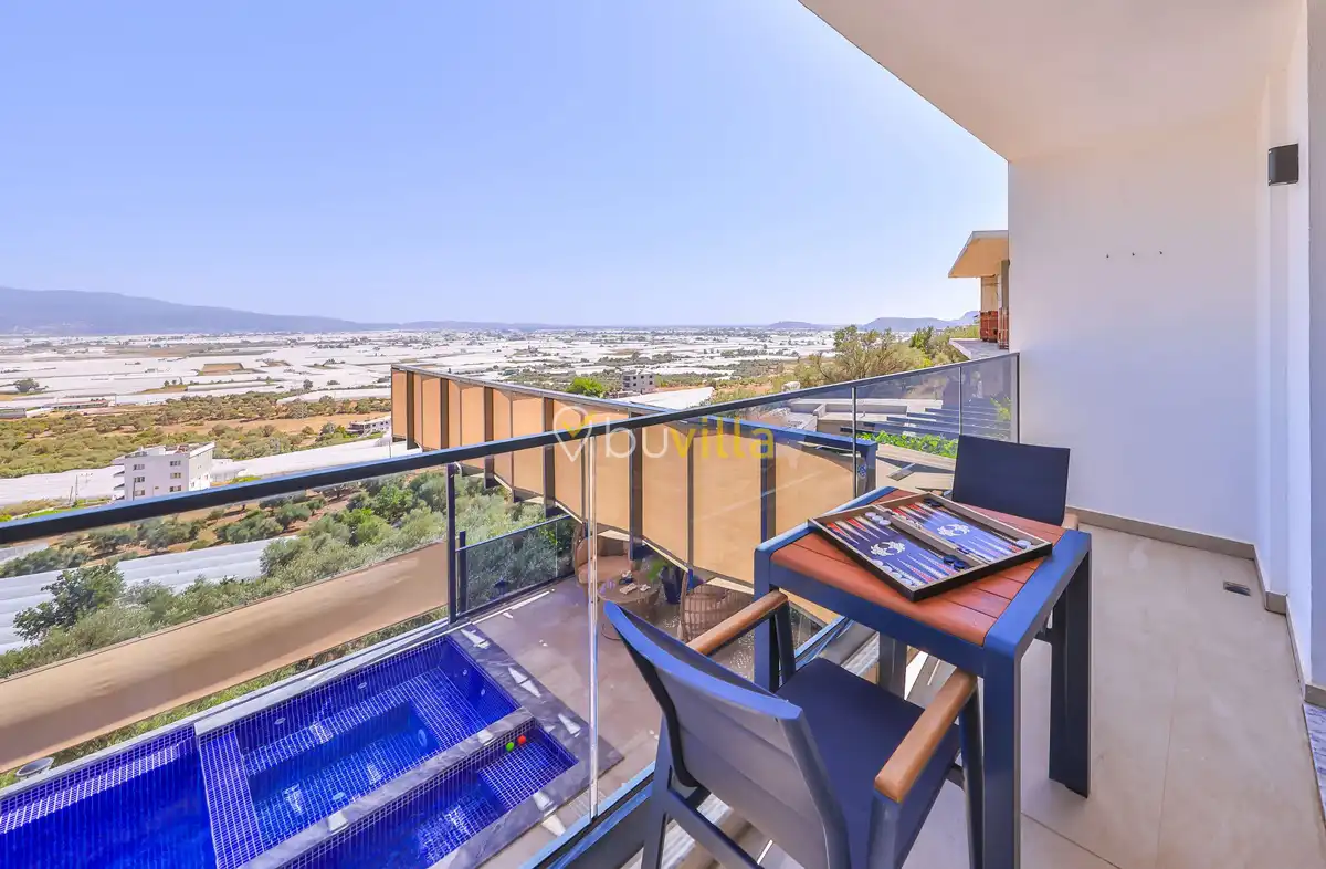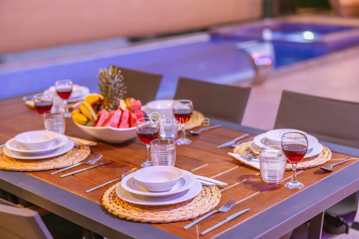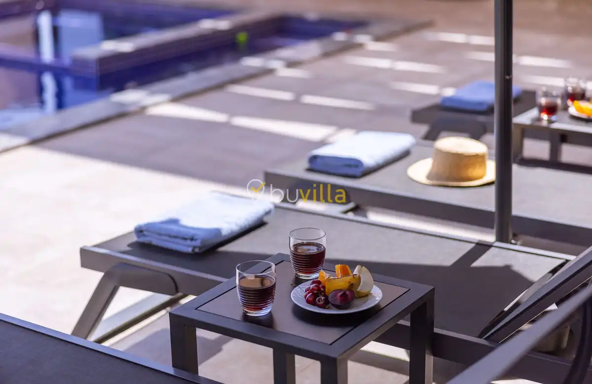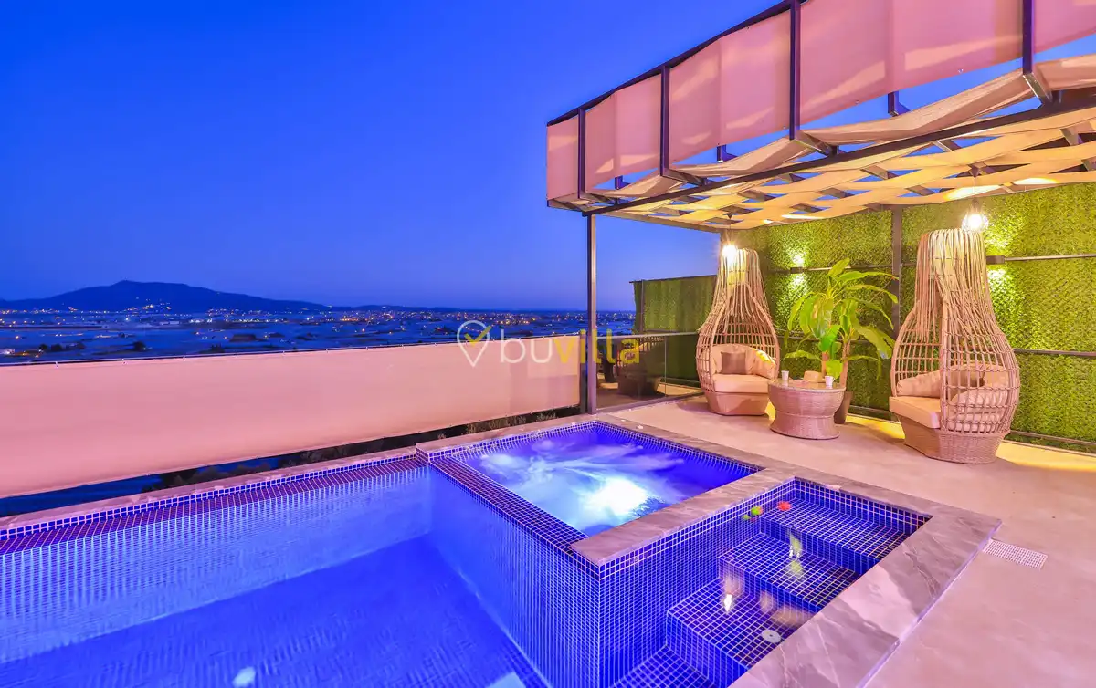 Modern dizayn edilmiş 3 yatak odasına ve 5 banyoya sahip olan triplex villamız, geniş ailelere uygun şekilde her ince ayrıntısı düşünülerek tasarlanmıştır. Villamızın 3. katında sauna ve jakuzi bulunmaktadır. Korunaklı havuz alanı ve geniş bahçe terasında akşamları keyifli vakit geçirebilmeniz için langırt ve masa tenisi yer almaktadır.