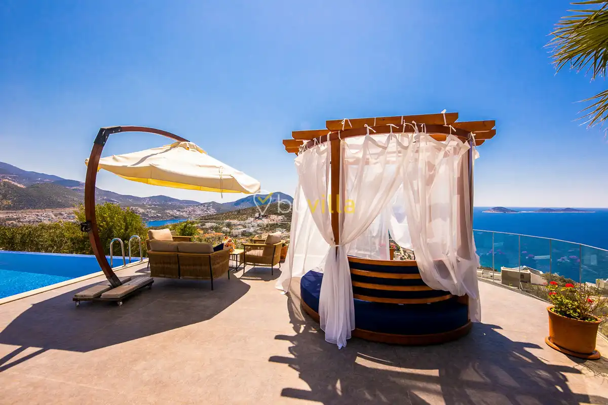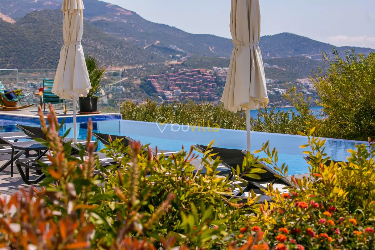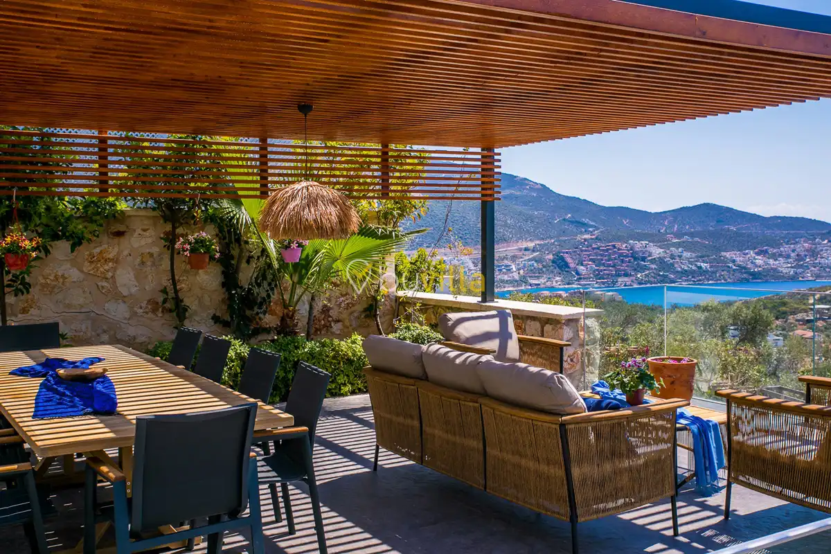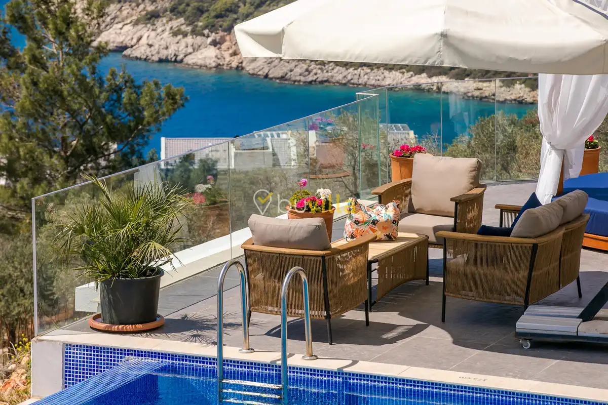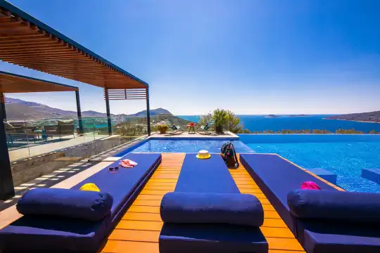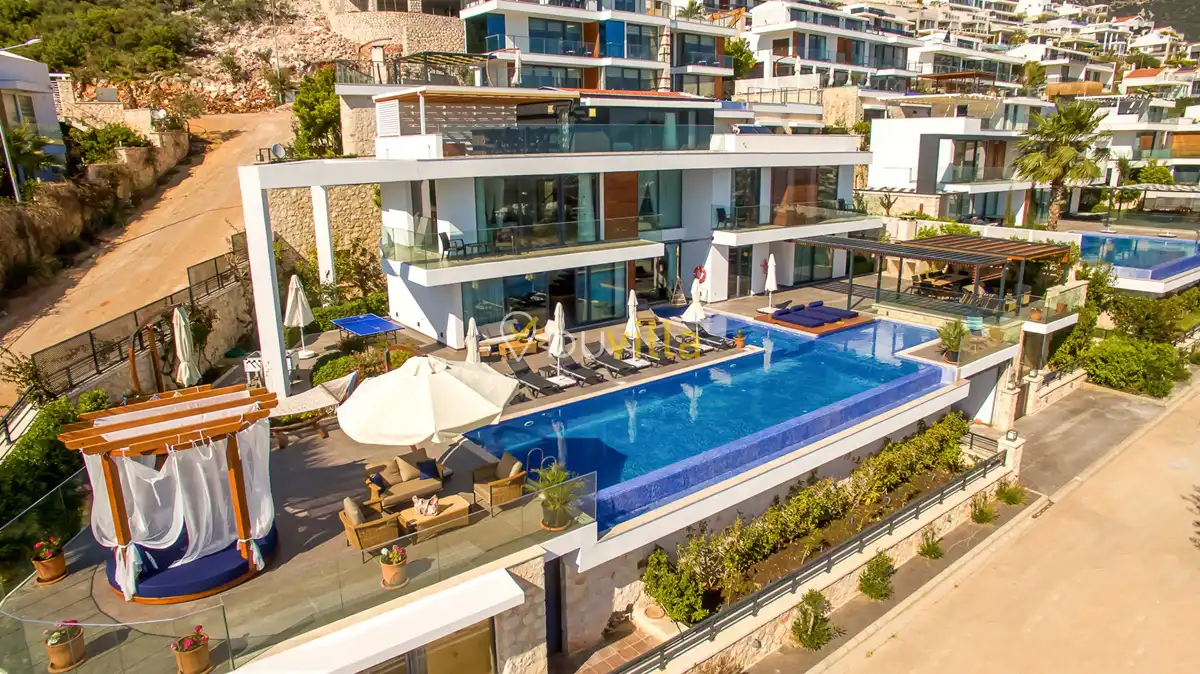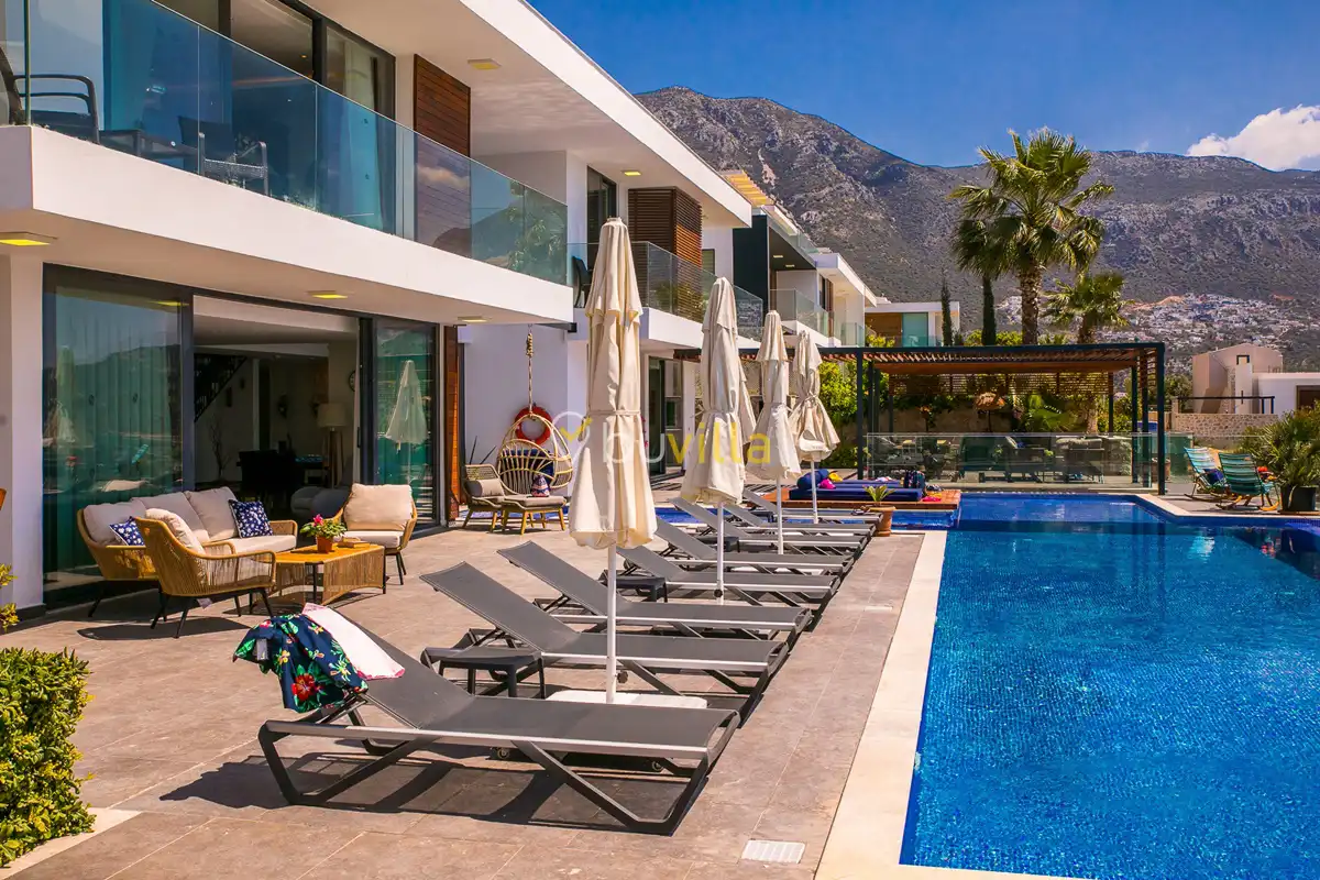 Deniz Manzarali Lüks Villa Kiralik Villa Lapis , Kalkan Kalamar mevkinde bulunan 4 yatak odali 8 kisi kapasiteli lüks bir villadir. Kiralik villamizin tüm yatak odalarinda kendilerine ait tuvalet ve banyo mevcut olup ebeveyn yatak odasinin bir tanesinde hos bir jakuzi sizleri beklemektedir. Lüks dizayni ile göz dolduran villamizin tam donanimli Amerikan mutfaginda ihtiyaç duyabileceginiz tüm ekipmanlar mevcuttur. Havuz bahçe katindan panoramik deniz manzarasina sahip villamizin büyük bir özel yüzme havuzu bulunmaktadir. Villamizda keyifli vakit geçirmek için langirt , masa tenisi bulunmaktadir. Sevdikleriniz ile gözlerden uzak huzurlu vakitler geçirmek için sizleri Villa Lapis ’ e bekliyoruz.