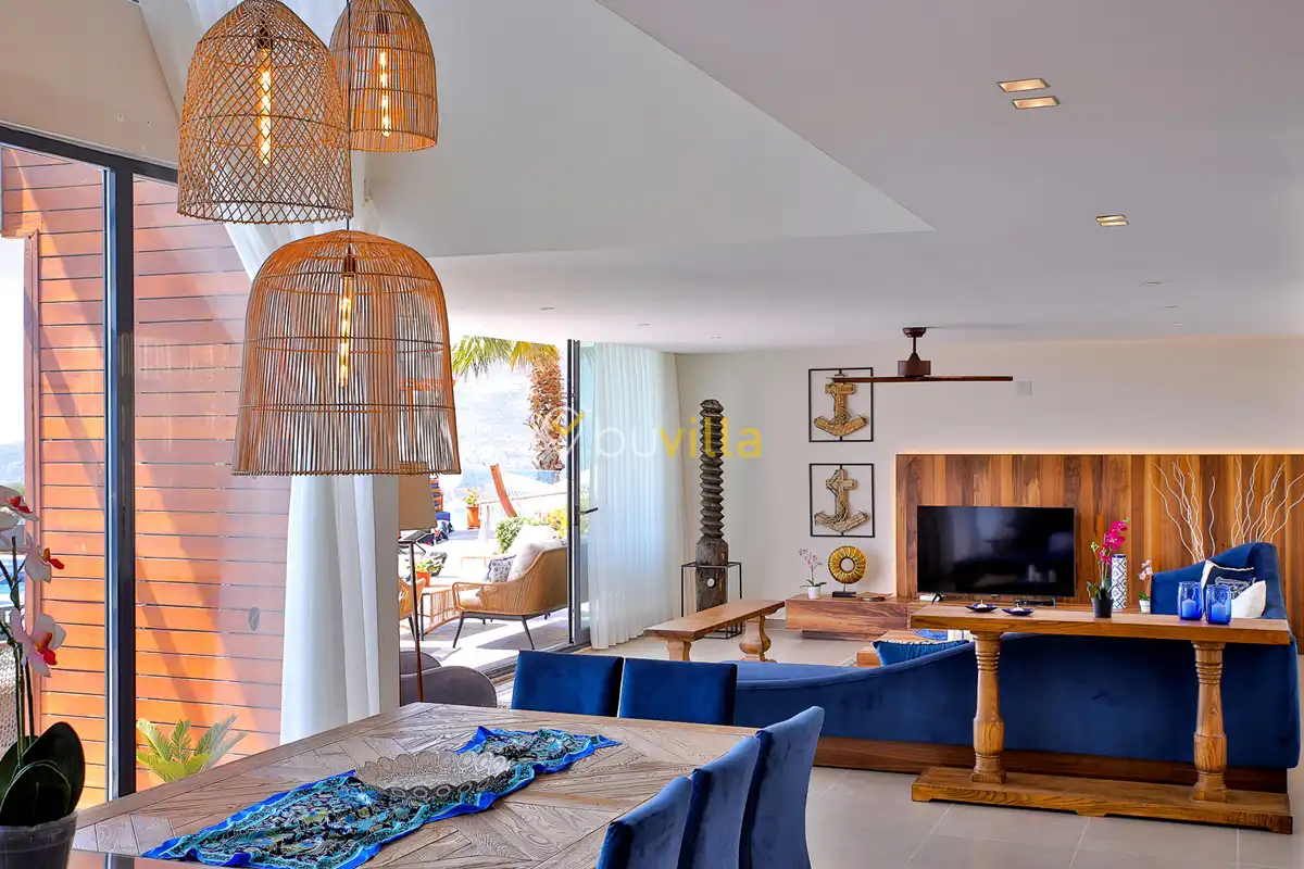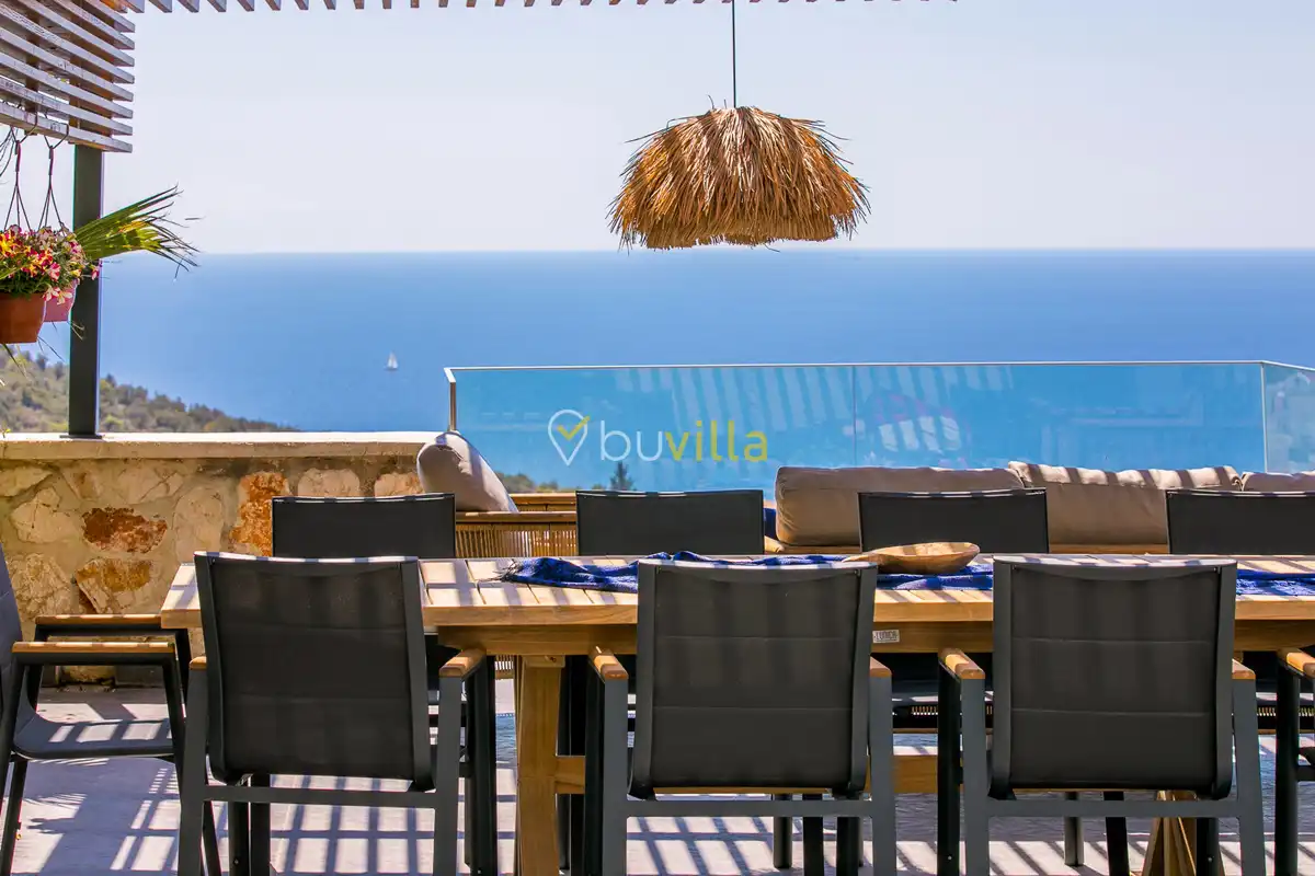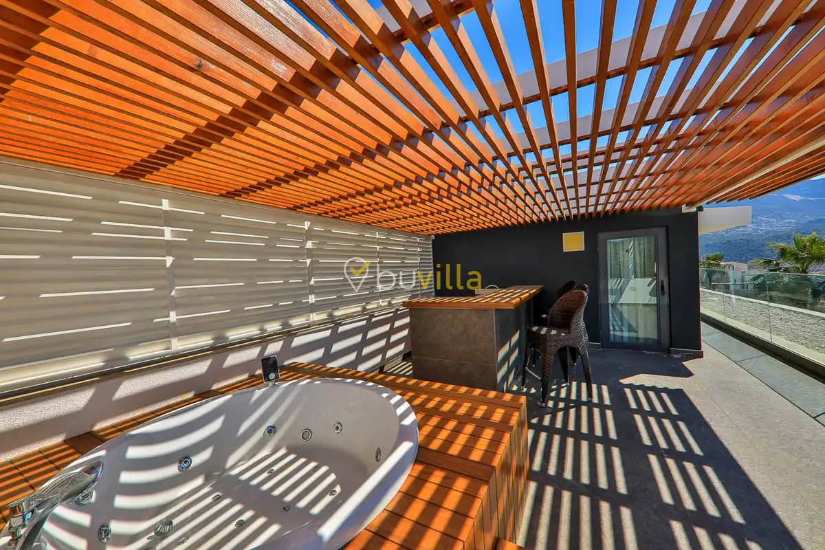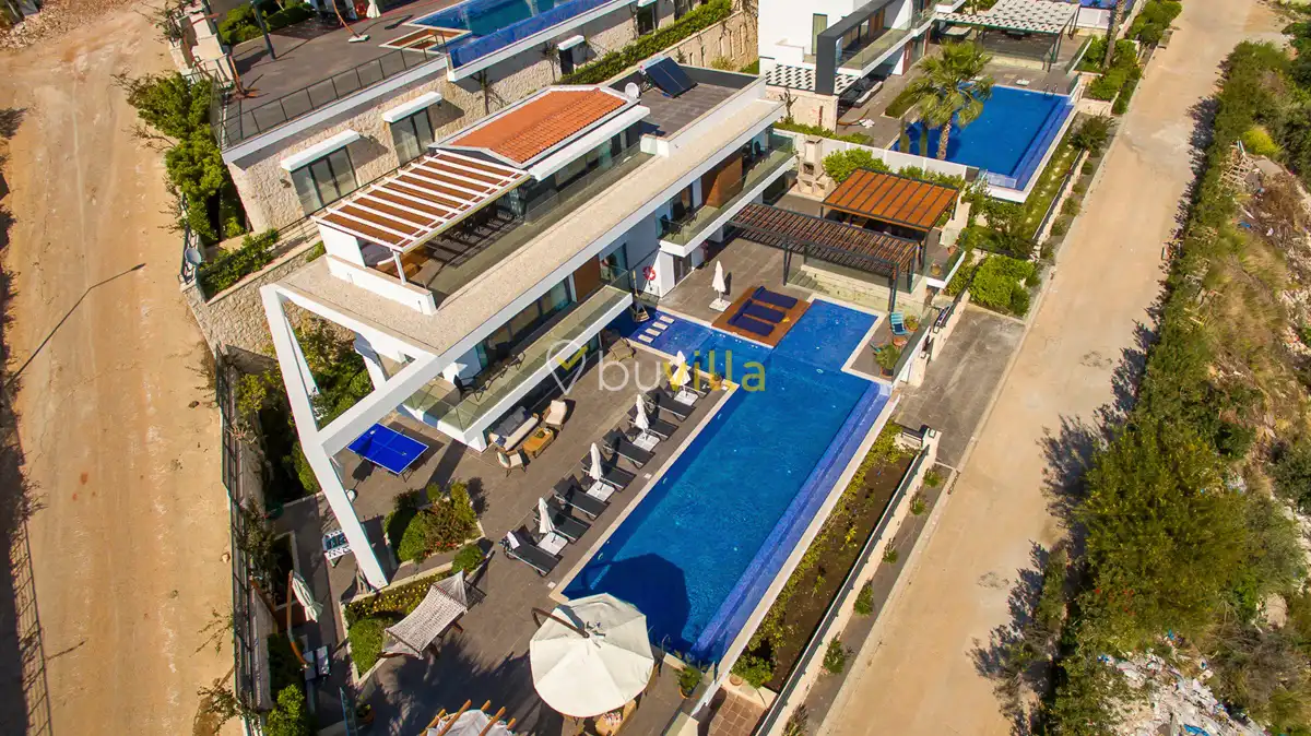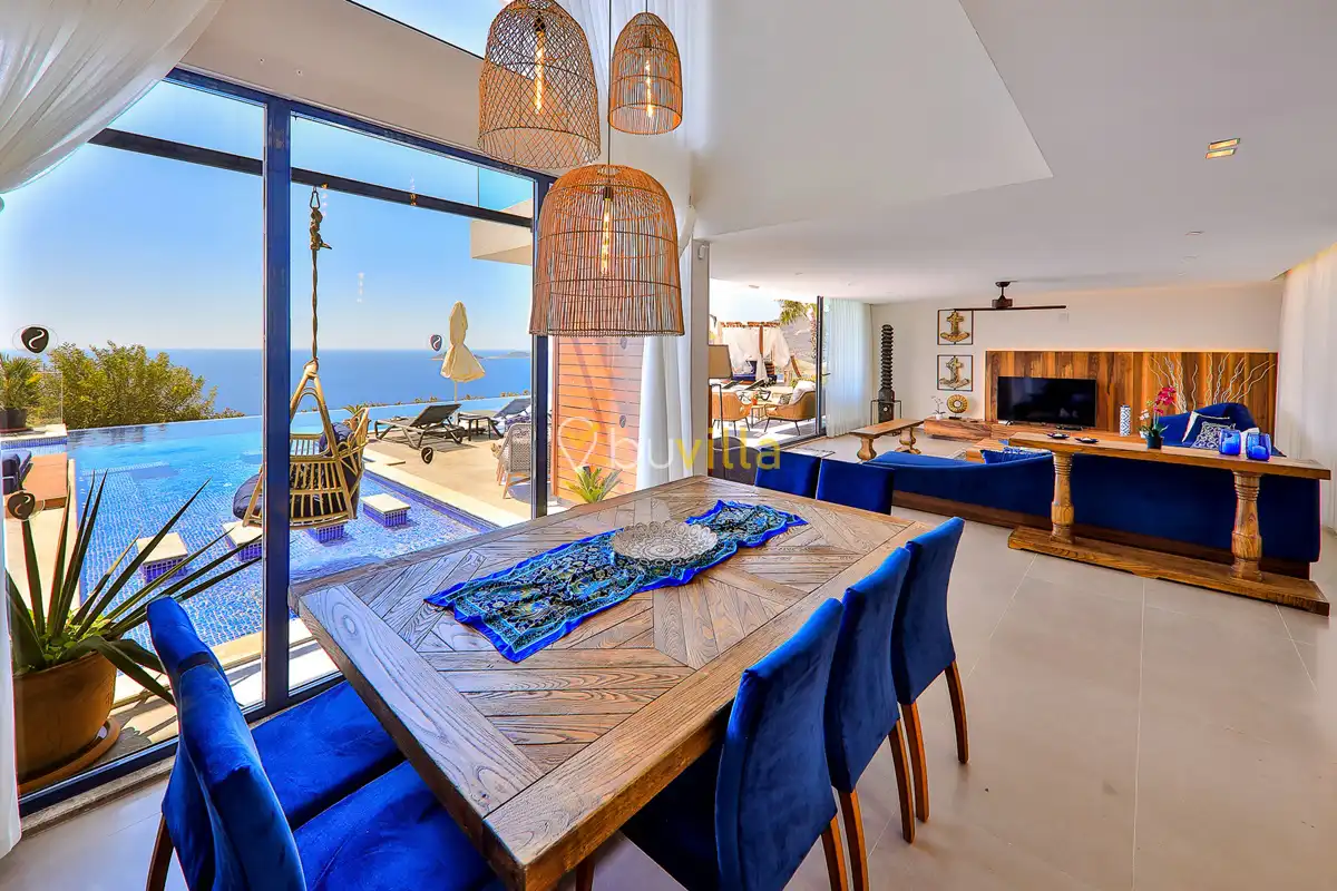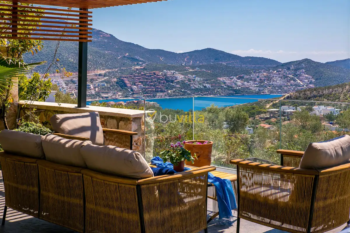 Deniz Manzarali Lüks Villa Kiralik Villa Lapis , Kalkan Kalamar mevkinde bulunan 4 yatak odali 8 kisi kapasiteli lüks bir villadir. Kiralik villamizin tüm yatak odalarinda kendilerine ait tuvalet ve banyo mevcut olup ebeveyn yatak odasinin bir tanesinde hos bir jakuzi sizleri beklemektedir. Lüks dizayni ile göz dolduran villamizin tam donanimli Amerikan mutfaginda ihtiyaç duyabileceginiz tüm ekipmanlar mevcuttur. Havuz bahçe katindan panoramik deniz manzarasina sahip villamizin büyük bir özel yüzme havuzu bulunmaktadir. Villamizda keyifli vakit geçirmek için langirt , masa tenisi bulunmaktadir. Sevdikleriniz ile gözlerden uzak huzurlu vakitler geçirmek için sizleri Villa Lapis ’ e bekliyoruz.