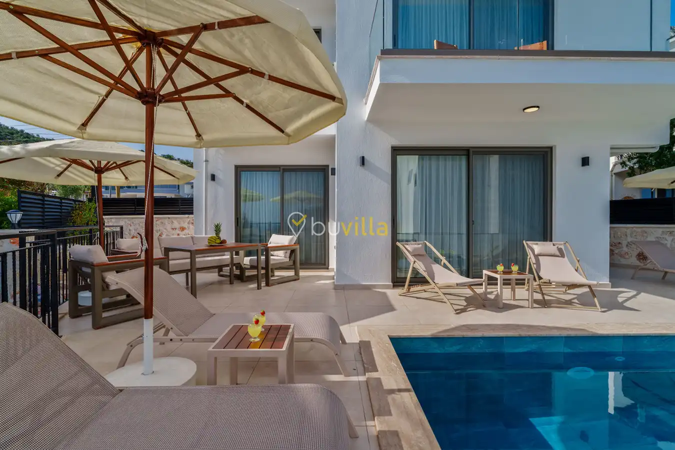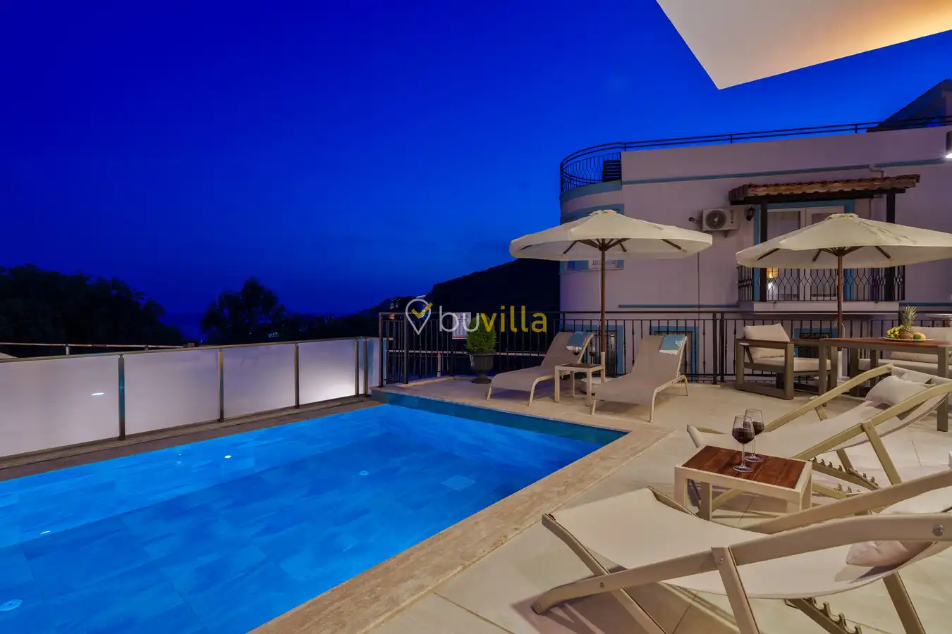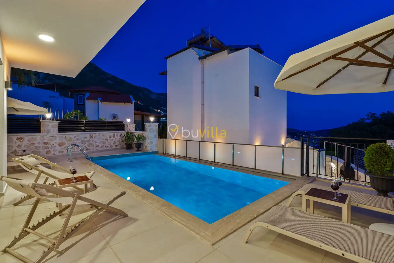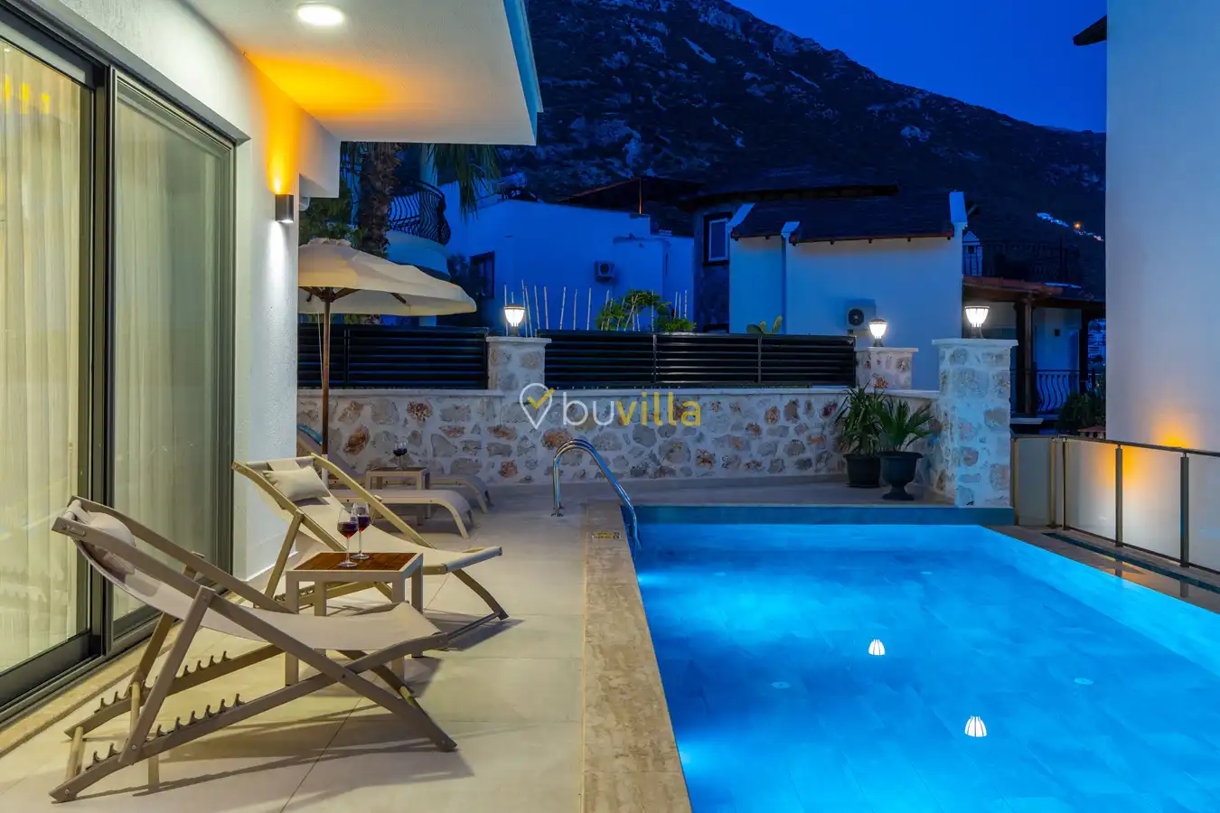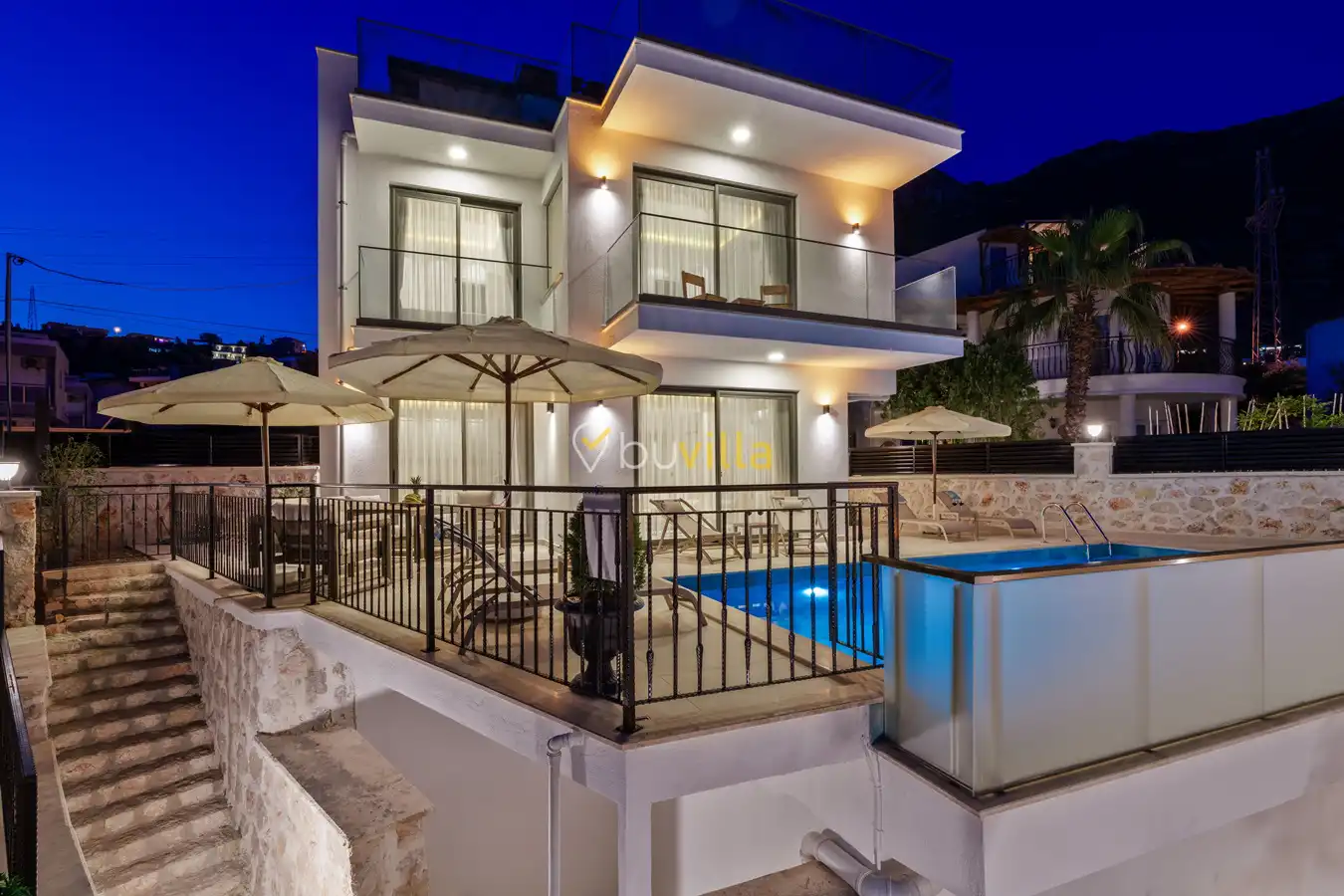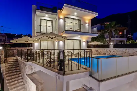 Kaş/Kalkan’ın merkezi bölgelerinden Kızıltaş’ta yer alan Villa Laren, lüks bir tatil arayanlar için mükemmel bir seçenektir. 3 yatak odası ve 6 kişilik konaklama kapasitesiyle aileler ve arkadaş grupları için ideal olan villa, modern iç tasarımı ve geniş yaşam alanlarıyla konforlu bir atmosfer sunar. Etkileyici deniz manzarası ve gün batımını izleyebileceğiniz terasıyla unutulmaz bir tatil deneyimi sağlar. Şehir merkezine yakın konumu sayesinde market, restoran, kafe ve plajlara kolayca ulaşılabilir. Hem şehir hayatına yakın olup hem de doğa ile iç içe olmak isteyenler için Villa Laren, Kalkan’ın güzelliklerini keşfetmek için harika bir fırsat sunar.