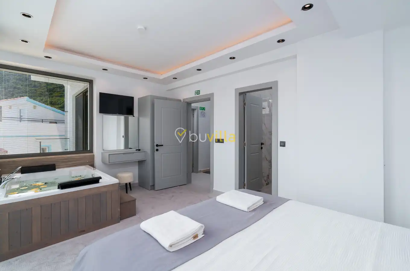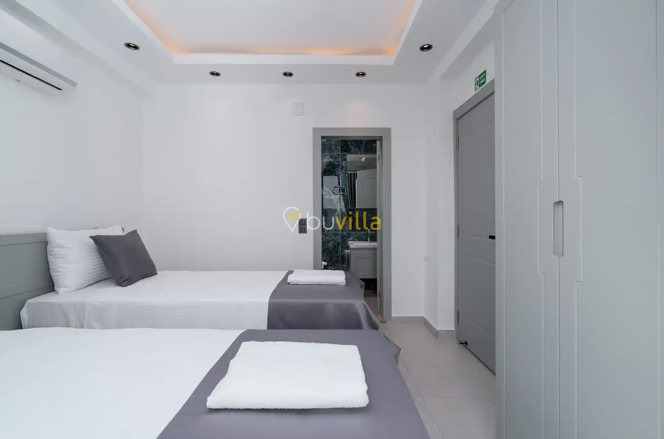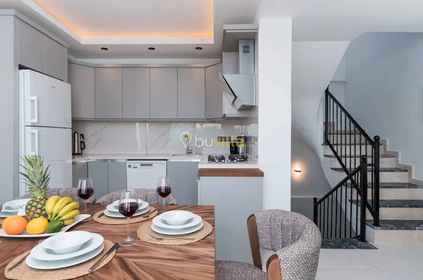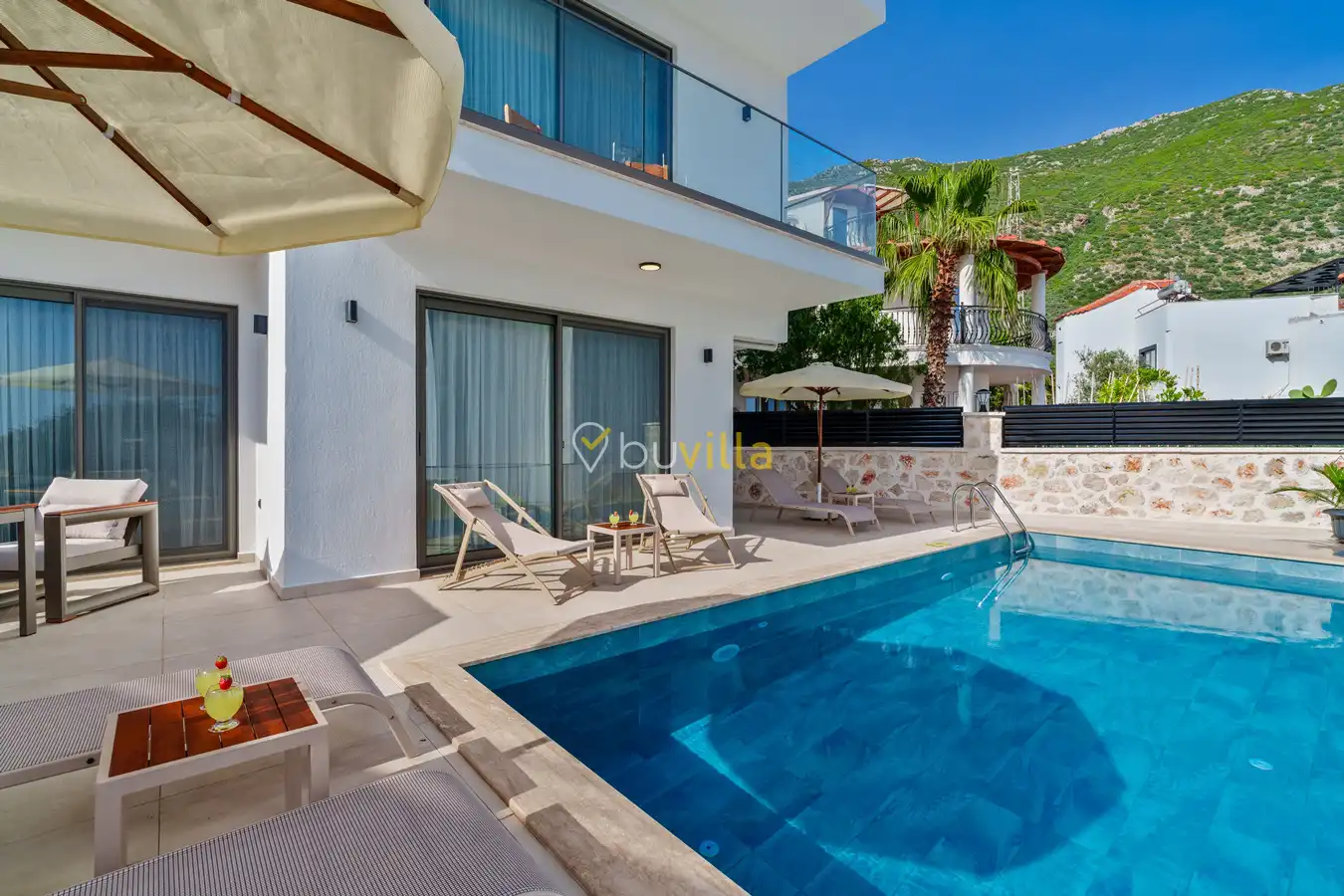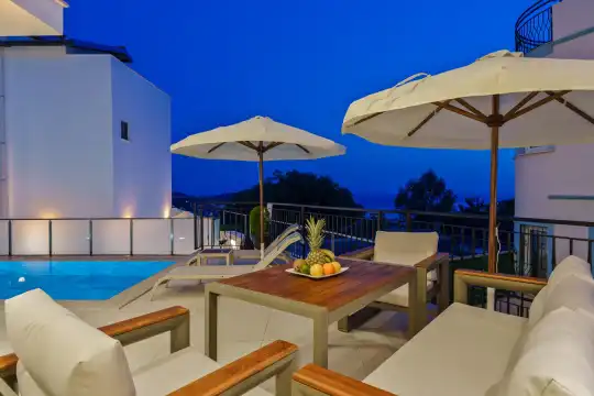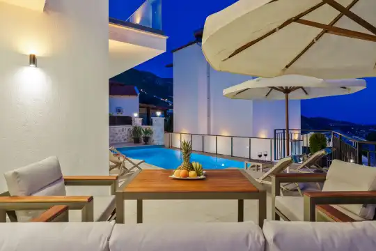 Kaş/Kalkan’ın merkezi bölgelerinden Kızıltaş’ta yer alan Villa Laren, lüks bir tatil arayanlar için mükemmel bir seçenektir. 3 yatak odası ve 6 kişilik konaklama kapasitesiyle aileler ve arkadaş grupları için ideal olan villa, modern iç tasarımı ve geniş yaşam alanlarıyla konforlu bir atmosfer sunar. Etkileyici deniz manzarası ve gün batımını izleyebileceğiniz terasıyla unutulmaz bir tatil deneyimi sağlar. Şehir merkezine yakın konumu sayesinde market, restoran, kafe ve plajlara kolayca ulaşılabilir. Hem şehir hayatına yakın olup hem de doğa ile iç içe olmak isteyenler için Villa Laren, Kalkan’ın güzelliklerini keşfetmek için harika bir fırsat sunar.