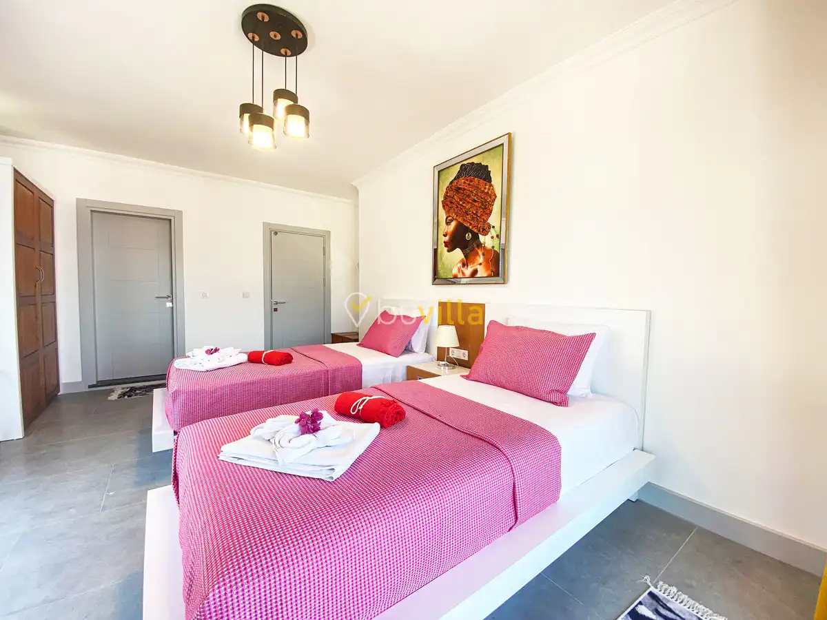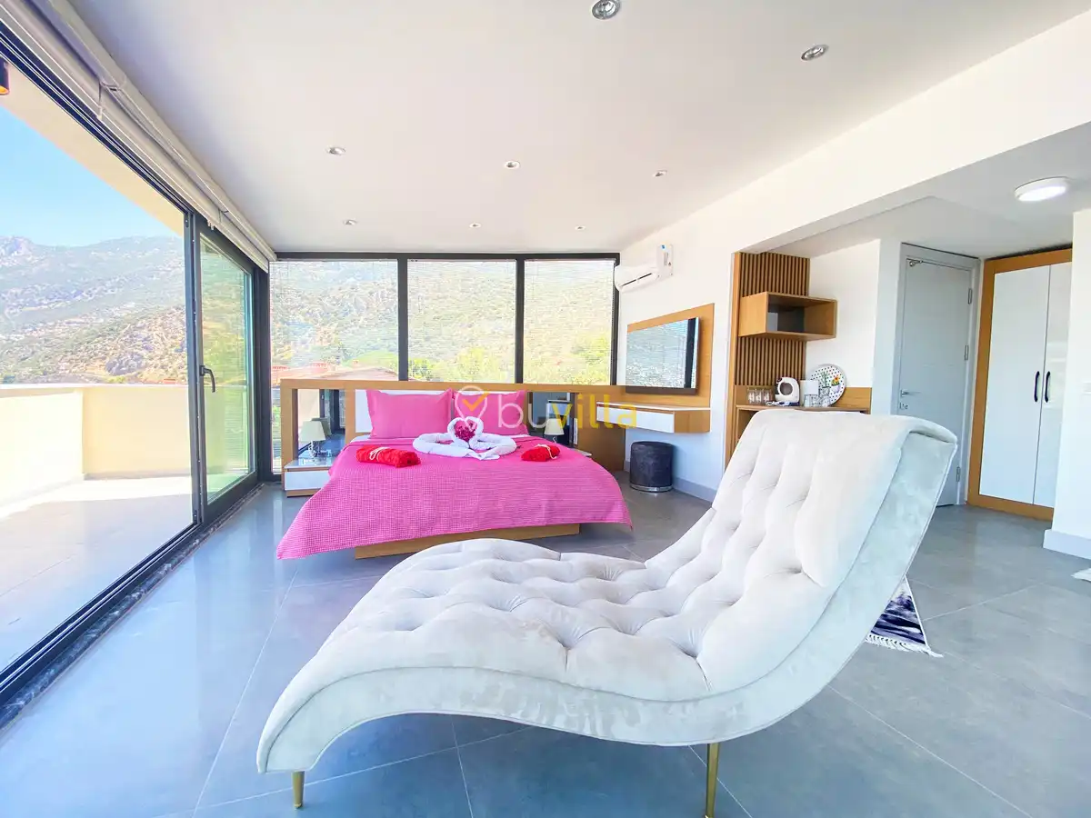 Kalkan’ın prestijli bölgelerinden Kışla mevkiinde konumlanan Villa Leo, geniş aileler ve arkadaş grupları için ideal bir tatil villasıdır. Deniz manzarasına sahip olan villamız, şehir merkezine yalnızca 5 dakika mesafede yer alarak hem merkezi hem de sakin bir konaklama imkânı sunmaktadır.