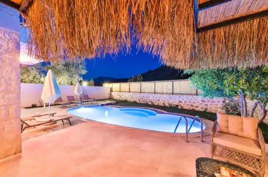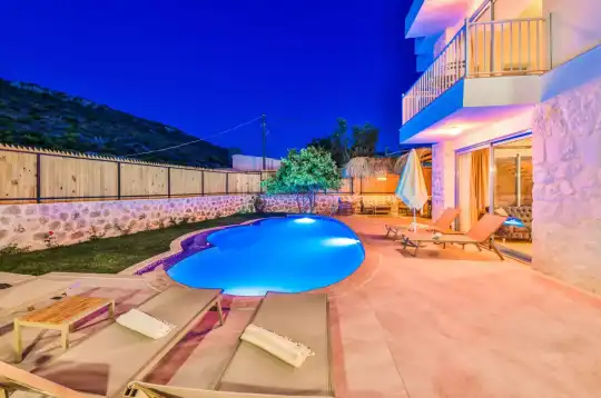 Kalkan Patara Bölgesi’nde yer alan Villa Leto, taş mimarisi ve doğa manzarasıyla huzurlu bir tatil sunan özel bir villadır. 2 yatak odalı ve 4 kişilik konaklama kapasitesine sahip olan villamız, korunaklı yapısı sayesinde muhafazakar aileler ve balayı çiftleri için ideal bir seçenektir.