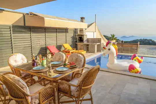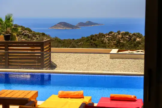Deniz Manzarali Muhafazakar Villa Kiralik Villa Likapa 2 , Kalkan Kördere mevkiinde yer almakta olup 3 yatak odali 6 kisiye kadar konaklama imkani saglamaktadir. Muhtesem deniz ve ada manzarasina hakim olan villamiz muhafazakar aileler için ideal bir seçenektir. Amerikan mutfaginda ihtiyaç duyabileceginiz ekipmanlar yer almakta olup konforlu mobilyalarla dizayn edilmis salonu hizmetinizdedir.